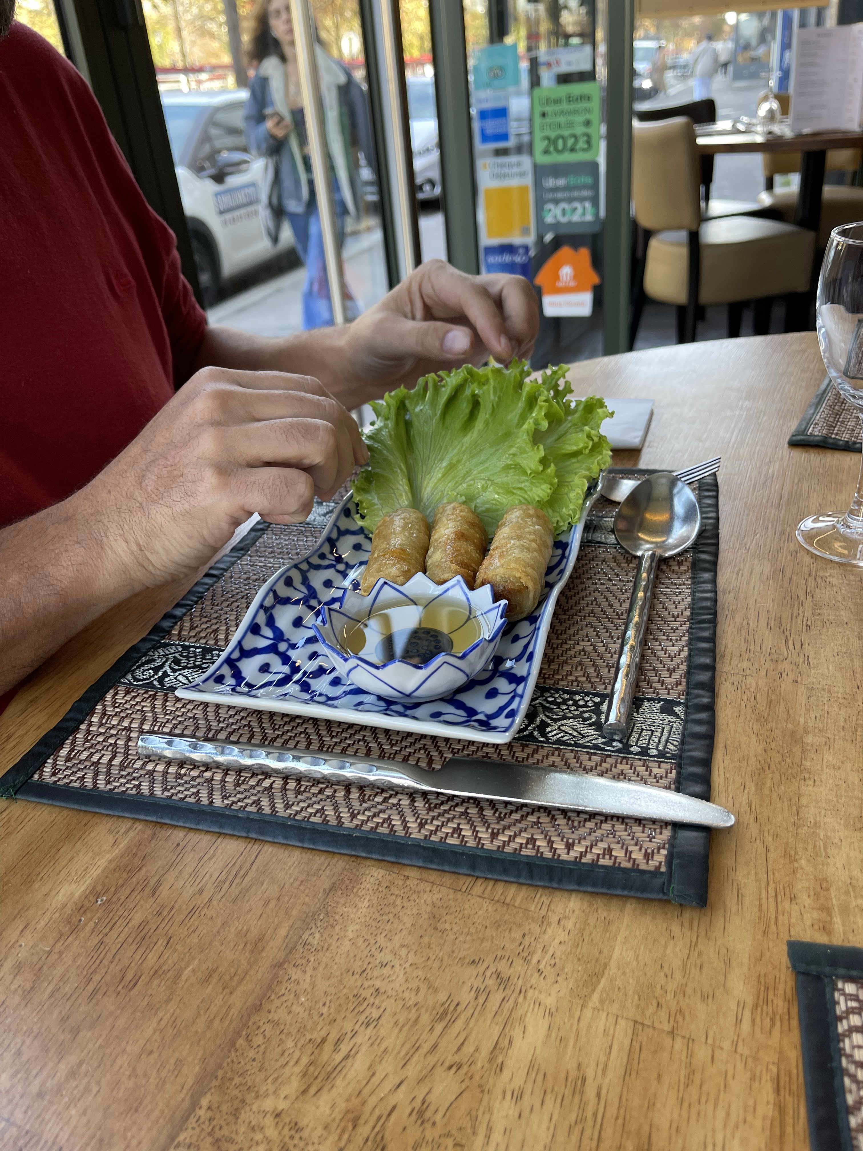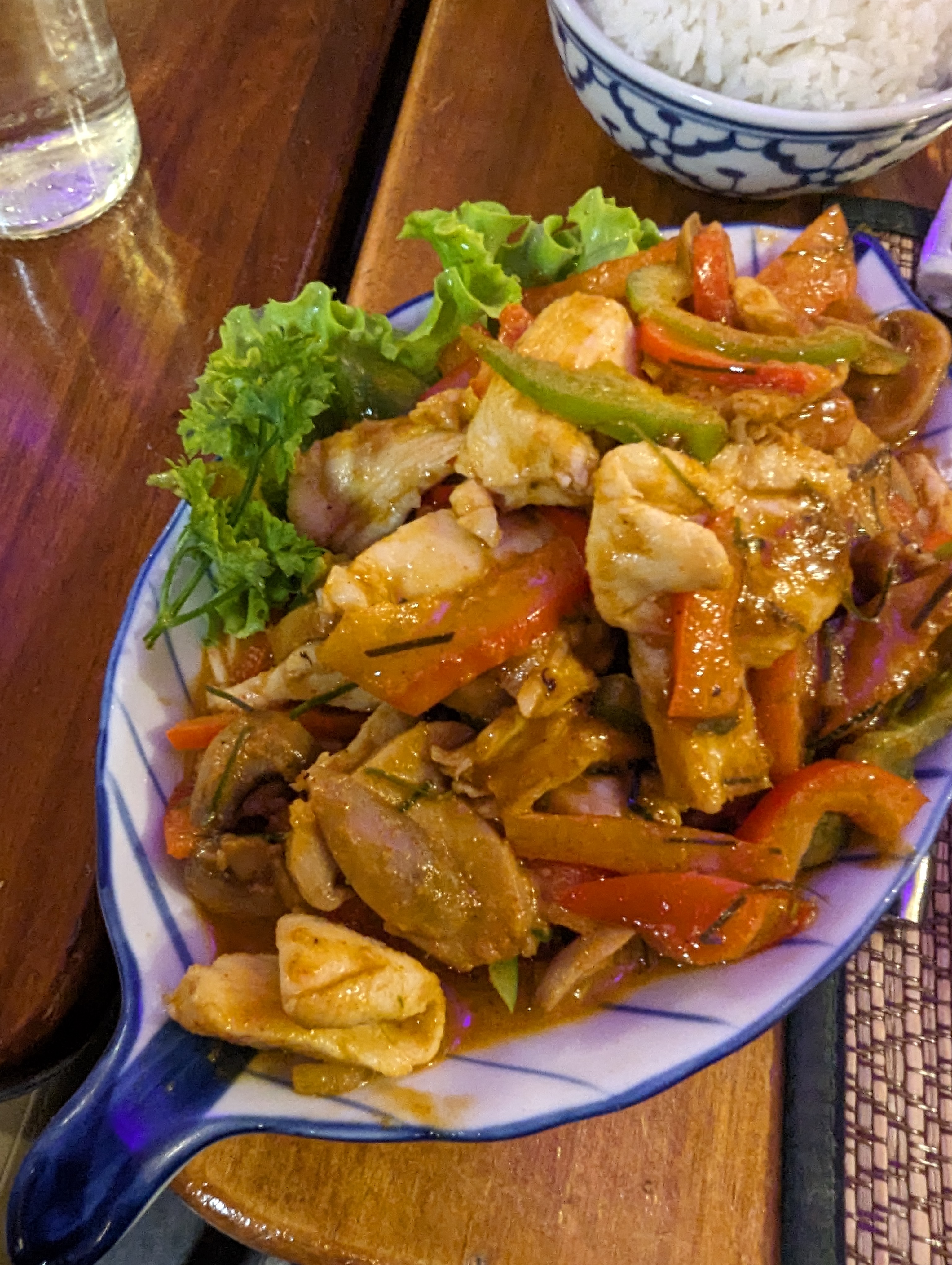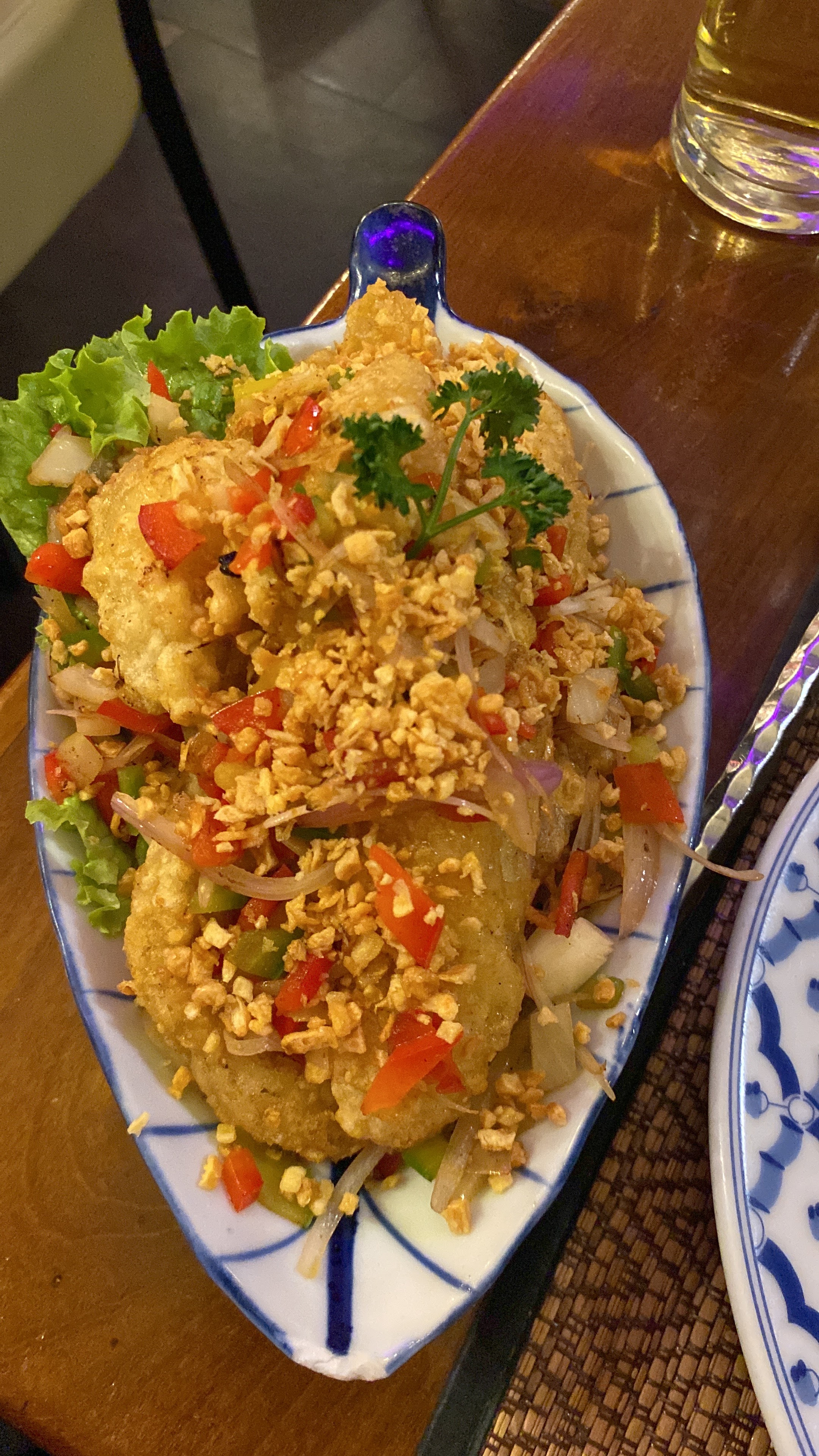 Des beignets de poisson de mauvaise qualité tout droit sortis du congélateur et un larb de canard sans goût avec (beaucoup) trop d’oignons. Sur notre commande de plus de 30 euros le meilleur plat était le riz gluant.