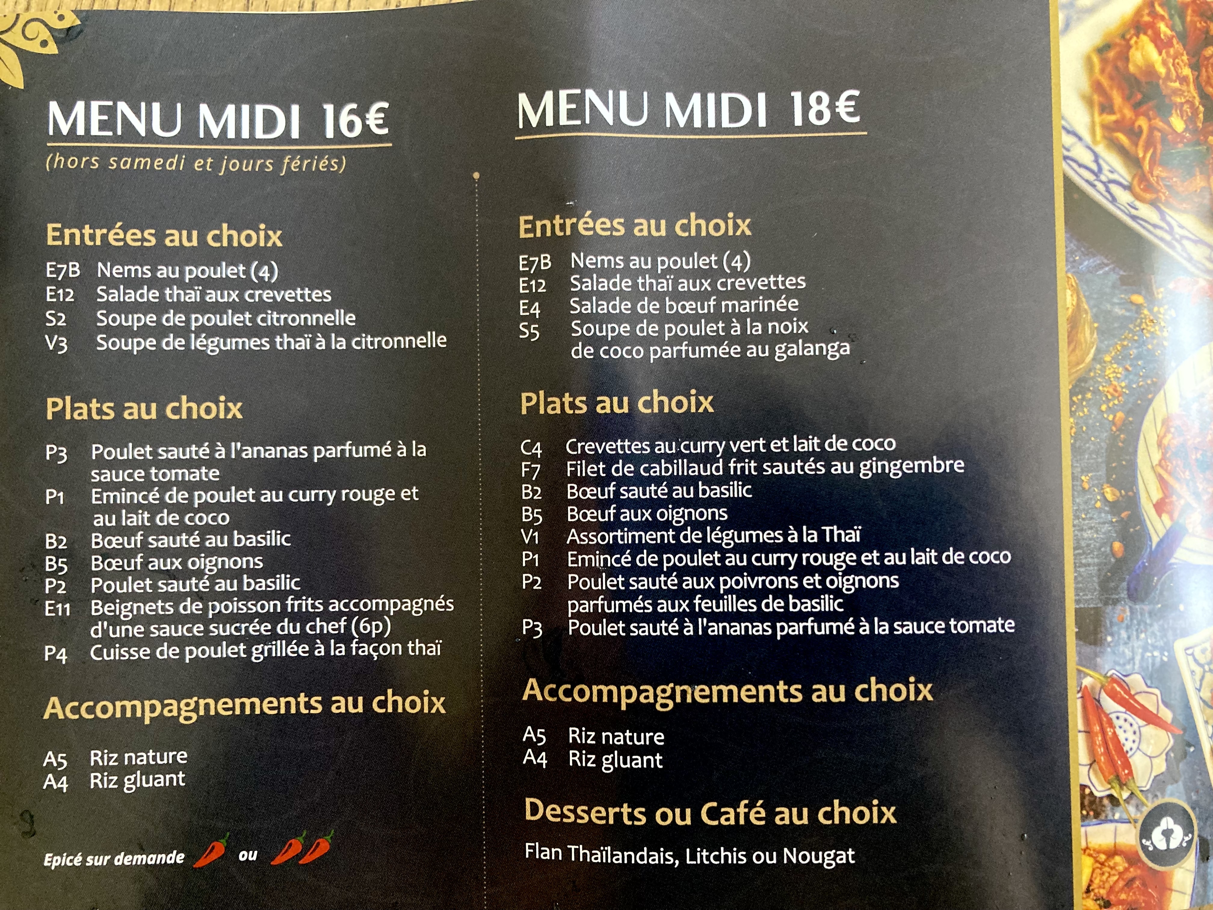 2023 : toujours au TOP mon amie et moi avons dégusté du boeuf curry rouge au lait de coco, une salade à base de papaye et pad thaï crevettes..... toujours aussi BON FRAIS DIGESTE, personnel très sympathique. Ambiance assez cosy. Nous recommandons+++ A l'année prochaine ! 2022 Ce restaurant est vraiment super : super accueil, produits très frais, la salade thaï est un régal !! Nous avons testé émincé de poulet au curry rouge et crevettes au curry vert, c'est non seulement délicieux mais très copieux....un serveur adorable !! Merci pour cette excellente expérience thaï ! Merci à toute l'équipe et au chef !! Nous reviendrons.....