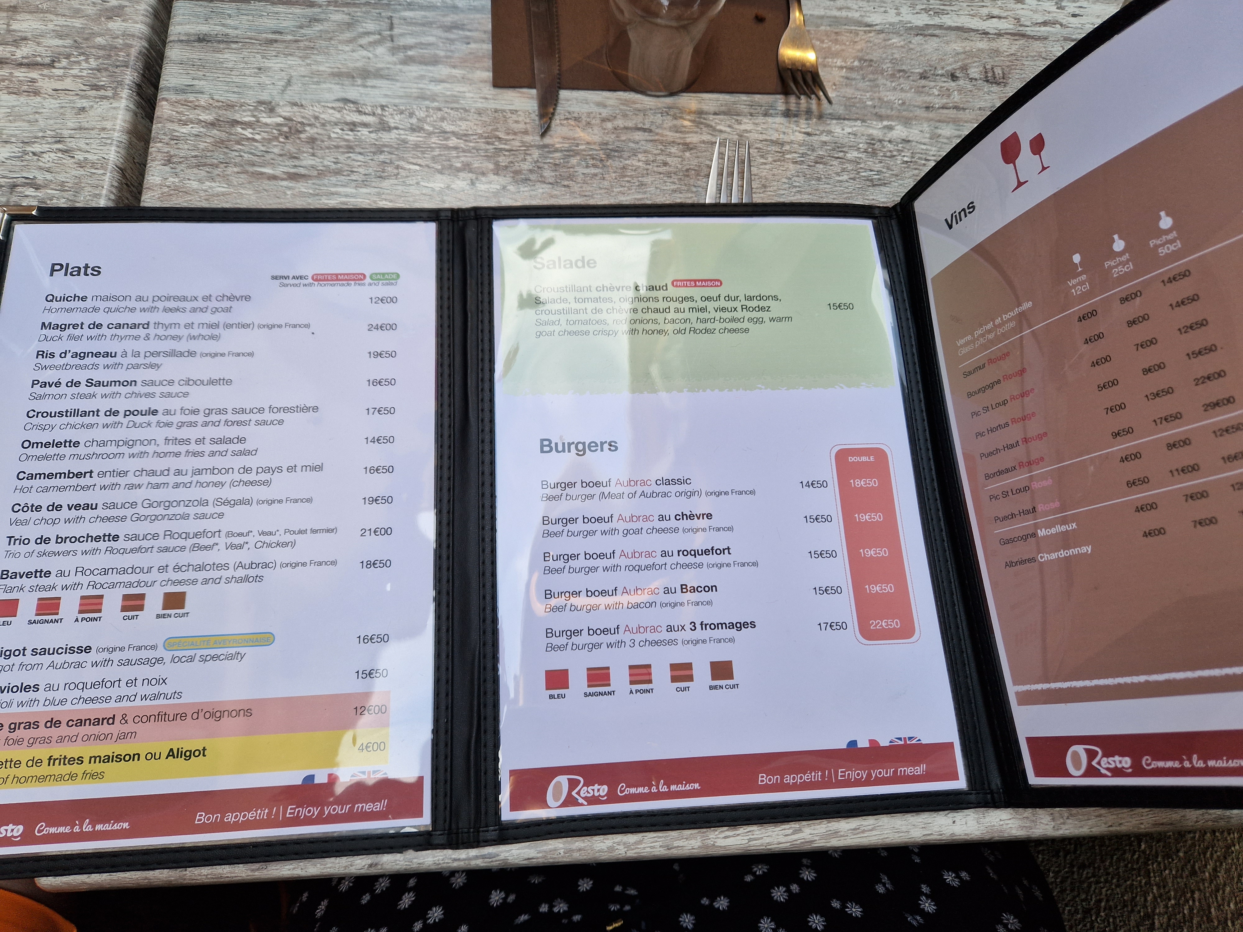 Produit frais et bien choisis, plats copieux, bonne bière de l'Aubrac, profiterole très appétissant, serveuse attentionnée et sympathique, prix raisonnables. Je recommande fortement de restaurant