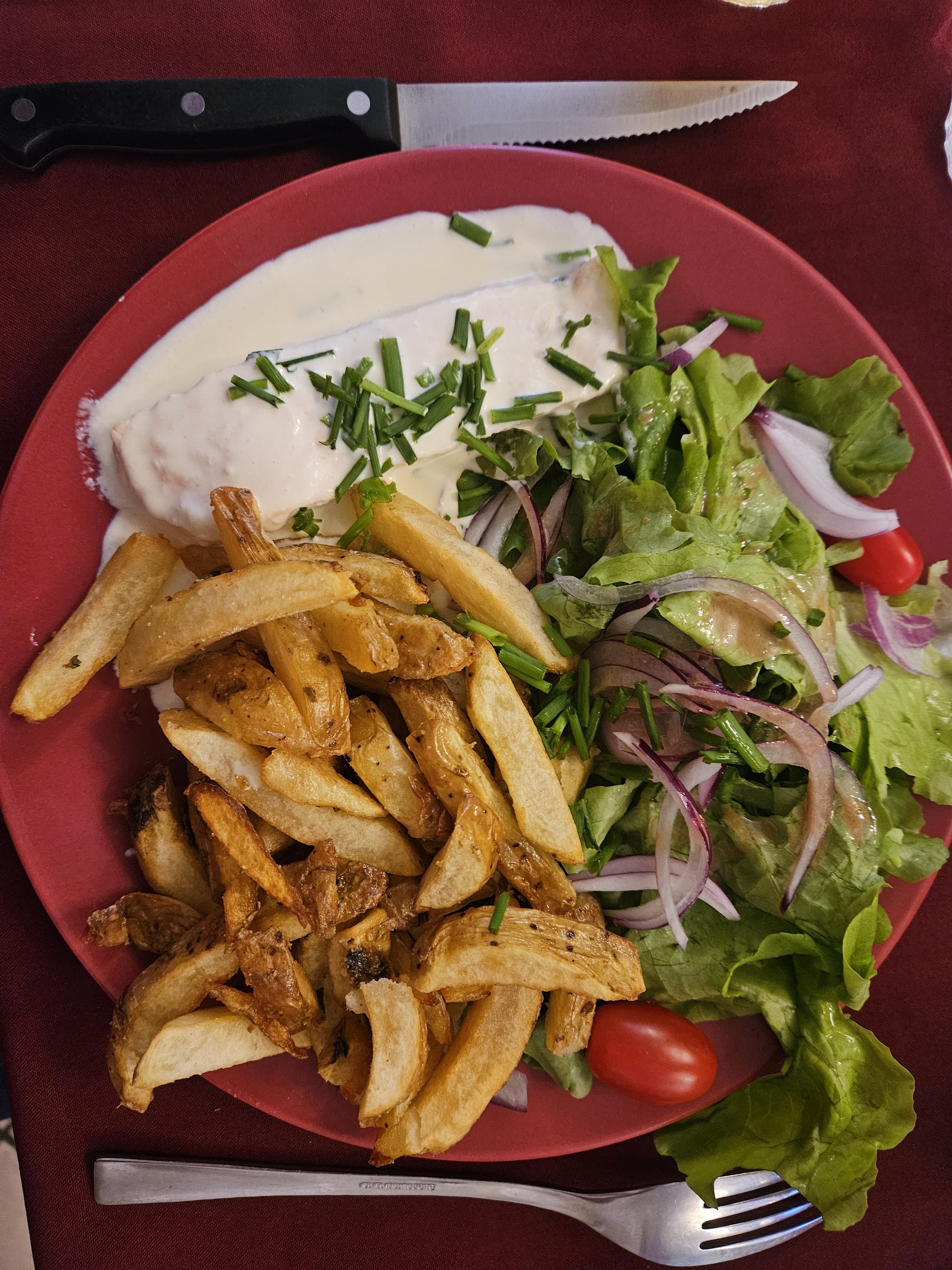Excellent !! C'est de nos jours plutôt rare de trouver un resto avec des produits frais et une cuisine maison. Et un service rapide avec le sourire ! N'hésitez pas et régalez vous !!