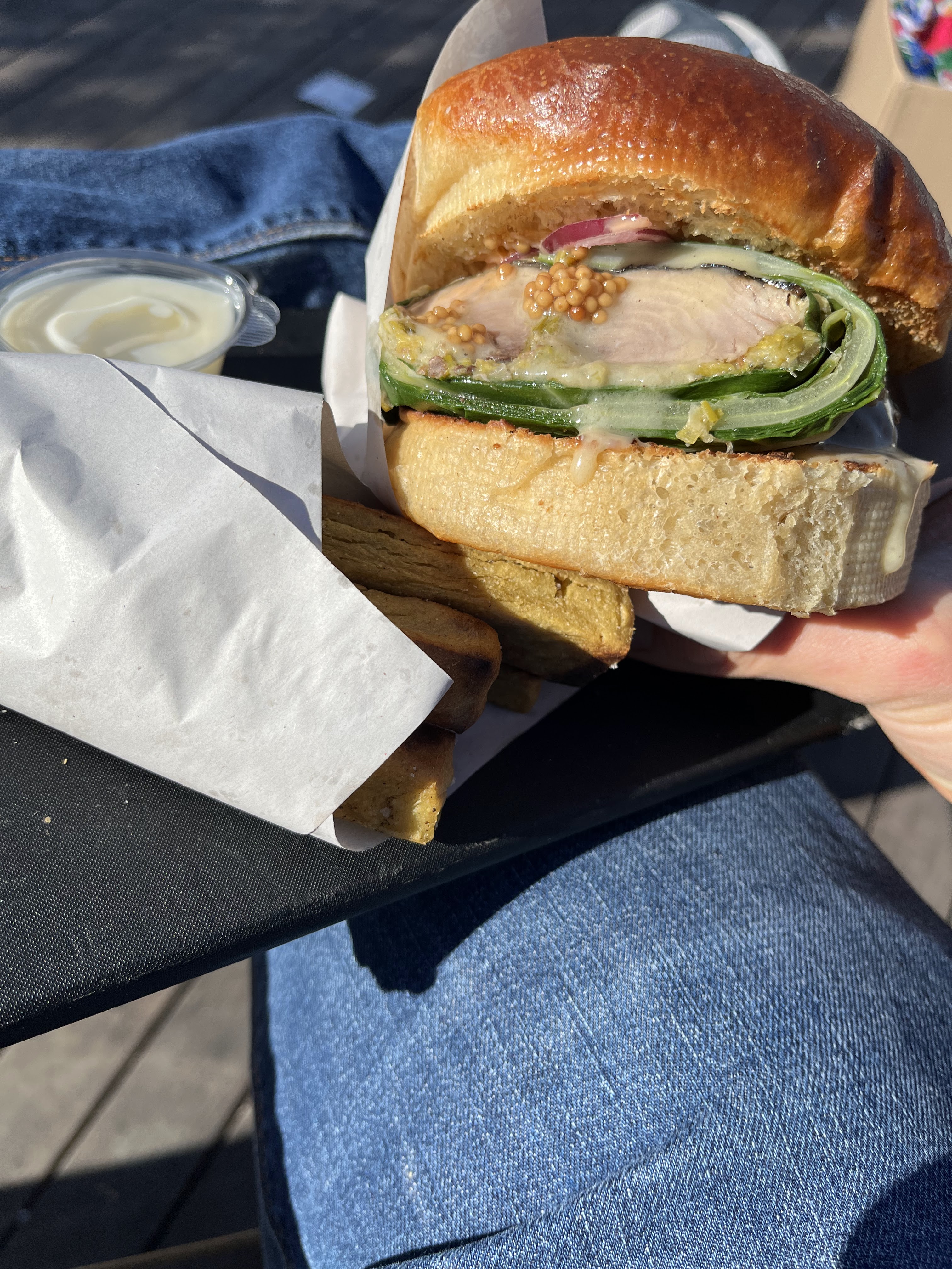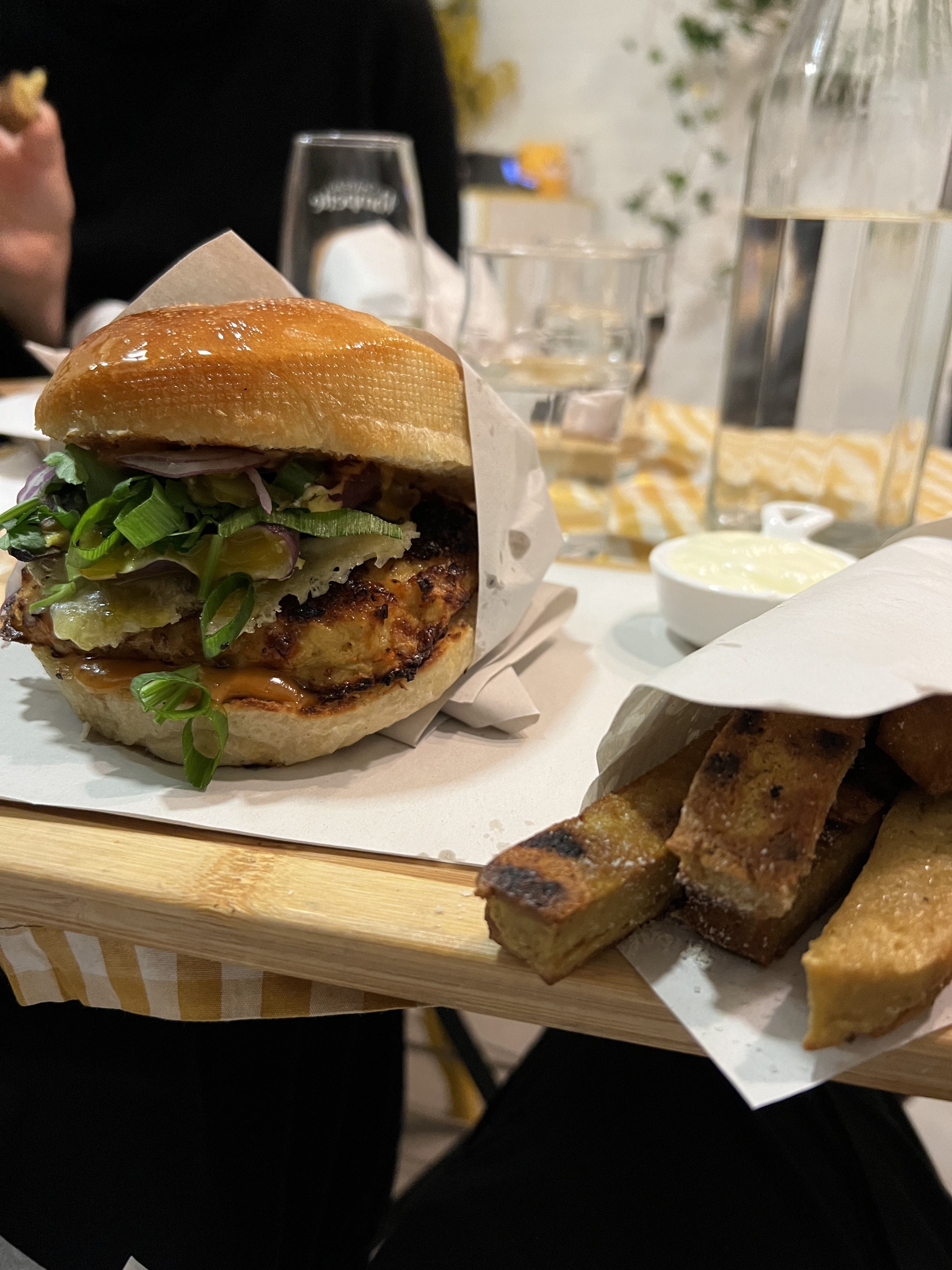 Petite ambiance cozy, les deux cheffes vous accueillent dans la bonne humeur ! On reste sur une même note pour la qualité sur les burgers sardines panure maison, pain brioché aérien excellente sauce. Les panisses croquantes à l’extérieur et fondantes à l’intérieur + aïoli maison. 12€ je recommande