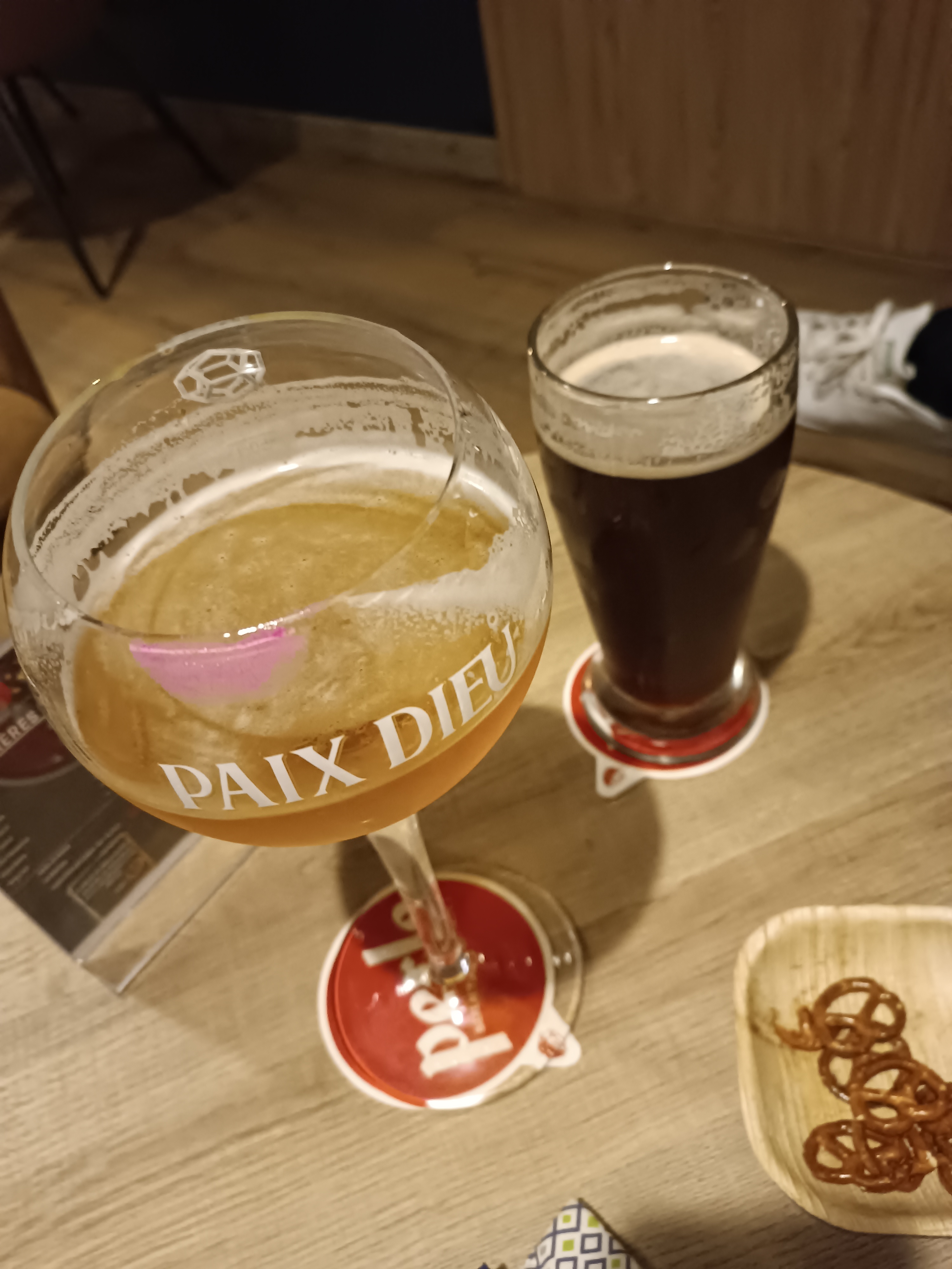 Une super découverte ! Ma sœur m'ayant parlé de cet endroit, j'ai décidé d'aller le découvrir. Excentré (Wacken) et un peu caché (sur une place entourée de bâtiments), petit lieu presque secret. Super bien décoré, un style plutôt reposant et agréable, mobilier bien confortable. De grandes tables pour les groupes et des coins plus intimes. J'ai été super bien reçue! HAPPY HOURS 😎 les prix sont vraiment intéressants (5€ la pinte-ou le sérieux- de paix dieu 👀), une coupelle de bretzels, et j'ai pas eu droit à une petite coupelle de fromage et du pain. Il y a également des petits trucs à grignoter pour les petites faims et la possibilité de manger un petit repas pris dans un restau à côté (donc pas proposé au menu du bar). Edit: on a pris une petite planchette fromagère vraiment délicieuse! Le patron est super sympa, souriant, gentil et arrangeant (volume de la musique). Des soirées sont également organisées. Il me semble qu'il y a un page sur fb.
