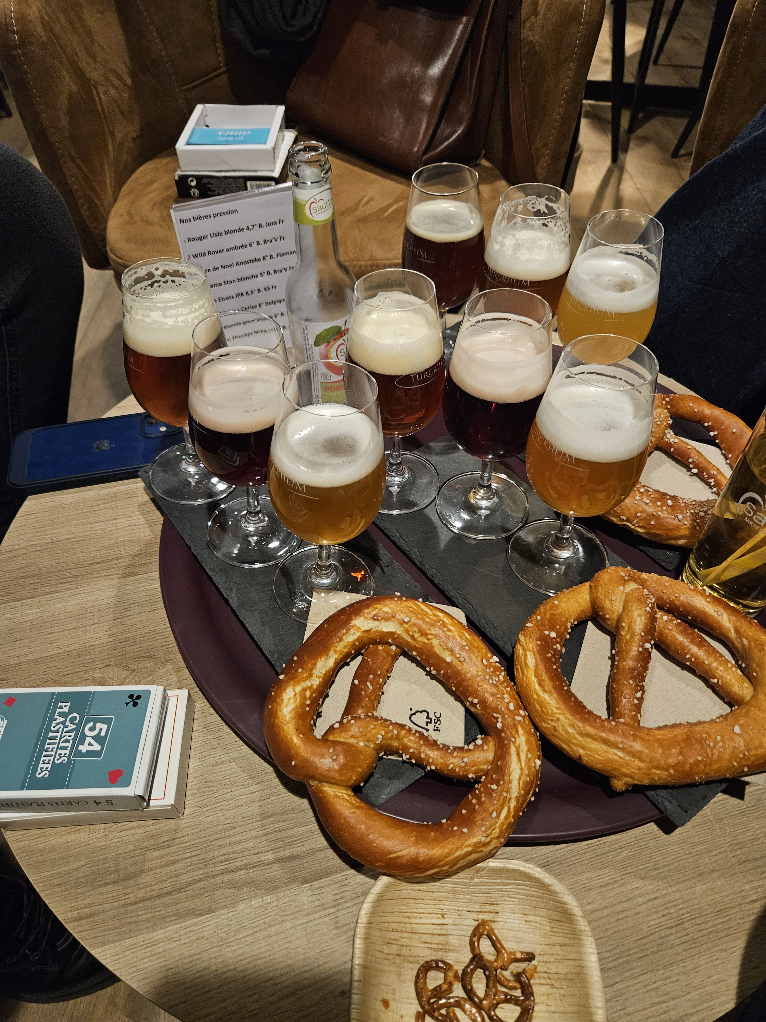 Super moment entre amis passé. La planche de dégustation avec 3 galopins et son bretzel est vraiment d'un super rapport qualité-prix. En plus des petits jeux de société et des magasines sont disponibles.