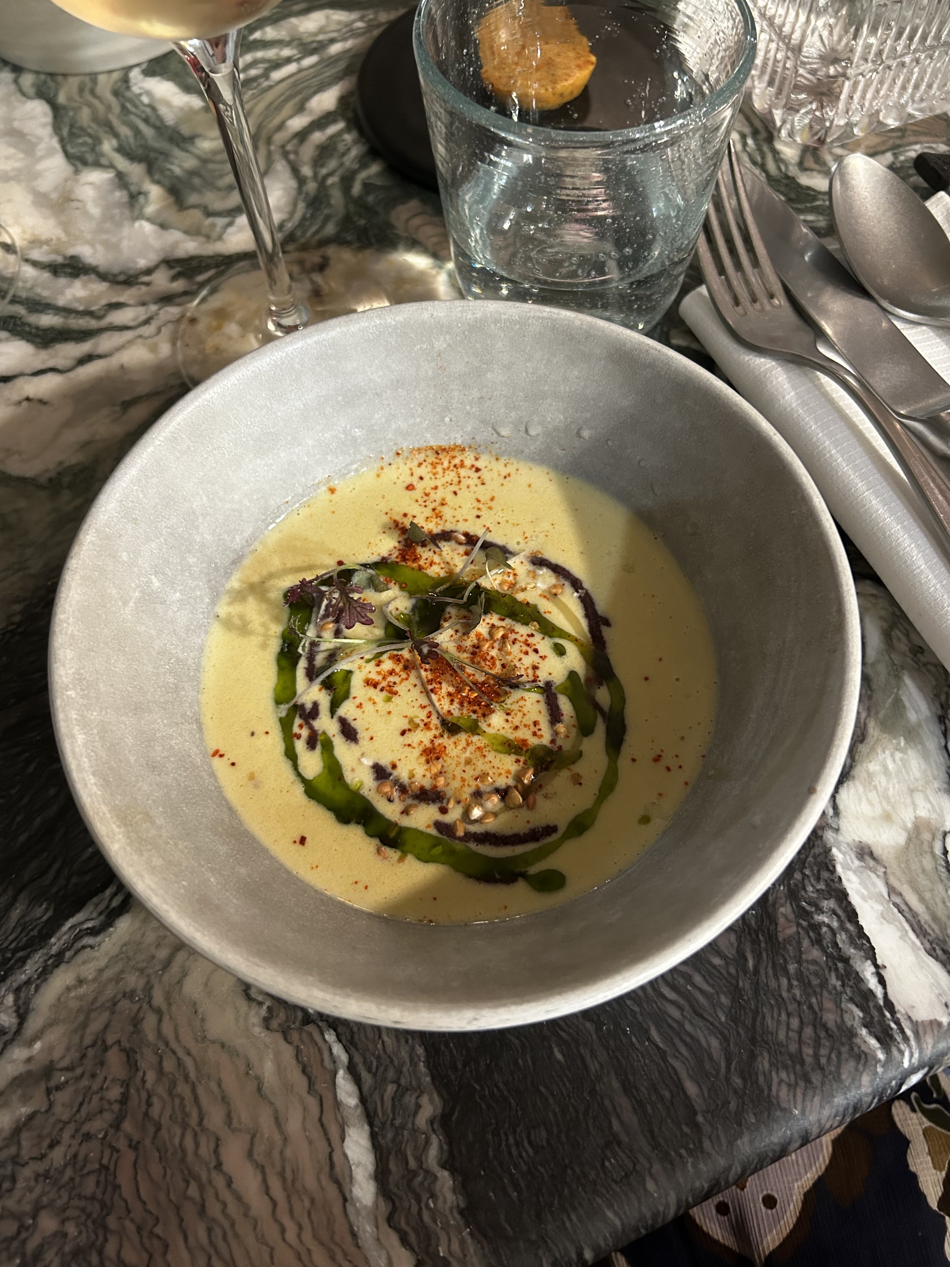 Assez déçue globalement. Le menu Speakeasy à €74 n’est pas mauvais mais très décevant: des plats assez simples, aucune prise de risques. Des erreurs sur des bases: 5 arêtes dans mes deux petits morceaux de filet de meunière, ça surprend… Le service est super en revanche.