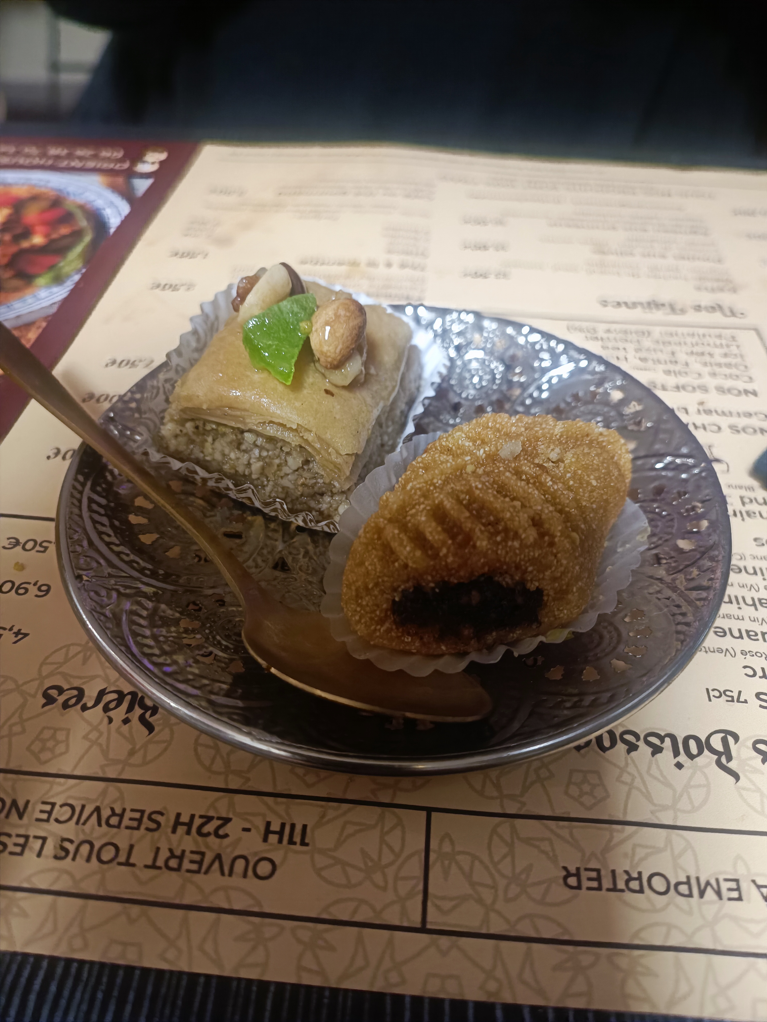 Super accueil , cuisine exceptionnelle, saveurs du Maroc retrouvées. Copieux, épices savamment dosées. Desserts également aussi beaux que bon. Une très belle découverte.