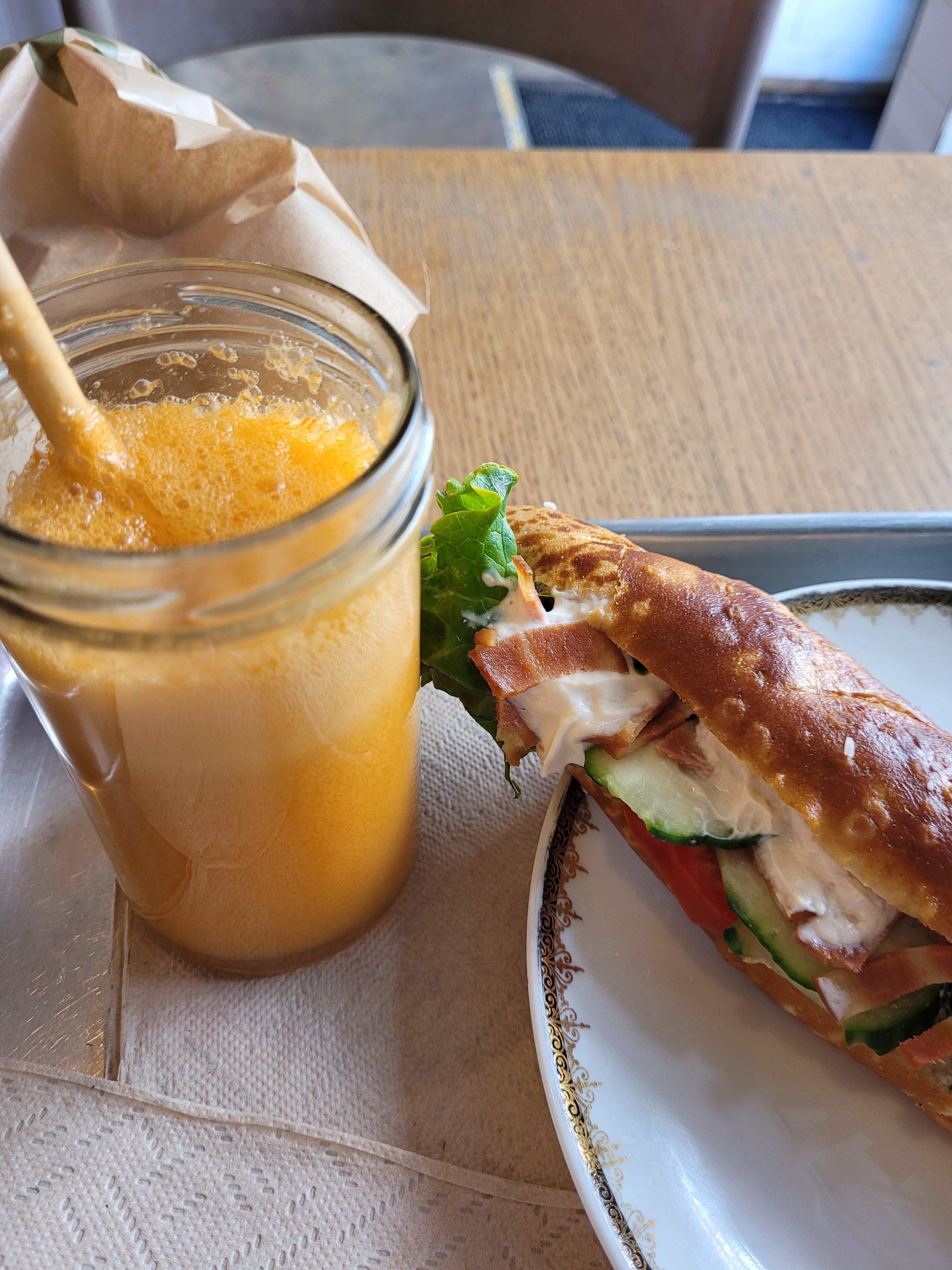 Sandwichs et gâteaux excellents, viennoiseries au top et les jus sont trop bons - en plus de ça, le personnel est absolument adorable! Des tables à l’intérieur et à l’extérieur dans un cadre cosy