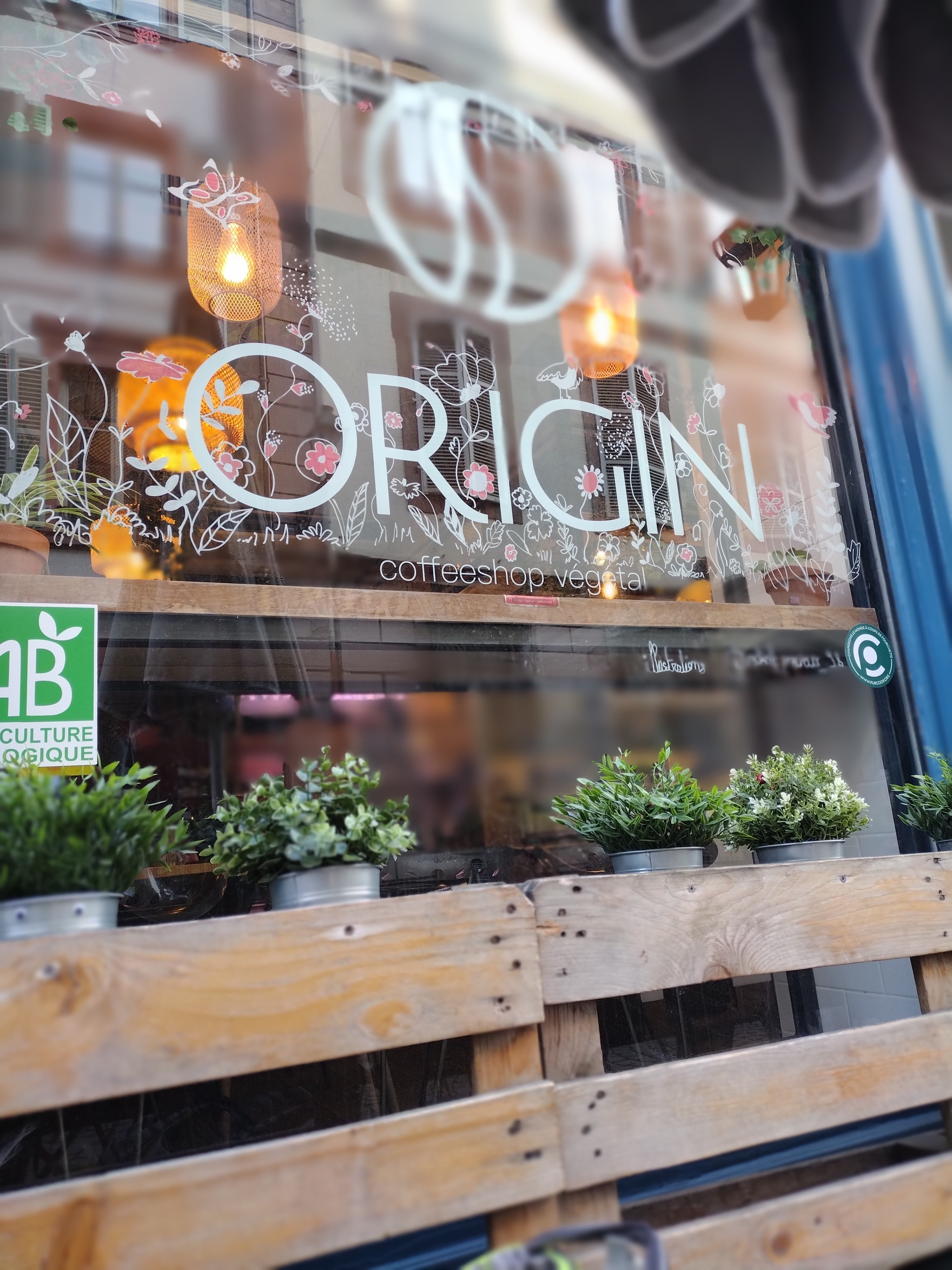 Enfin un lieu où les vegan peuvent trouver pâtisseries, viennoiseries, sandwichs, boissons & autre ! Origin est unique en son genre & franchement bravo pour le concept ! Employée souriante & professionnelle. Tout est fait maison, pour des prix corrects. Local & terrasse propres. Je recommande à 100%.