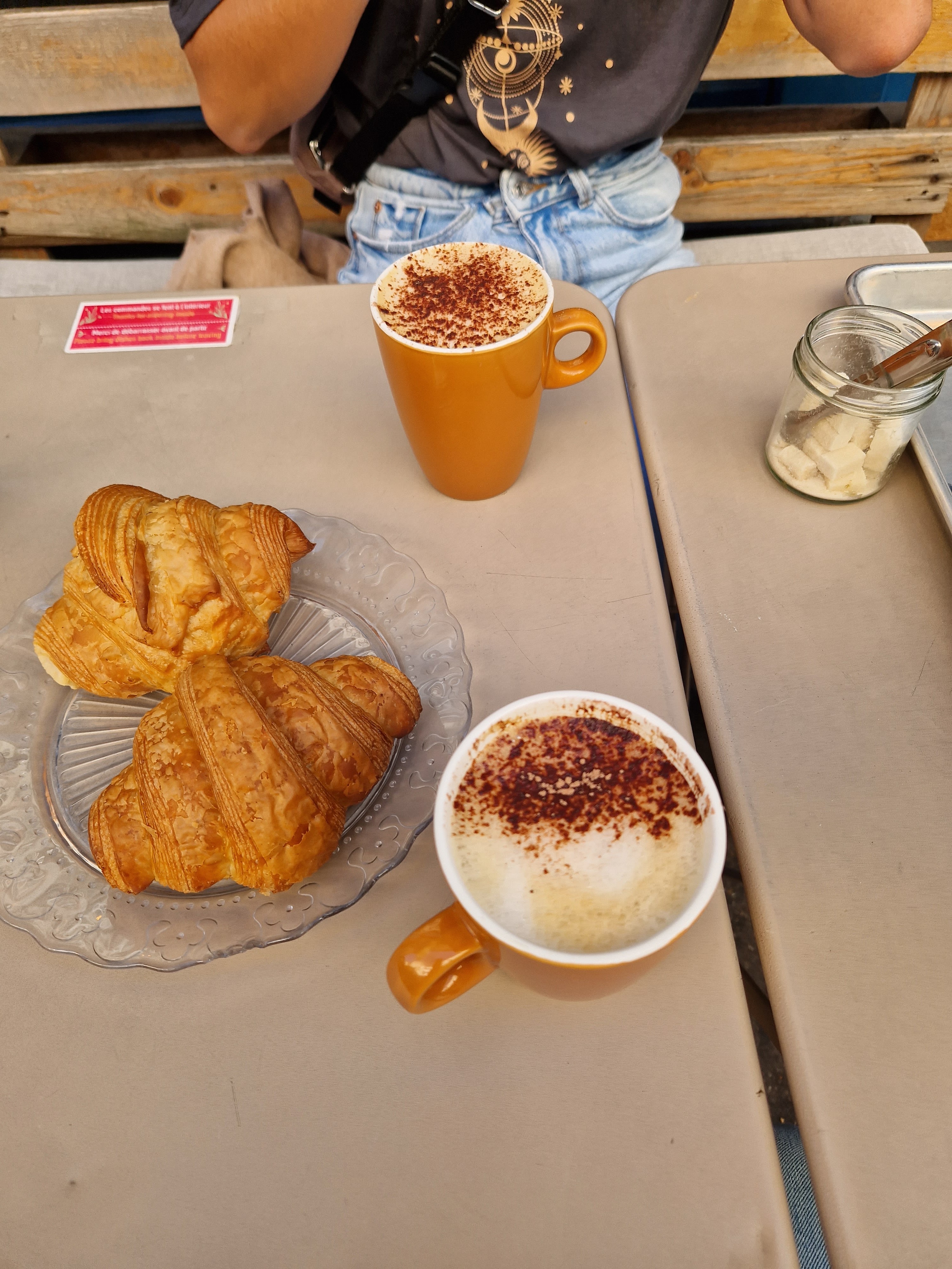 Des gens super sympas ! Tellement gentil, vraiment. Seul du lait végétalien disponible, donc parfait. Le cappucino et le croissant étaient vraiment sympas !