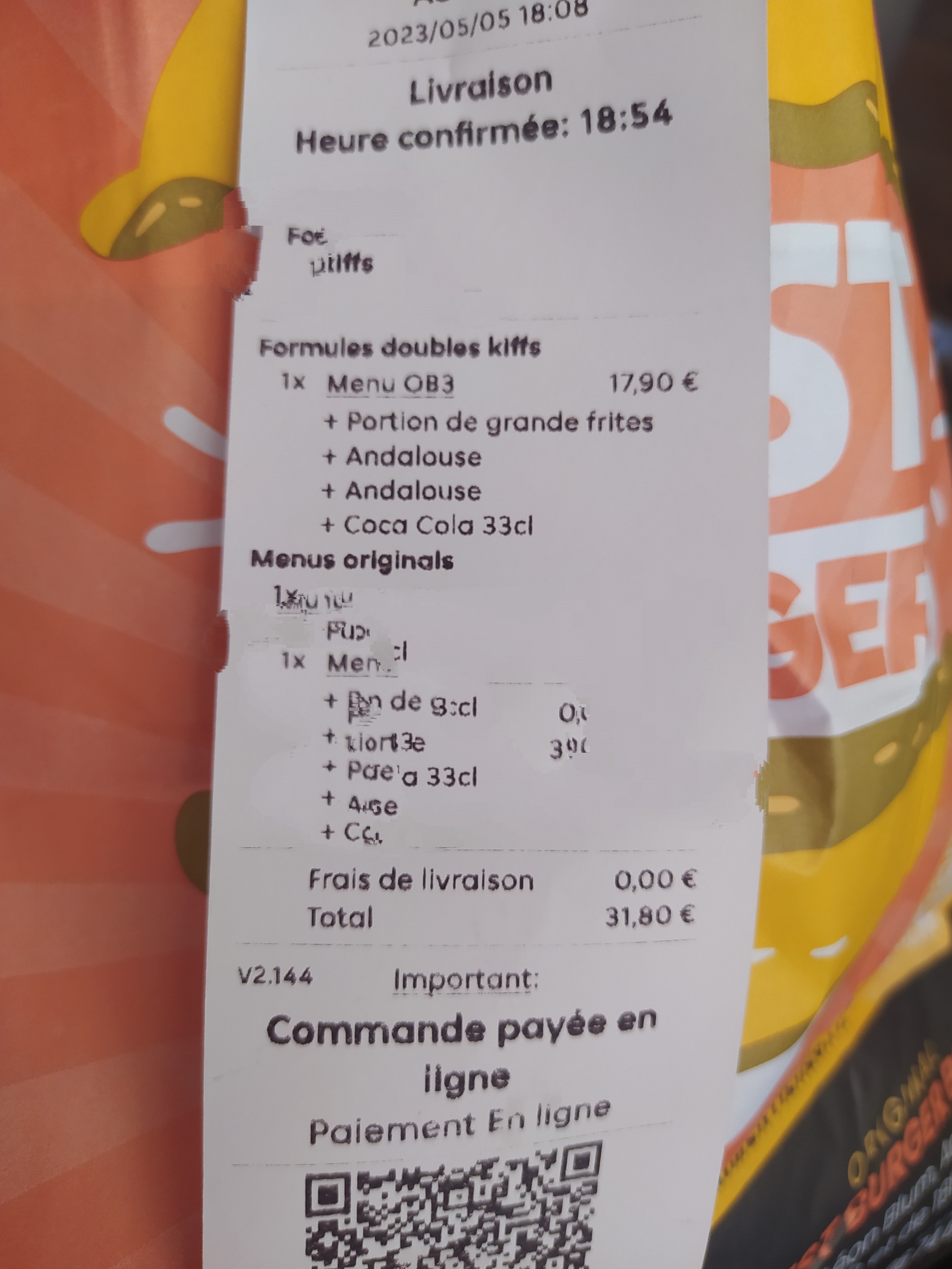 Repas Commandé en famille en Livraison .Que dire apart la livraison étais ( rapide , bien chaud, savoureux comme d'habitude). Jamais déçu continué comme ça 😁😁