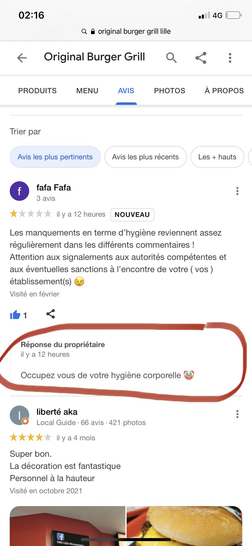 J’invite les consommateurs à ne plus consommer auprès des établissements OBG , propreté lamentable ( Signalements effectués ce jour auprès des services sanitaires en y joignant photos datées) . Gérant se permet de dénigrer les personnes faisant par de leurs critiques clients : voir photo ci-après . Pour ma part je n’irai plus chez Original Burger Grill. Et j’invite tous à partager en masse sur vos réseaux sociaux le comportement de ce gérant et ses manquements. Merci à vous .