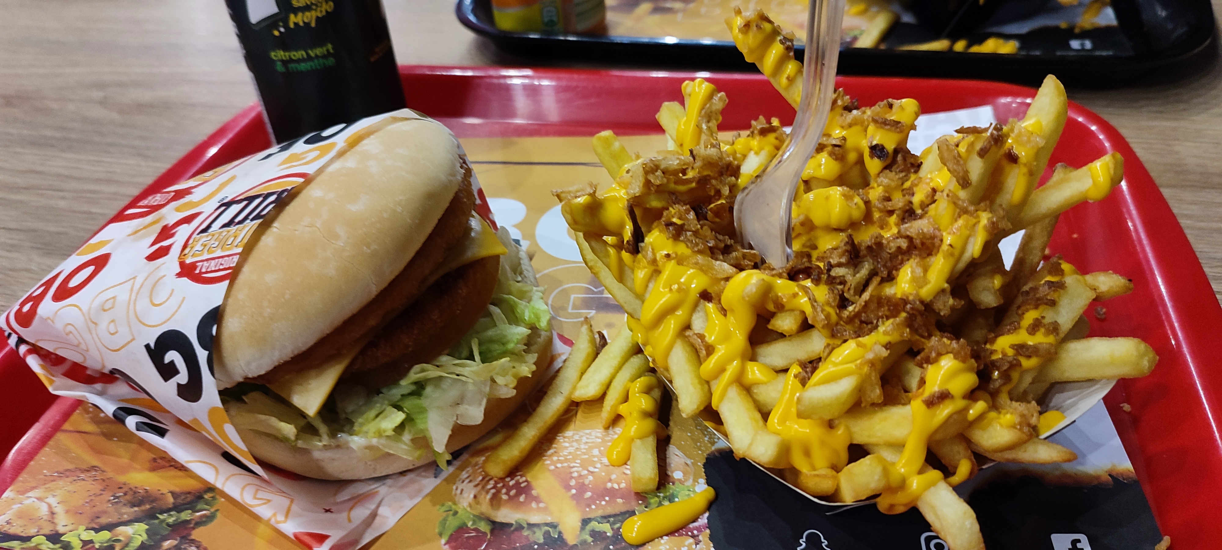 Attente bcp trop longue et hygiène pas au top. Un serveur en pause qui n’arrêtait pas de tousser s’est levé quand il a fini sa pause et a enchaîné le travail (mettre les serviettes sur le plateau, ranger les burgers dans les sacs des clients...) sans même se laver les mains. Bon c’est dommage, il y a quand même le covid-19 qui circule. D’ailleurs personne ne portait des vêtements pro.
