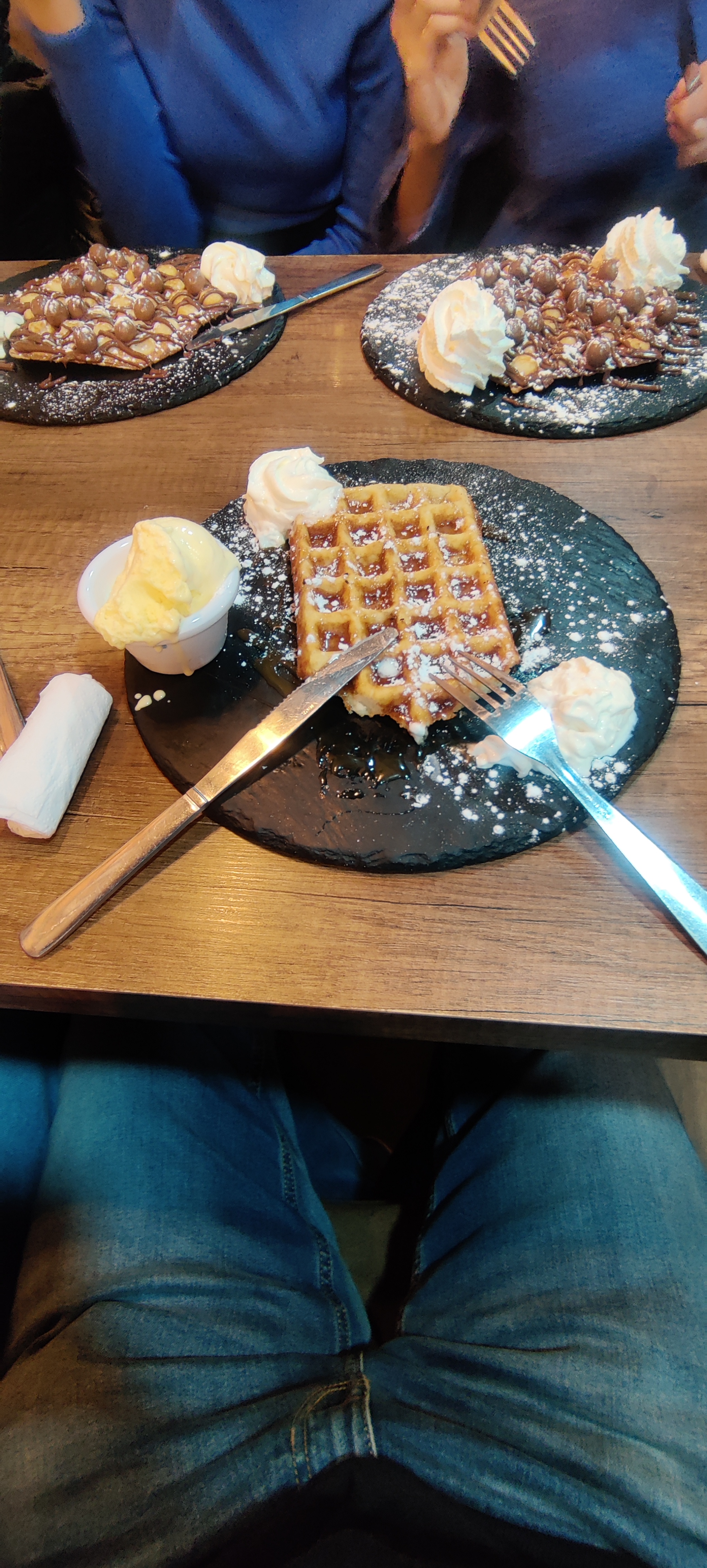 Nous y sommes allés un soir vers 21:30 pour prendre un petit dessert. Nous avons été accueillis par le cuisinier en personne qui s'est occupé de nous avec attention et gentillesse. 🤗 Une fois servis, il y en avait autant pour les yeux que les papilles ! La présentation était soignée et appétissante, les gaufres généreuses et le goût était à la hauteur du visuel 😉 ⌚ De plus, nous avons été servi très rapidement (moins de 10 minutes pour 3 gaufres bien garnies), ce qui n'est pas toujours le cas. Je recommande sans problème 👌🏽