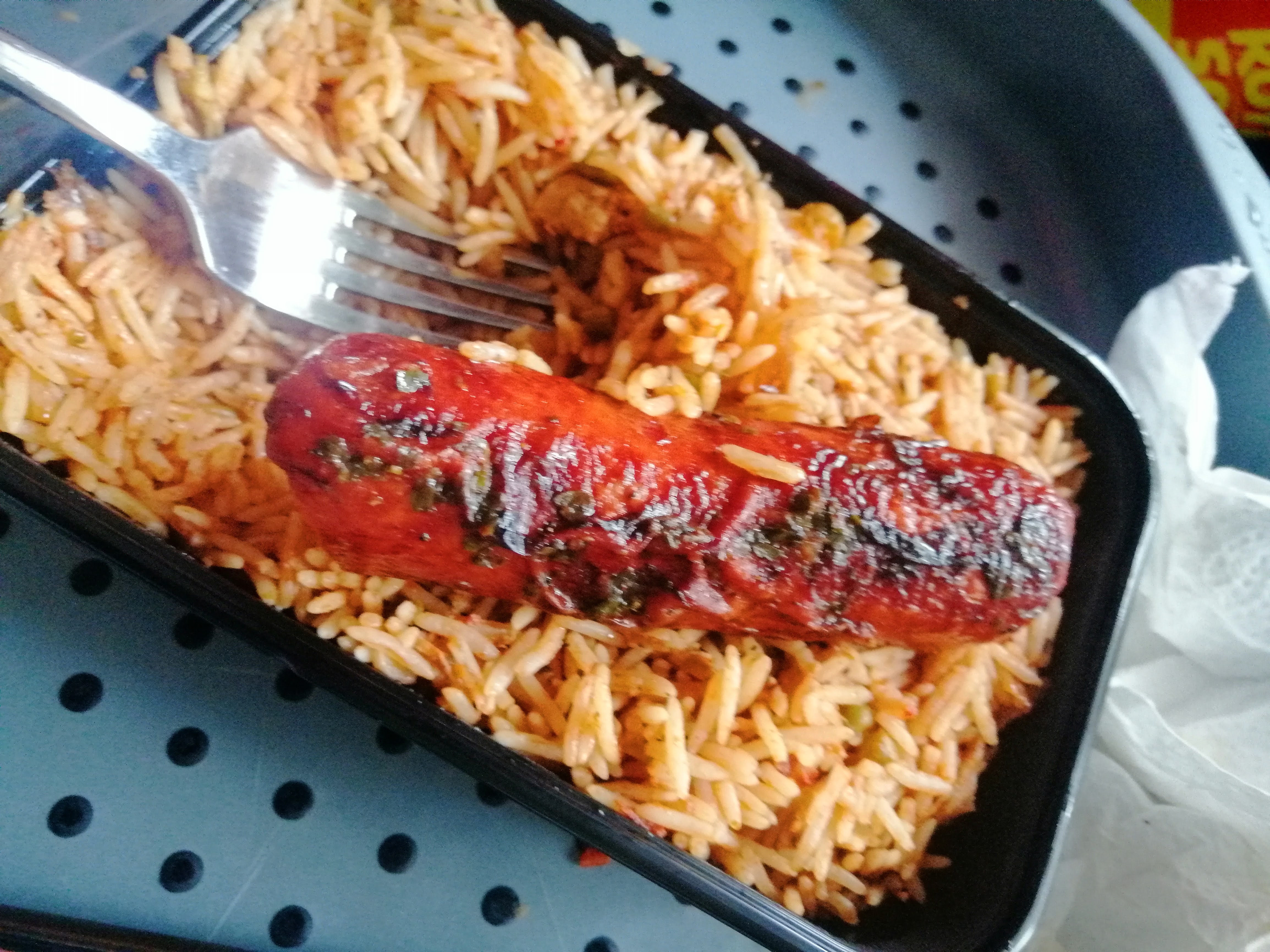 Très bon rapport qualité prix, poulet et riz très bon ! Dommage qu'ils ne fassent pas de hot dog avec les saucisses