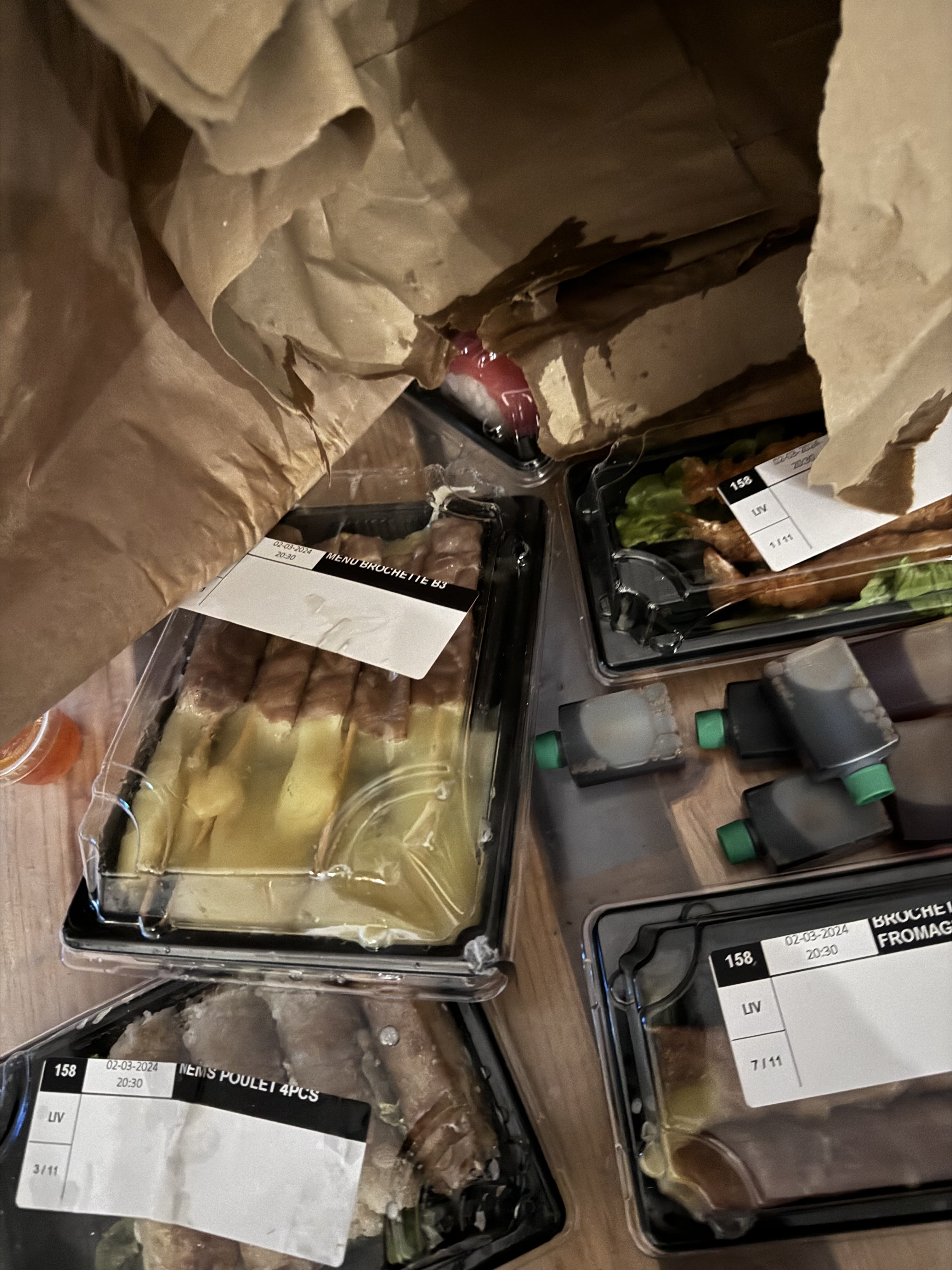 Quand je reçois ma livraison il manque souvent soit les baguettes soit les sauces nems. Comme ce soir je n'ai aucune baguette dans le sac !! ( encore ).