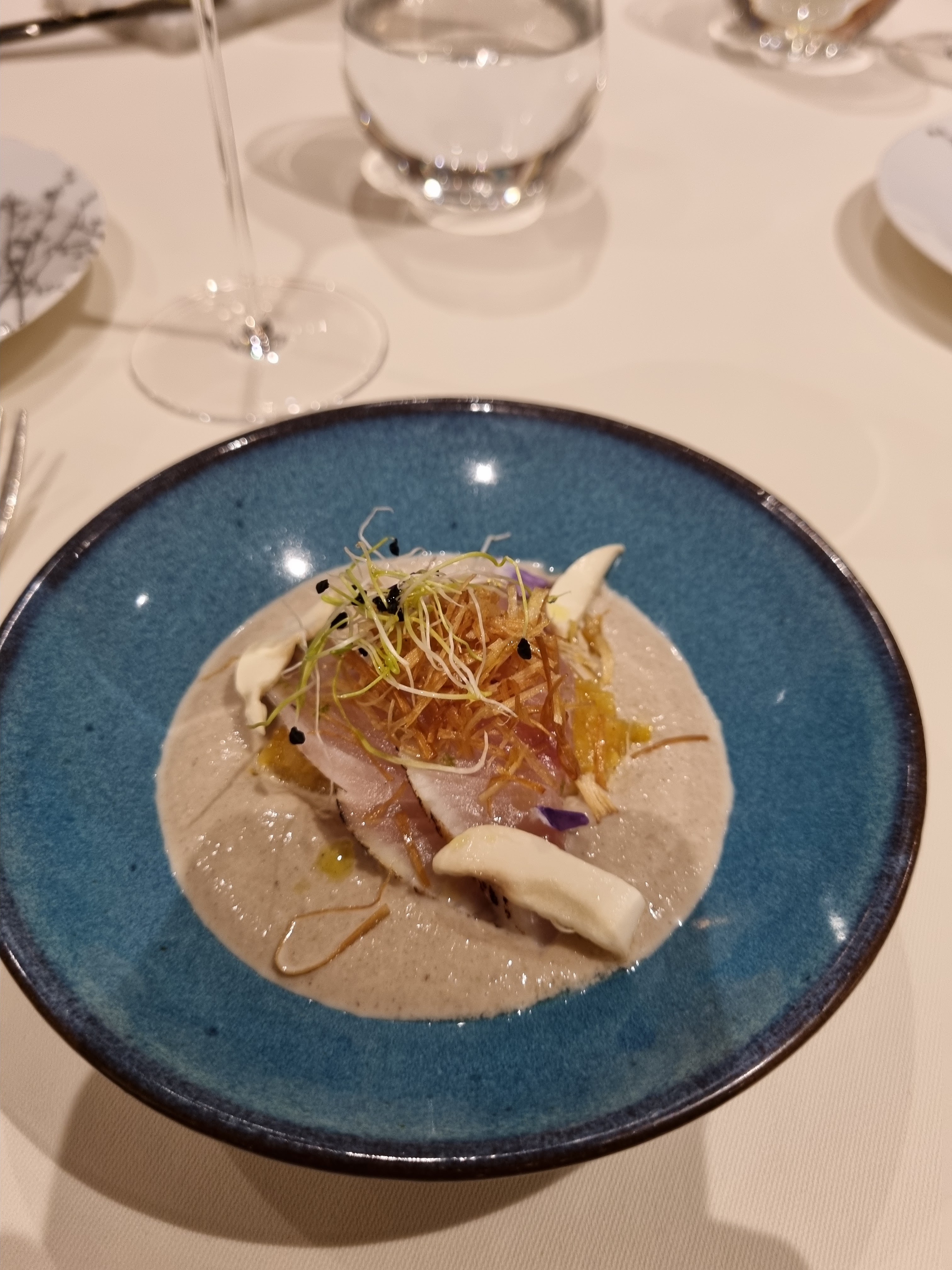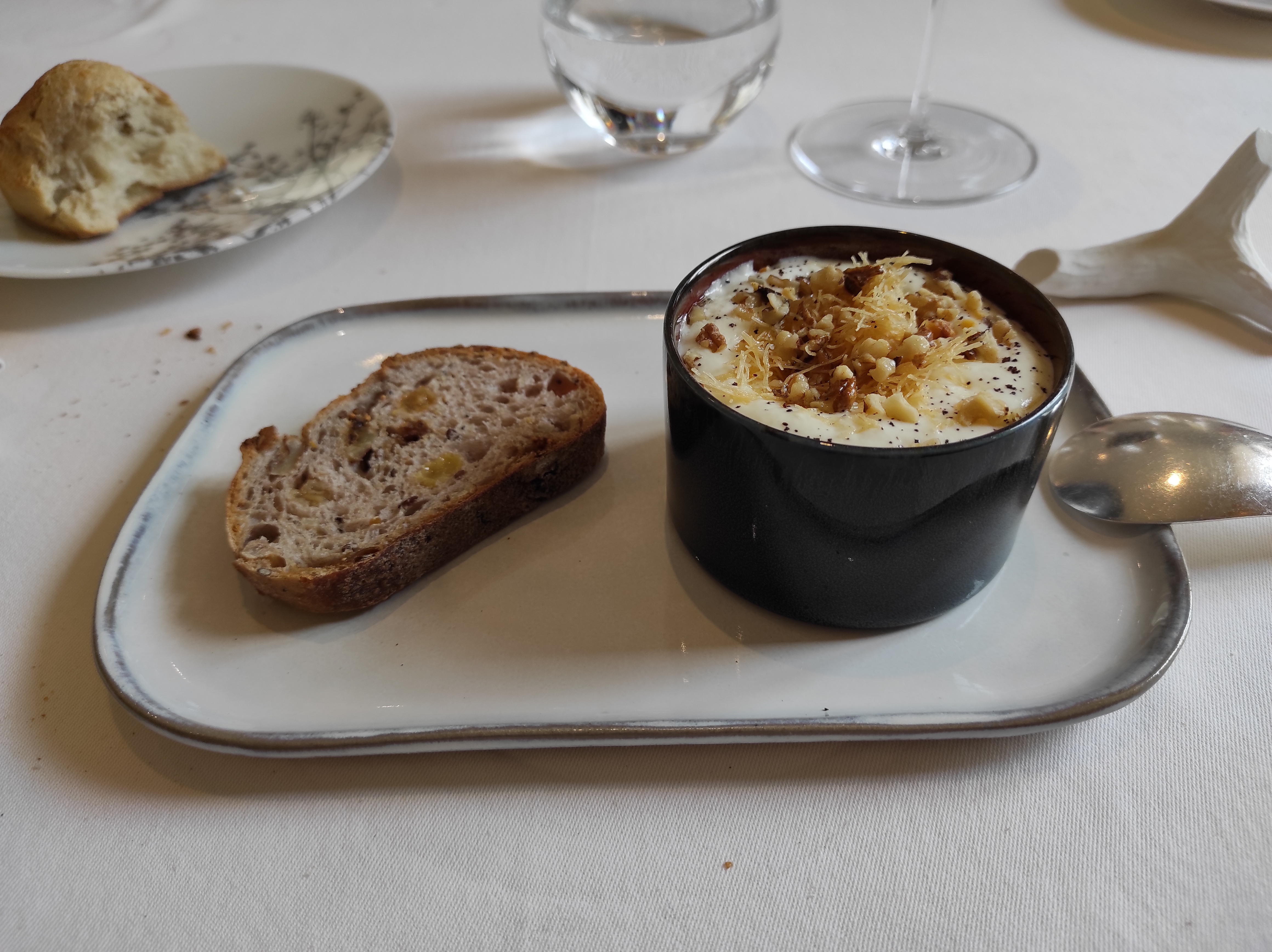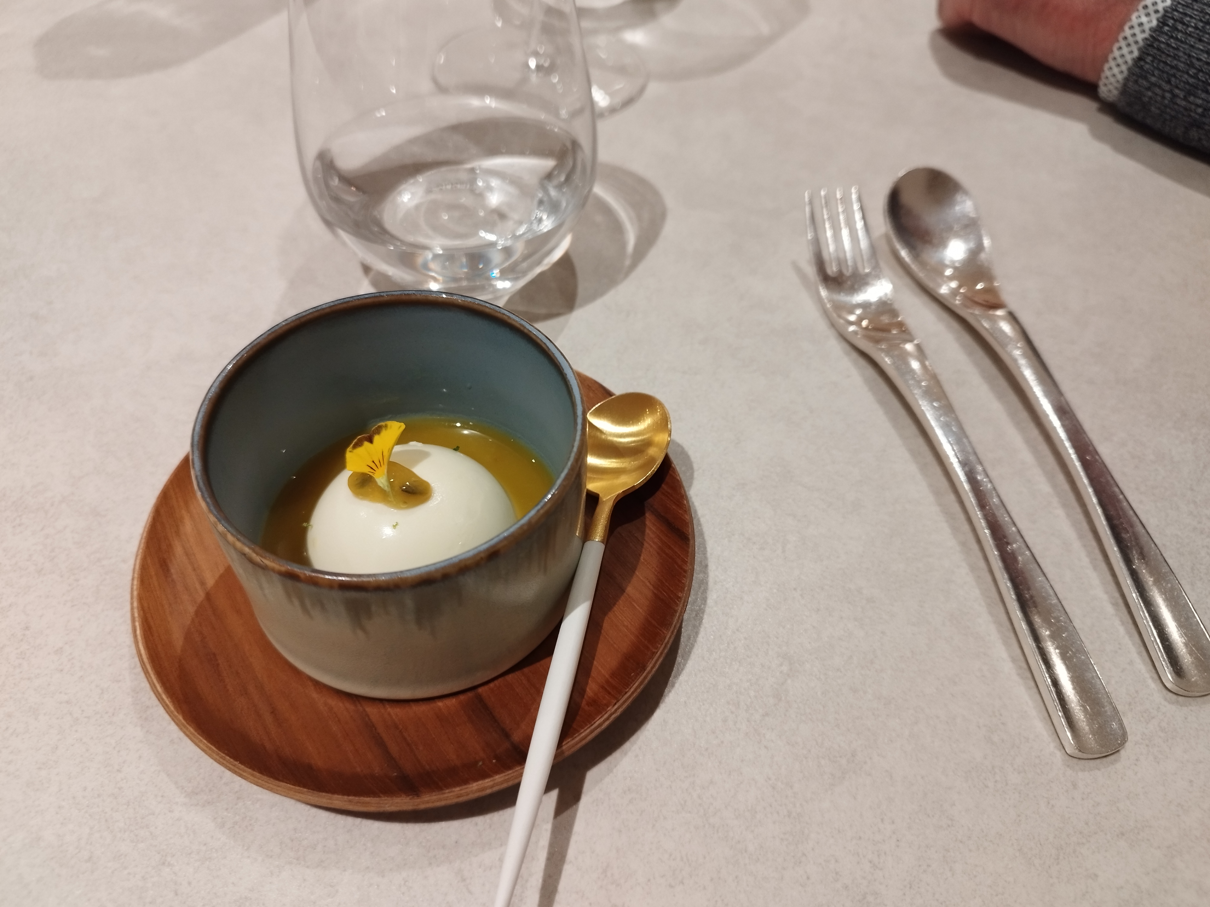 Un repas très agréable. L vaisselle et les plats sont de vrais oeuvres d'art. On sort repu mais pas lourd. Seul bémol, la qualité du pain. Le côté glacé de la mie donne une impression de décongelé et le goût et la texture ne sont pas à la hauteur des mets qu'ils accompagnent.