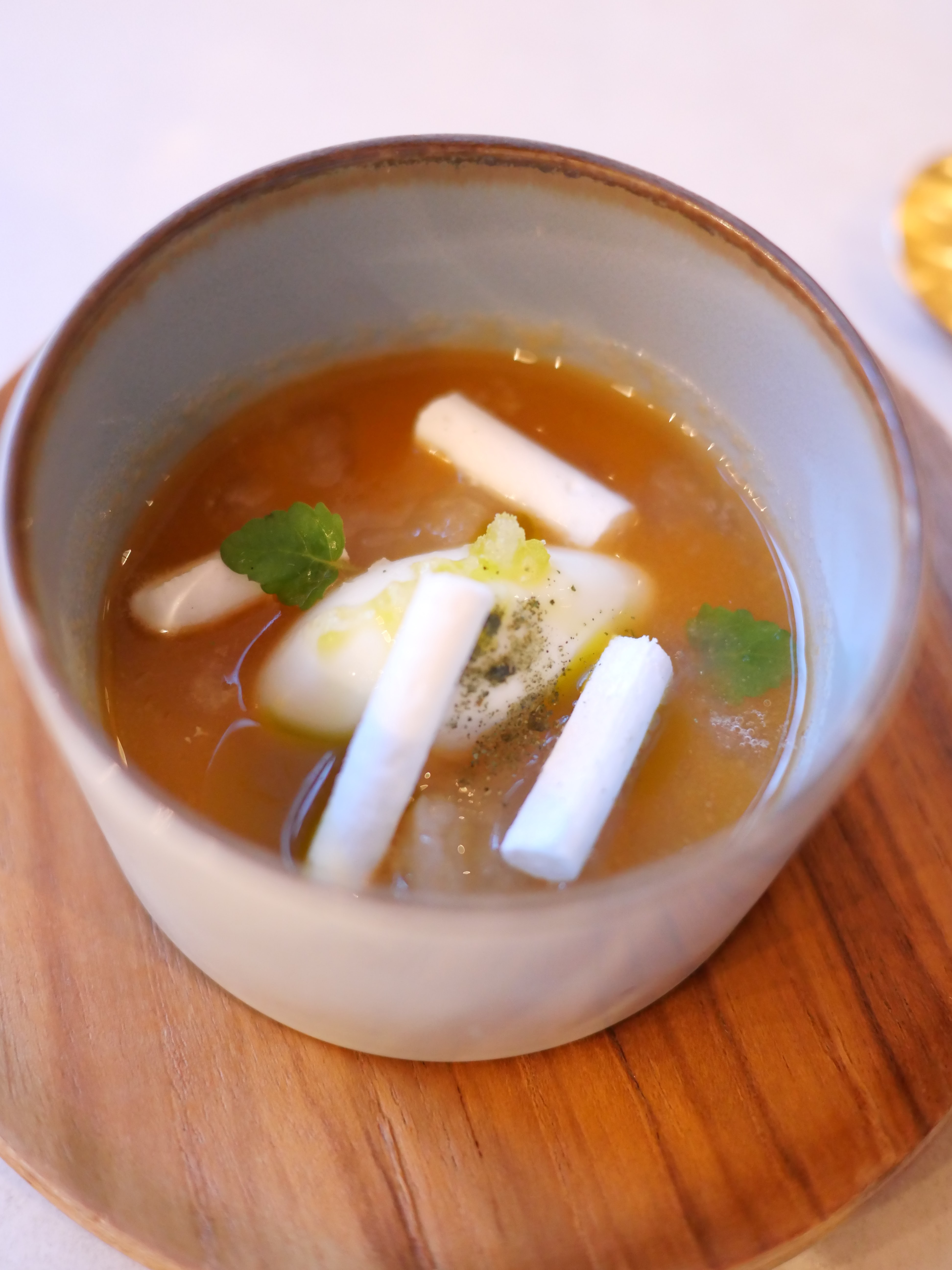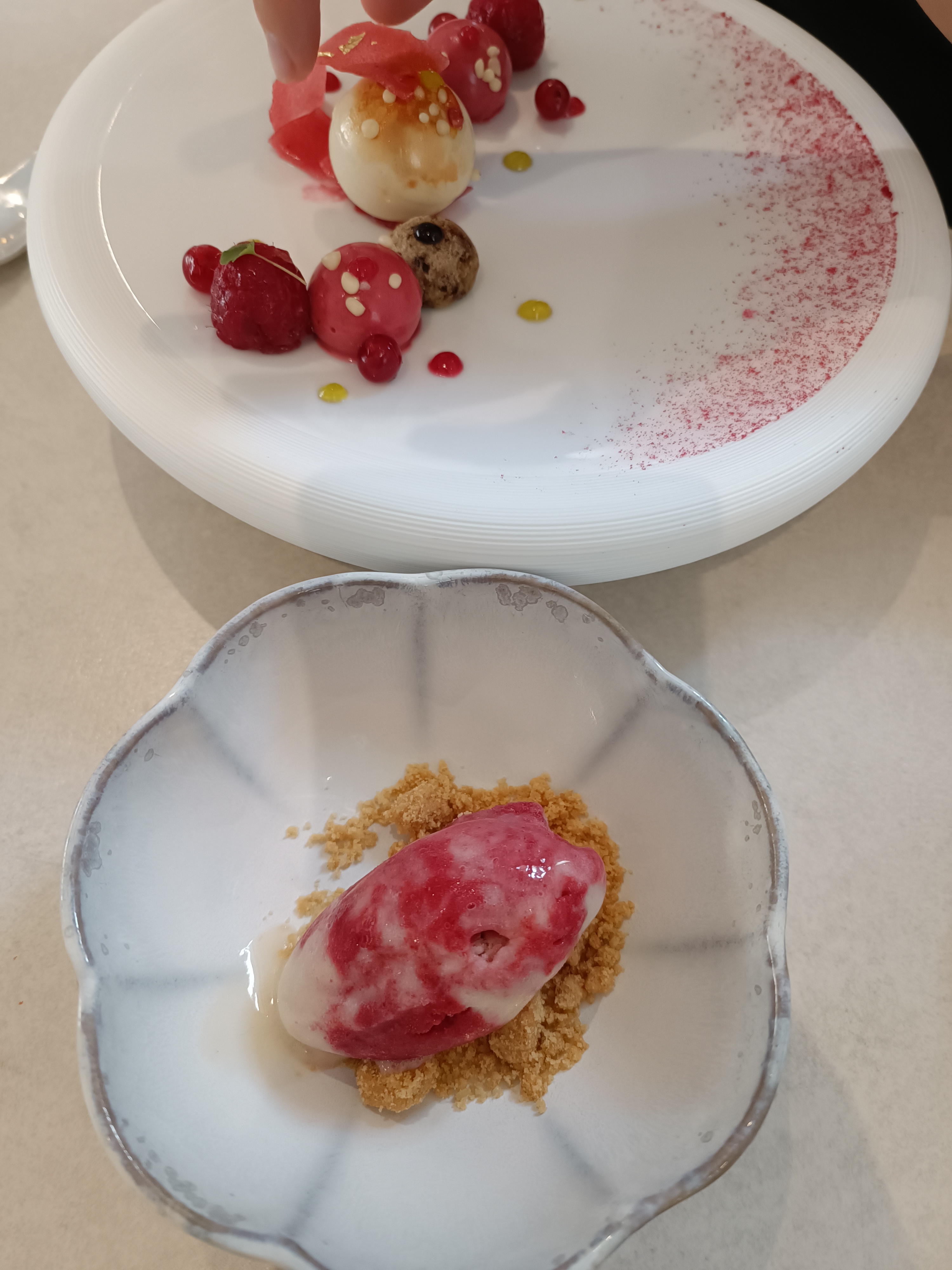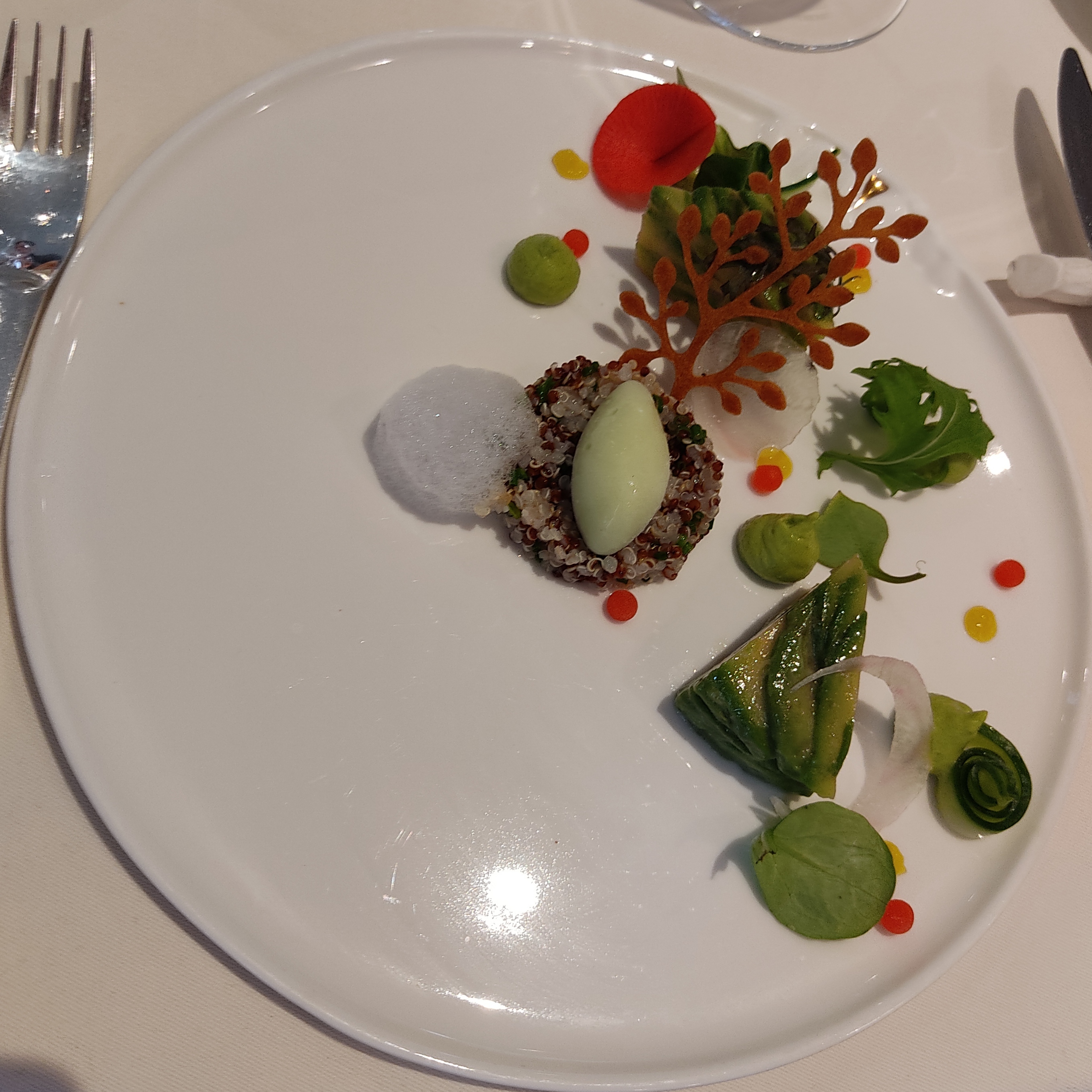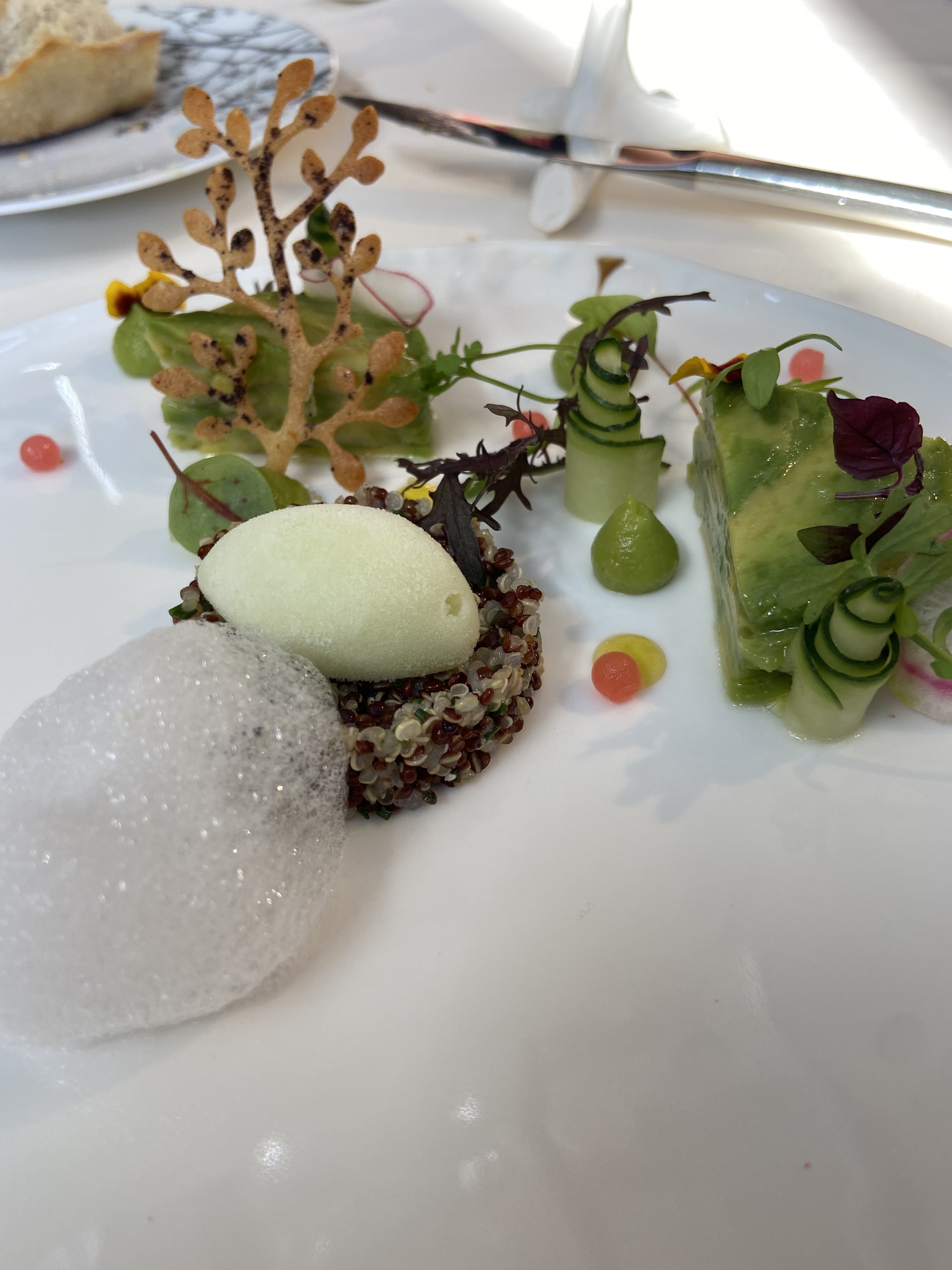 Un repas très agréable. L vaisselle et les plats sont de vrais oeuvres d'art. On sort repu mais pas lourd. Seul bémol, la qualité du pain. Le côté glacé de la mie donne une impression de décongelé et le goût et la texture ne sont pas à la hauteur des mets qu'ils accompagnent.