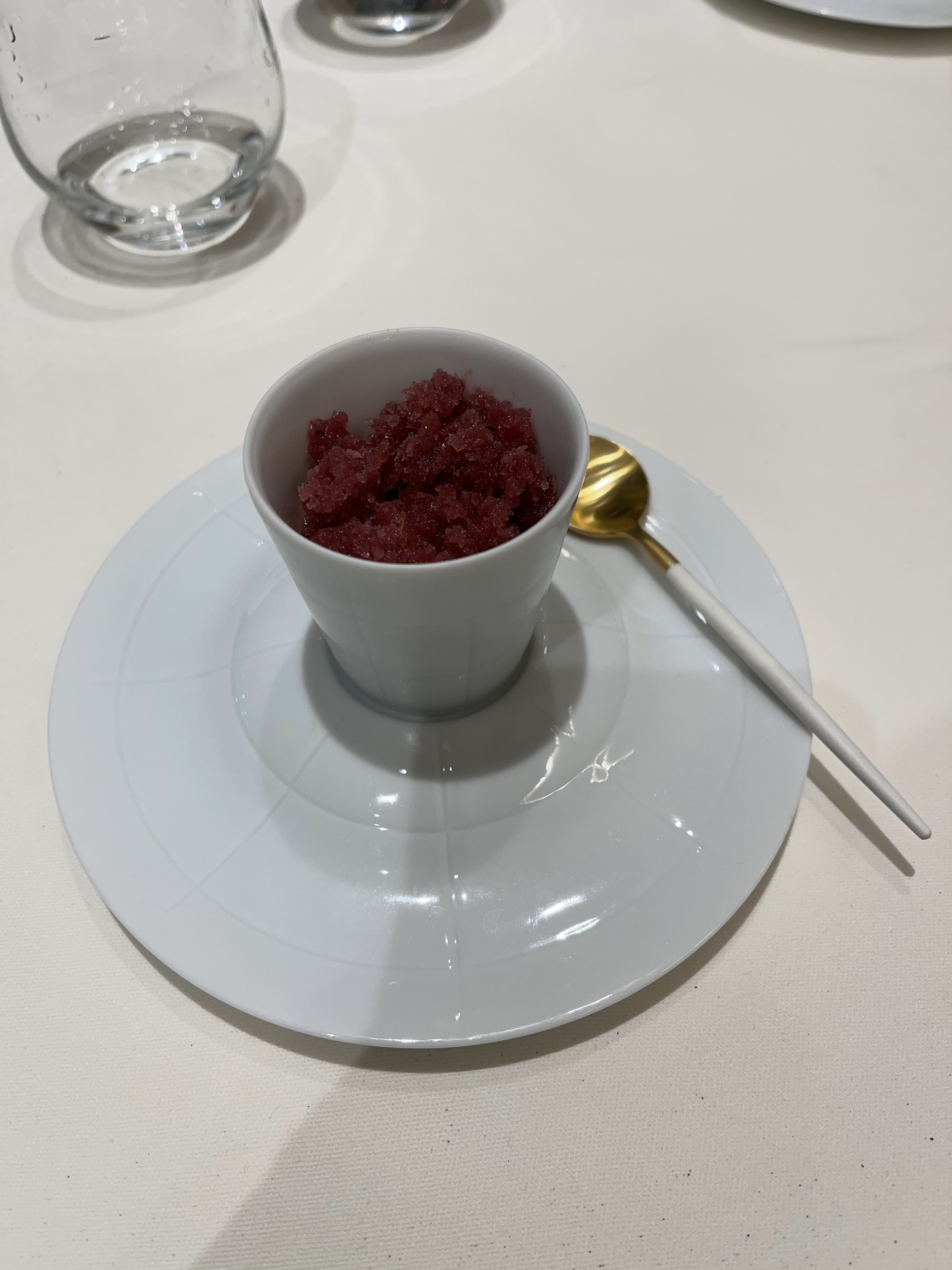 Je n’ai pas du tout aimé le menu « déjeuner surprise ». Des pommes de terre hachées servies détrempées et des taches de sang sur mon veau. Peut-être que le dîner est différent ? Le livre du vin est également très épais et difficile à feuilleter - on dirait un annuaire de fin d'études... et le vin n'a pas non plus été servi à la bonne température (peut-être parce que j'ai commandé un Vosne Village ?!). S'il vous plaît, faites bien les bases, surtout lorsque vous êtes en plein milieu de la scène viticole… Eh bien, ce n'est pas juste de comparer ce restaurant à Racines ⭐️⭐️ à Reims où le chef japonais exécutait le français de manière si raffinée. Déception surtout quand vous avez autant d'options comme CIBO en ville. Je donne deux étoiles pour le gentil jeune serveur - merci.