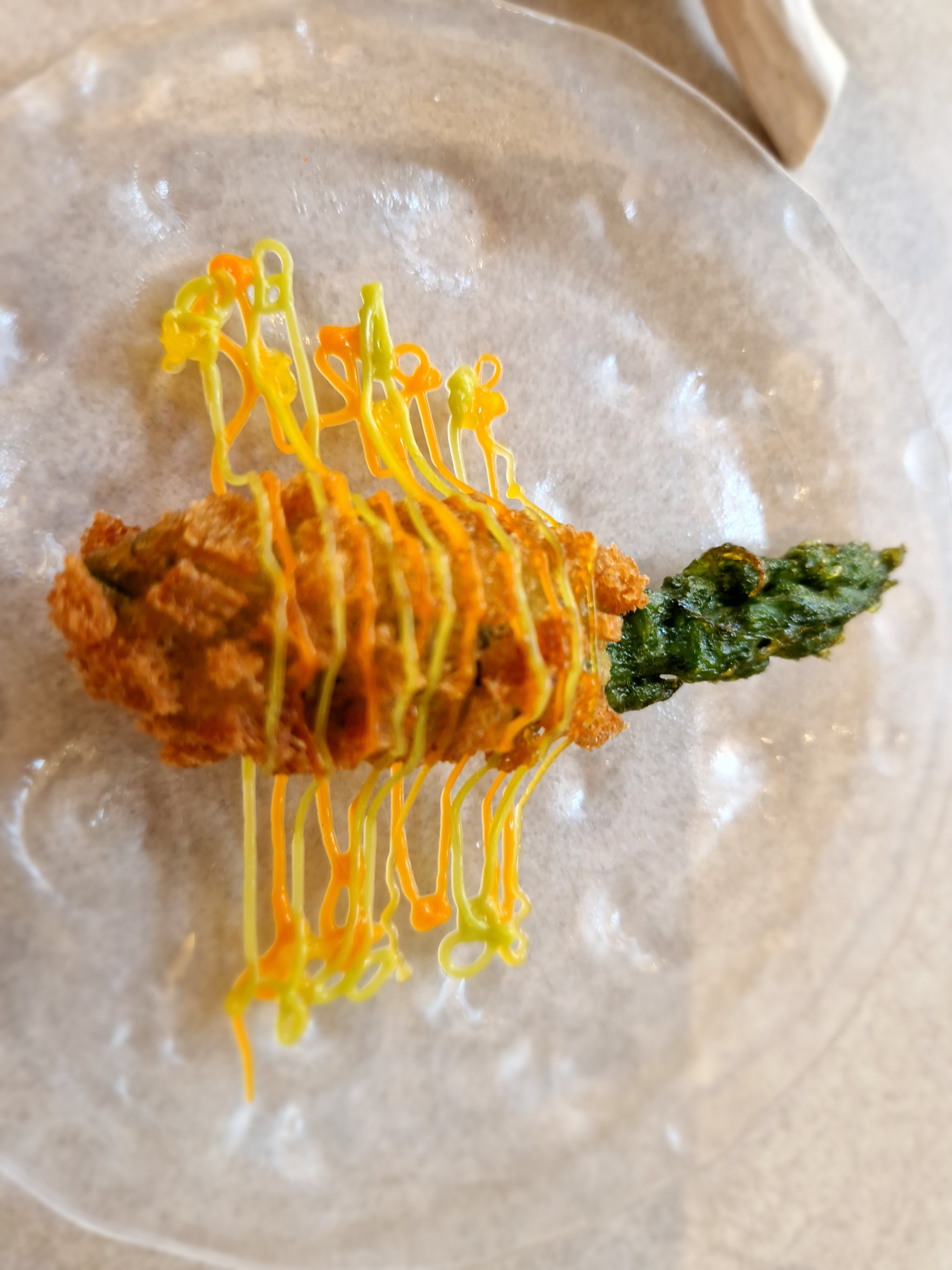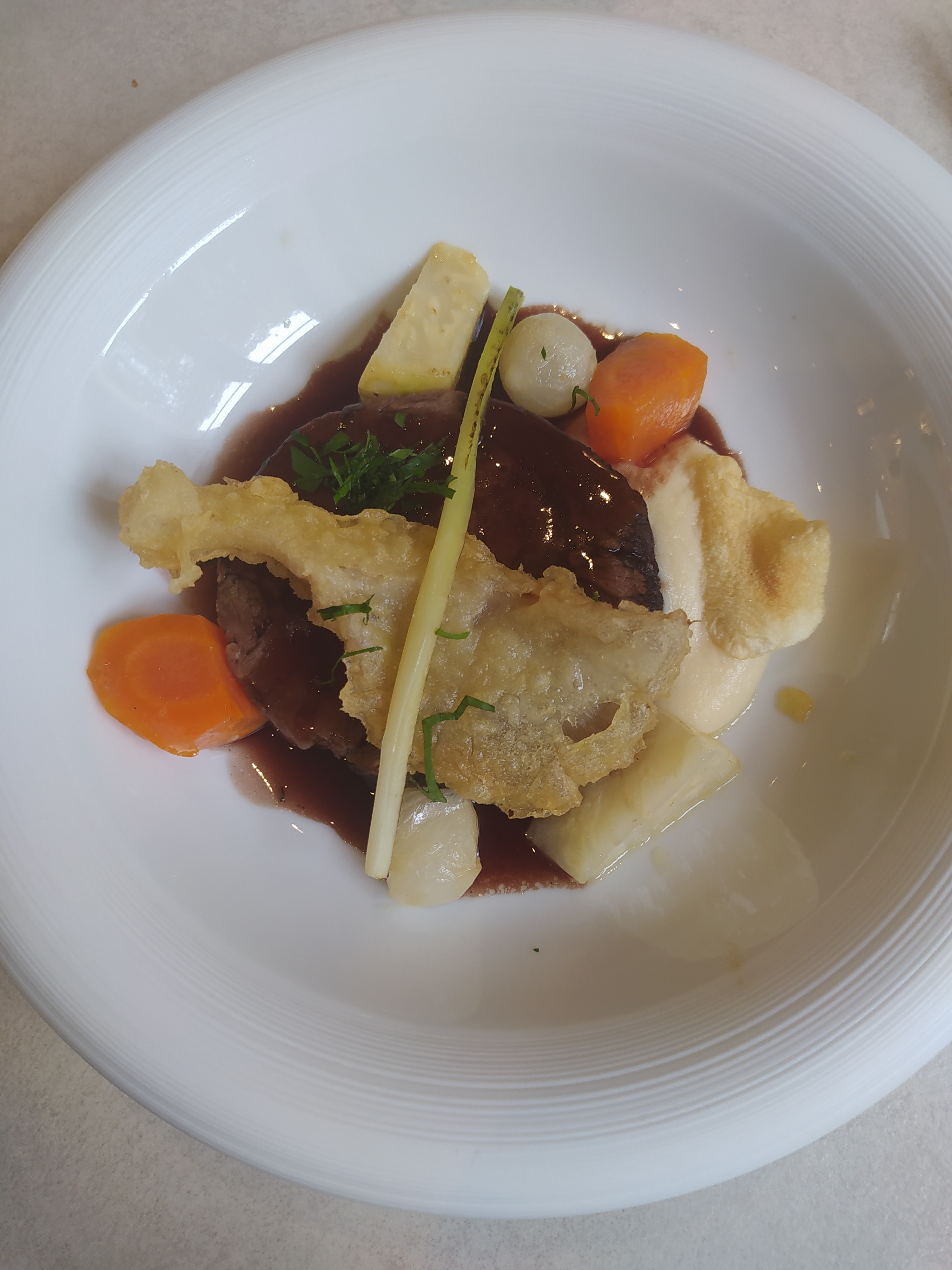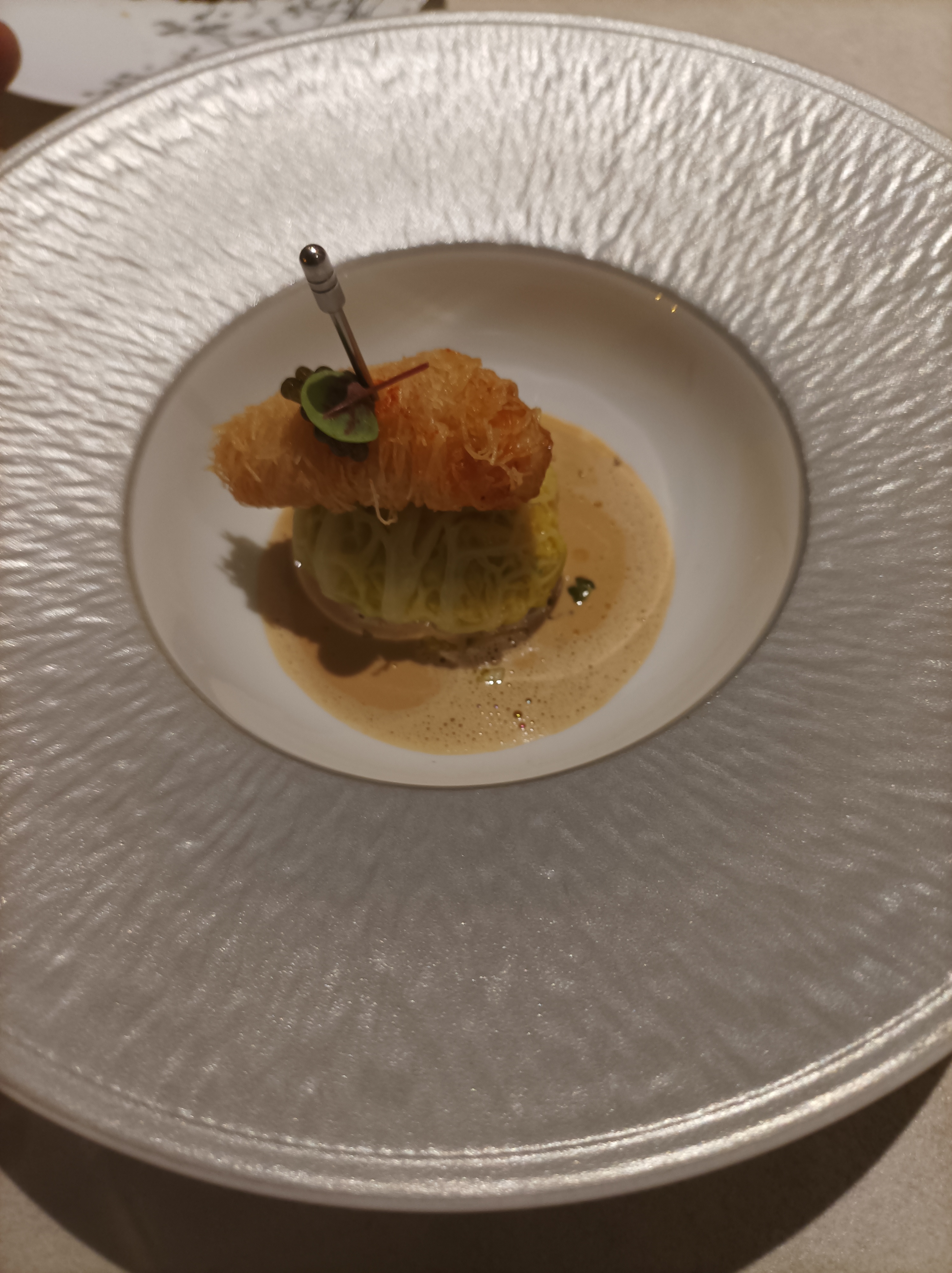 L’assiette est recherchée et très bonne c’est incontestable. Mention spéciale aux cromesquis d’escargots, et à l’émulsion de citeaux. Un bémol sur le service qui est un peu « brouillon » qui manque de rythme : on attend beaucoup.