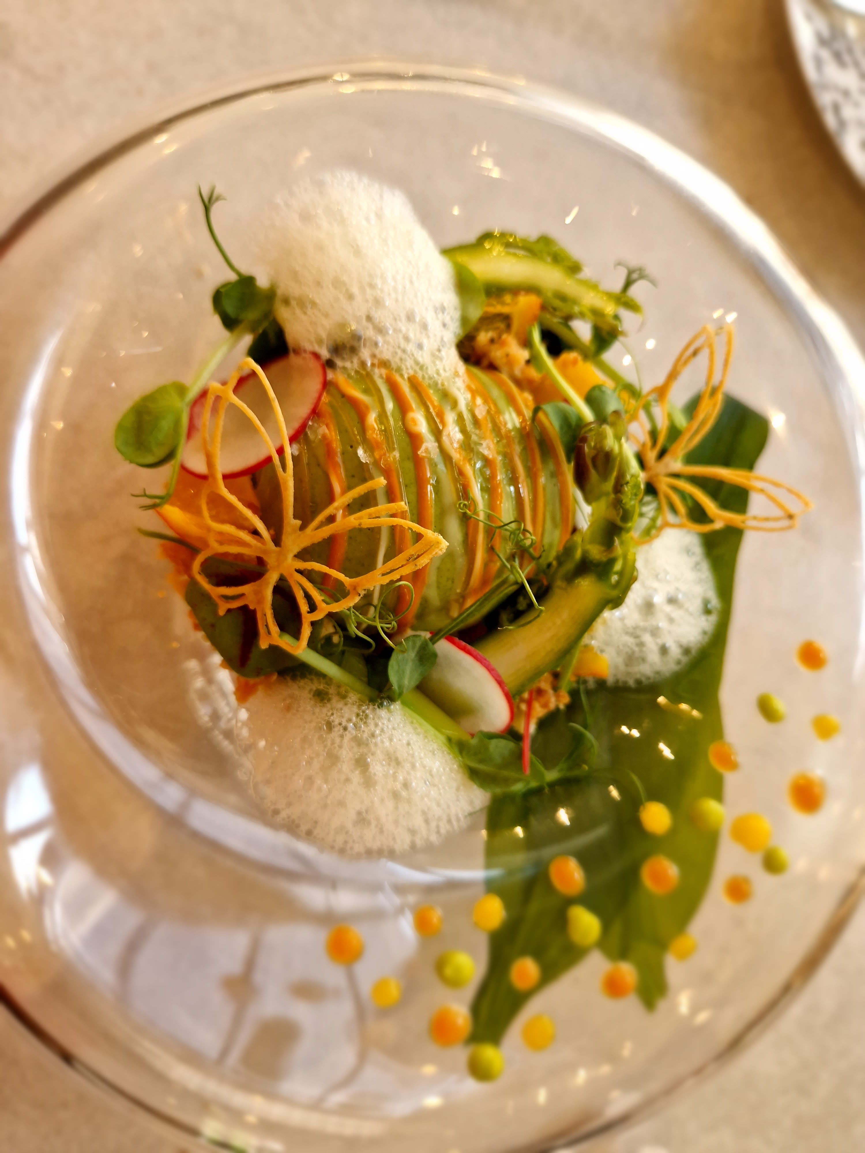 Un pur bonheur que ce voyage pour les 5 sens : la salle est calme et le decor tres agreable et apaisant.Le service raffiné est réalisé avec le sourire ...que les masques ne cachent finalement pas. Le repas est une suite poétique et surtout pleine de surprises tant pour les papilles que pour les yeux. Beaucoup de générosité dans chaque assiette que l'on perçoit comme des oeuvres uniques , réalisée pour nous personnellement. Tout est en harmonie pour nous faire passer un moment inoubliable. Je n 'ai malheureusement que 5 étoiles à distribuer mais les étoiles Michelin ne sauraient tarder, c'est une évidence !!!