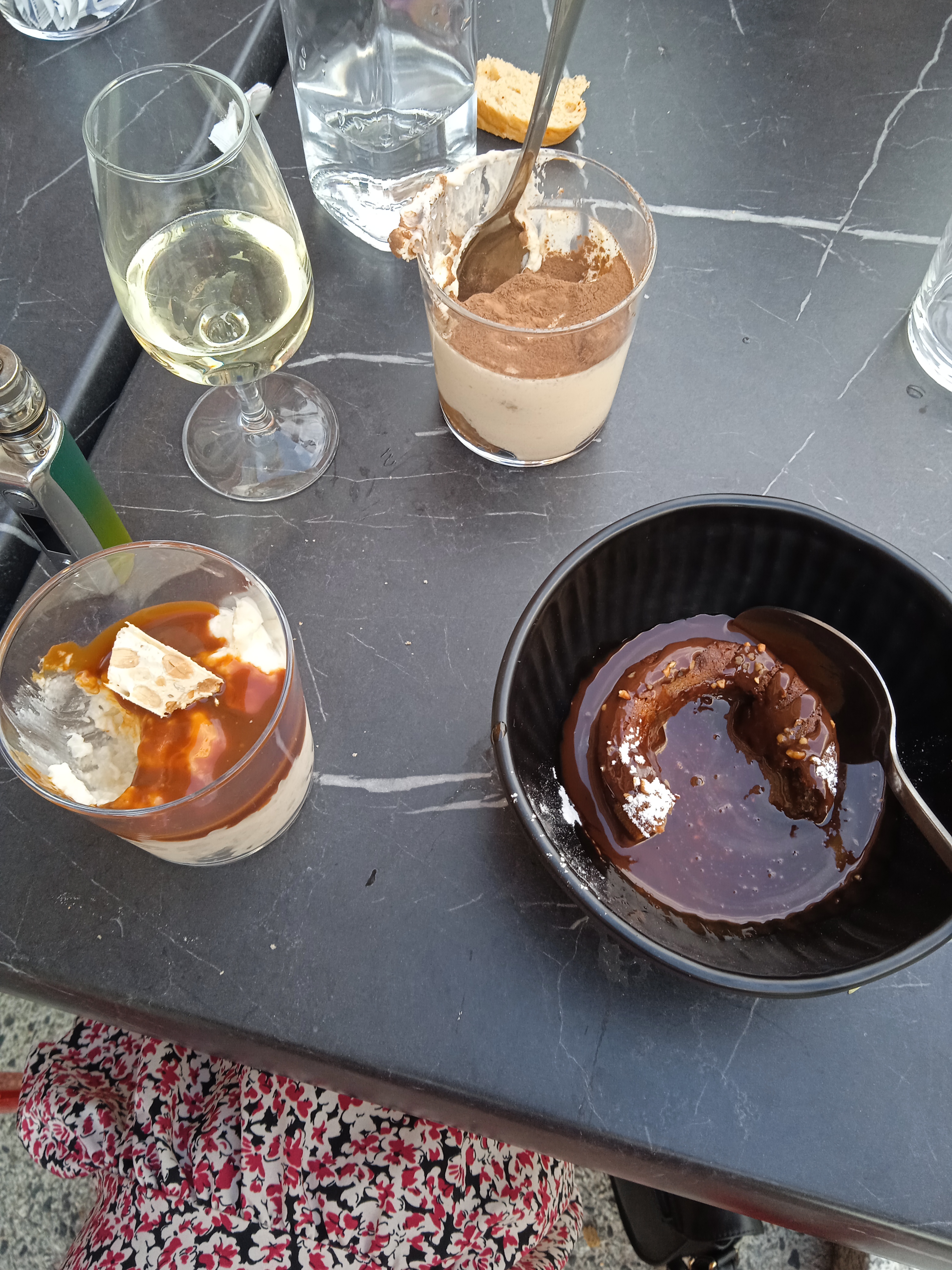 Extrêmement déçu, aussi bien par l’aspect que la composition de notre planche. Pas d’ambiance ni de musique … Déçu aussi bien par le fond que par la forme. Seul avantage, nous avons bu une bonne bouteille de Moscato.