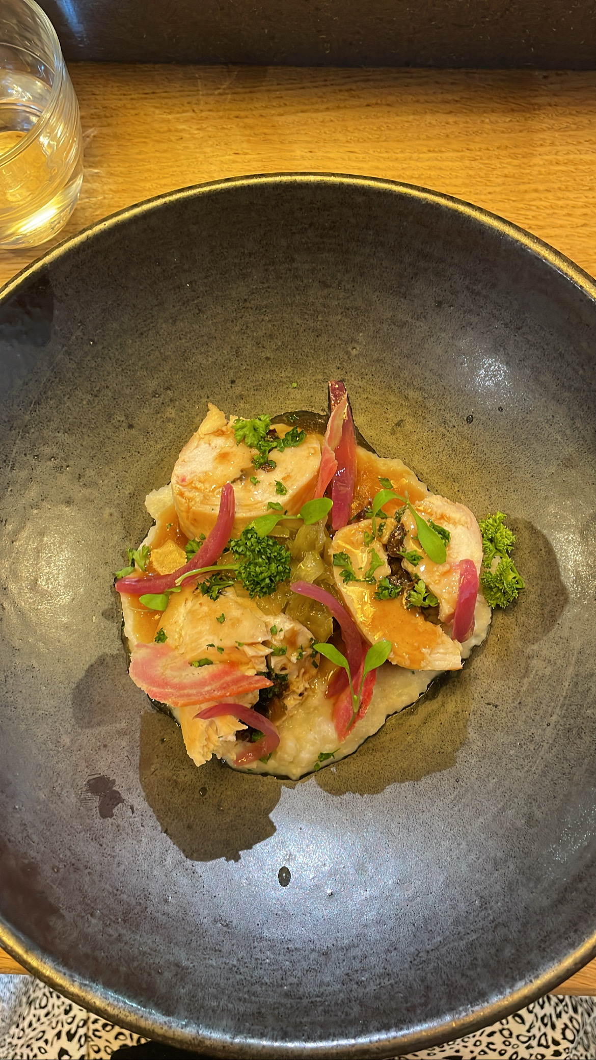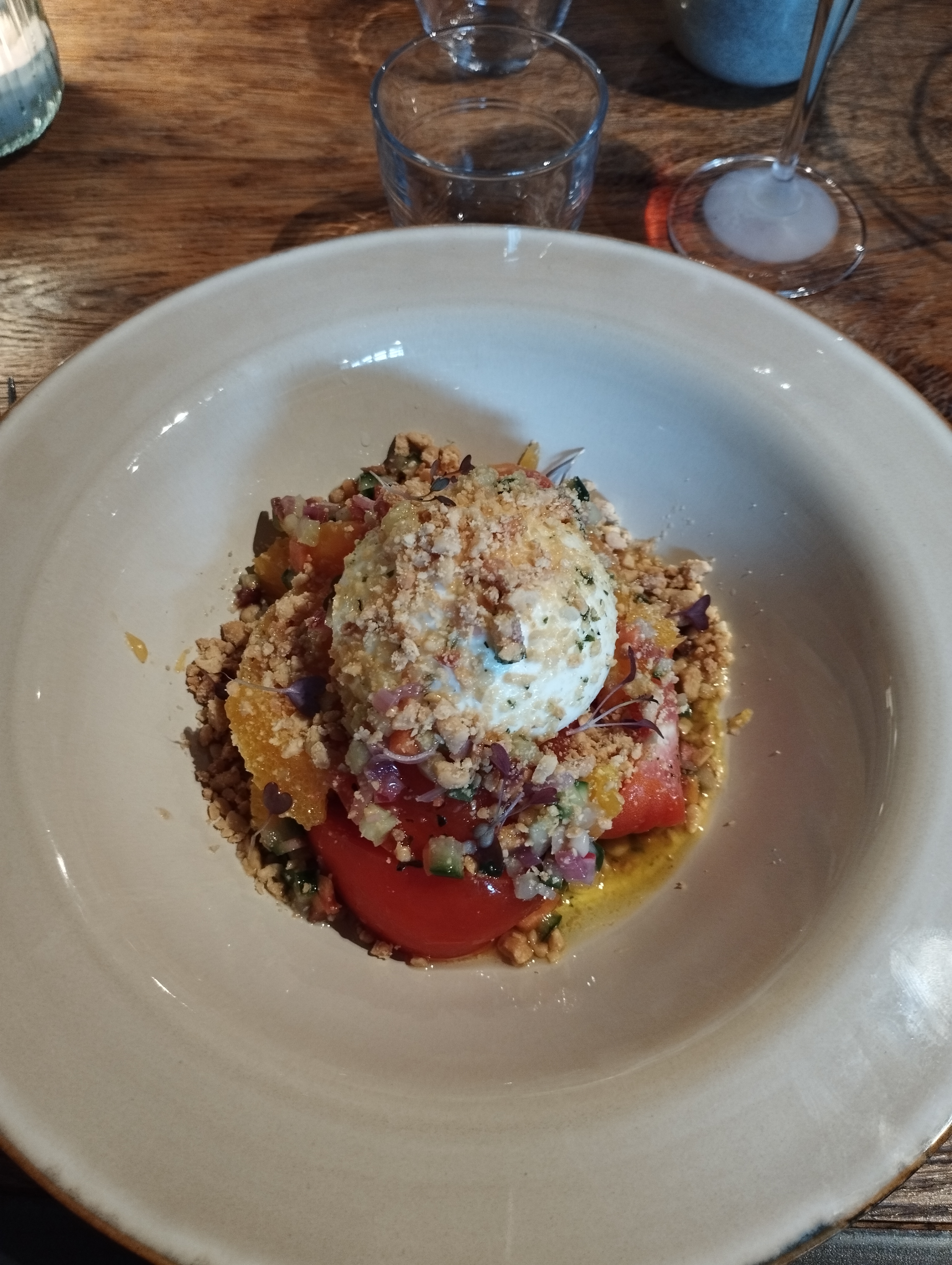 Délicieux! Recherché. Vaisselle magnifique. Entrée plat dessert pour déjeuner. Super service. Terrasse très agréable bien que le soleil d’août ne soit pas au rendez-vous :(