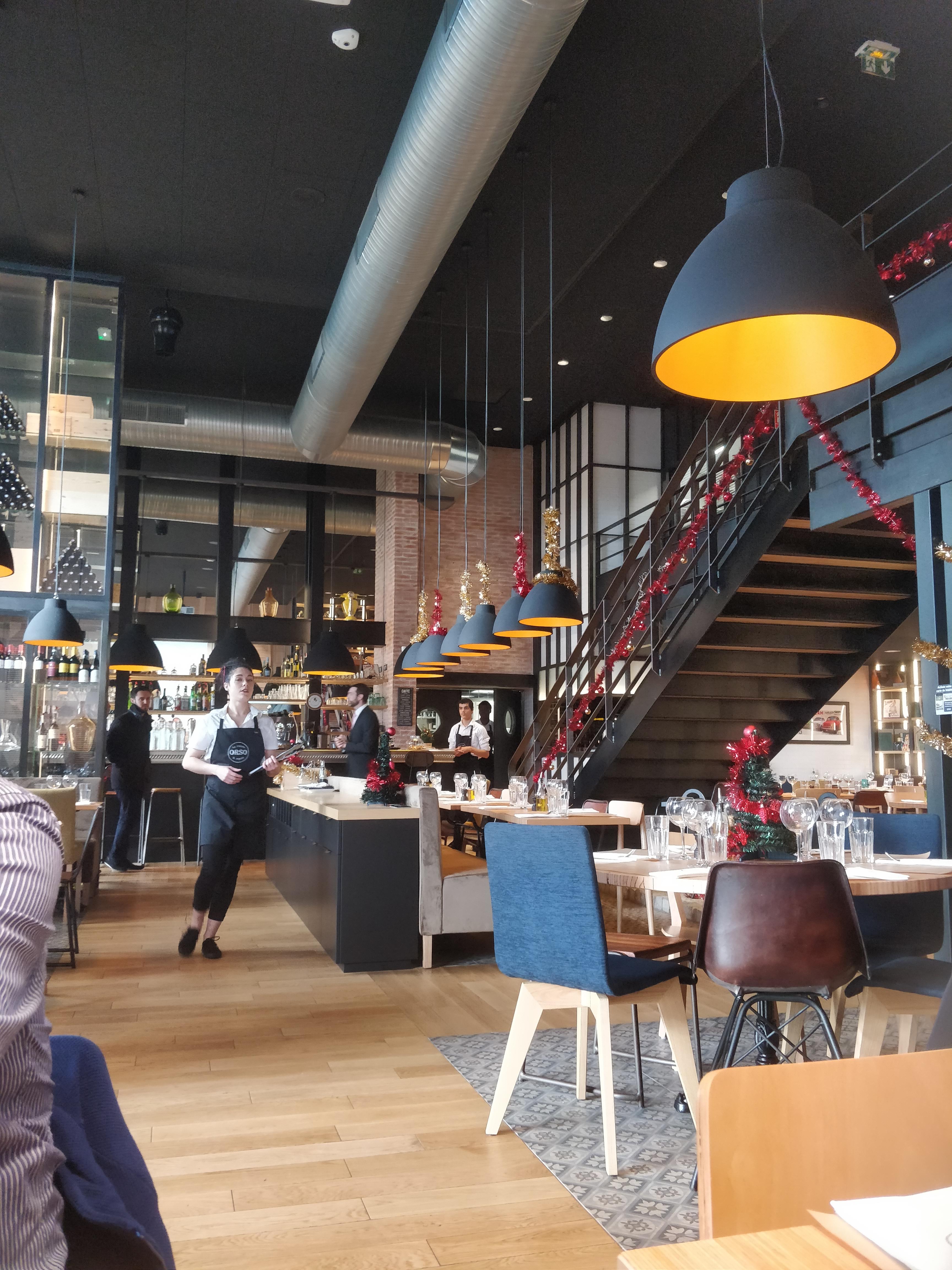 J'avais entendu du bien de ce restaurant mais malheureusement l'accueil est plus que limite. Samedi soir aux alentours de 21h, pour deux personnes, nous avons été accueillis après 5 minutes d'attente dans le hall. Le responsable nous informe que l'équipe n'arrive pas à gérer le service alors que le restaurant n'est pas complet. Il nous propose de patienter en nous informant qu'il ne connaît pas le temps d'attente et que plus il nous parle plus il perd du temps pour éventuellement nous installer plus tard. Ayant travaillé dans la restauration cette phrase m'a achevée. Moi qui faisait de la publicité pour le Mécanicien et l'Orso, deux restaurants qui avaient un peu de mal à decoller...si le personnel et l'accueil ne sont pas à la hauteur dès qu'il y a un peu de monde je comprends mieux pourquoi ils vont avoir des difficultés à se faire un nom. Bien dommage car le cadre est très sympa. Bon courage !