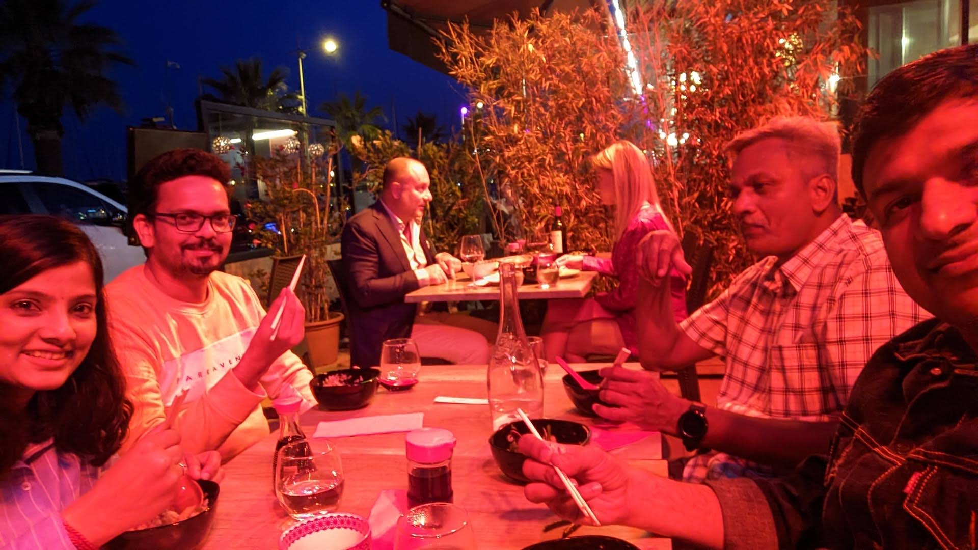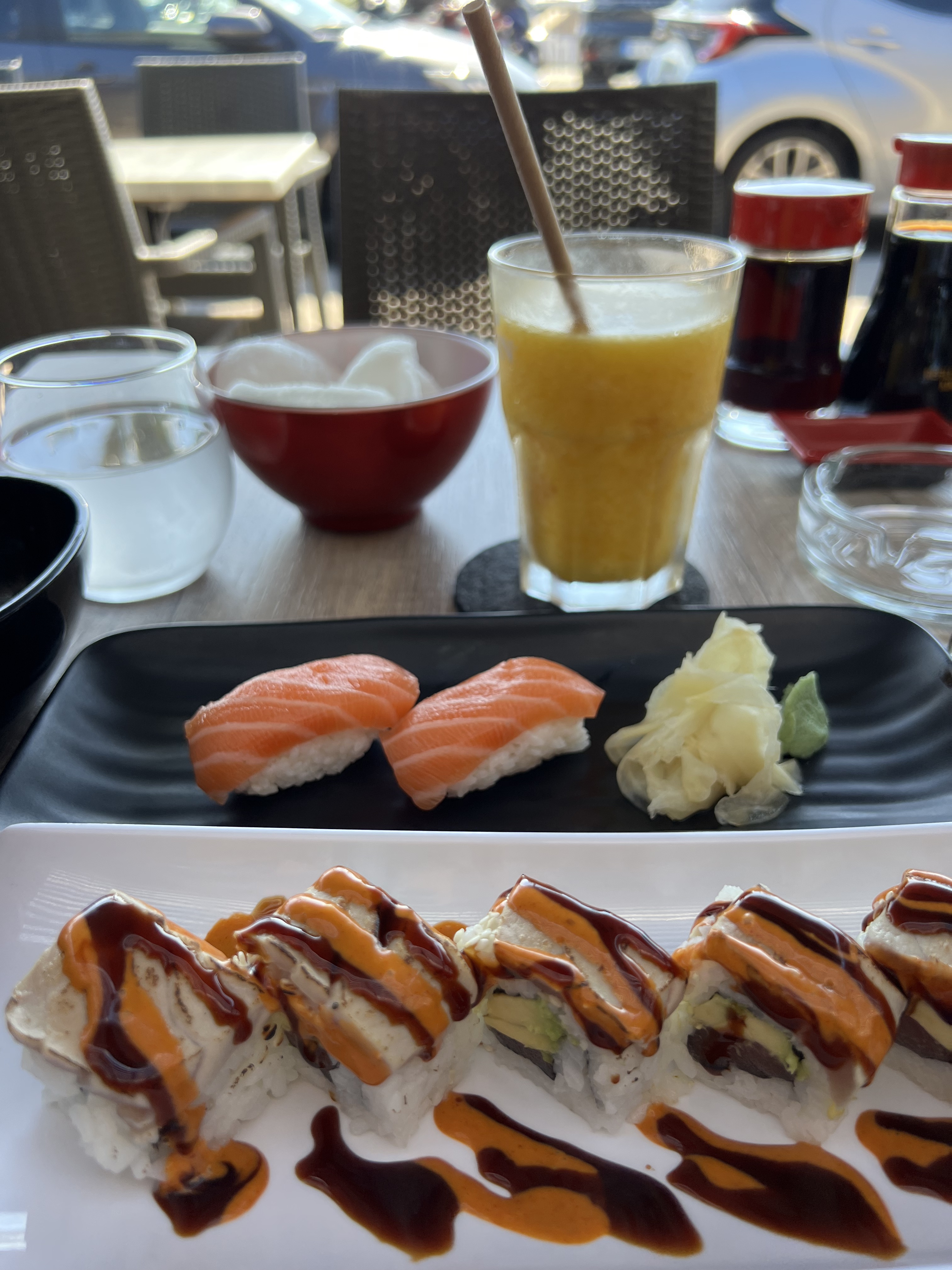 En terrasse au soleil un 27 décembre. Alors je sais qu'ils n'y sont pas pour grand chose, mais on a pris des couleurs, ca fait du bien. Sinon, rien à redire. Le personnel est gentil et avenant. C'etait fin et délicieux. Meme le café n'avait pas un goût de brûlé et amer. Pour avoir deja etaiy chez des voisins, il a rapport qualité prix correct pour un restaurant au port de St Laurent. Une adresse japonaise à recommander.