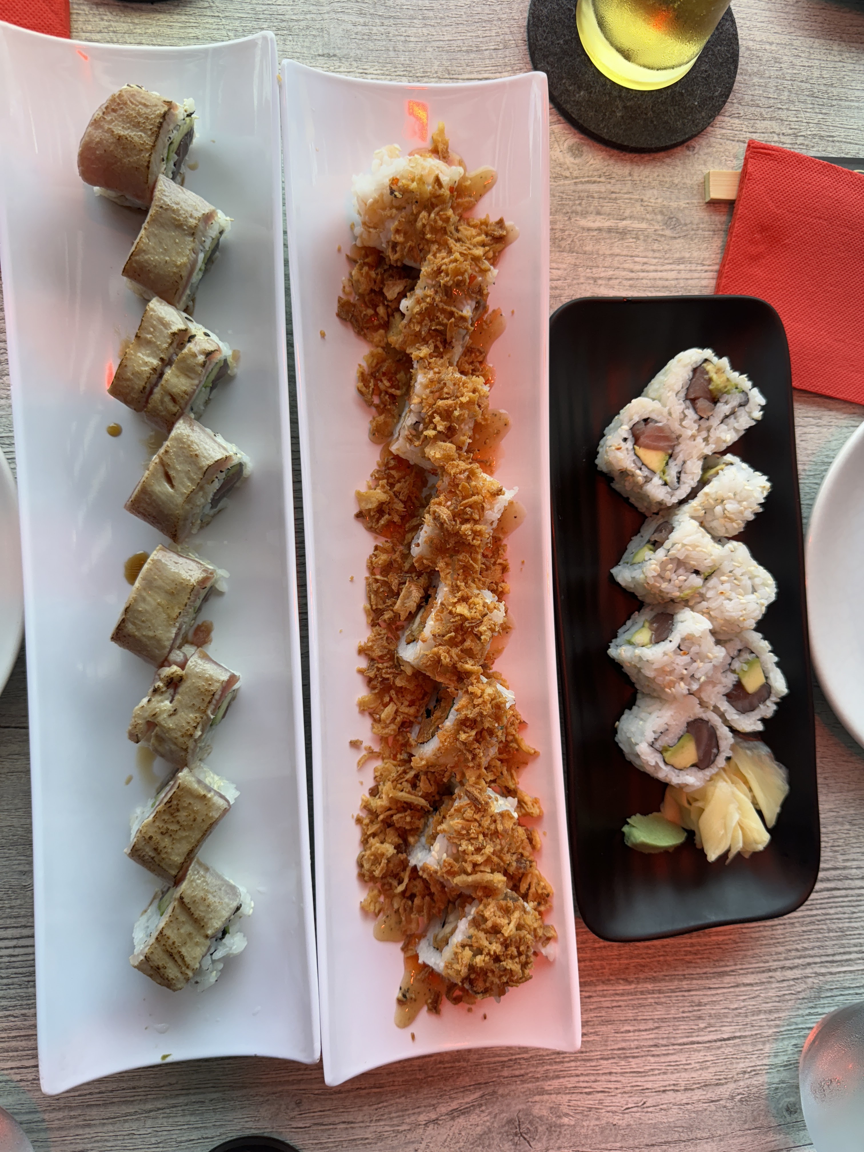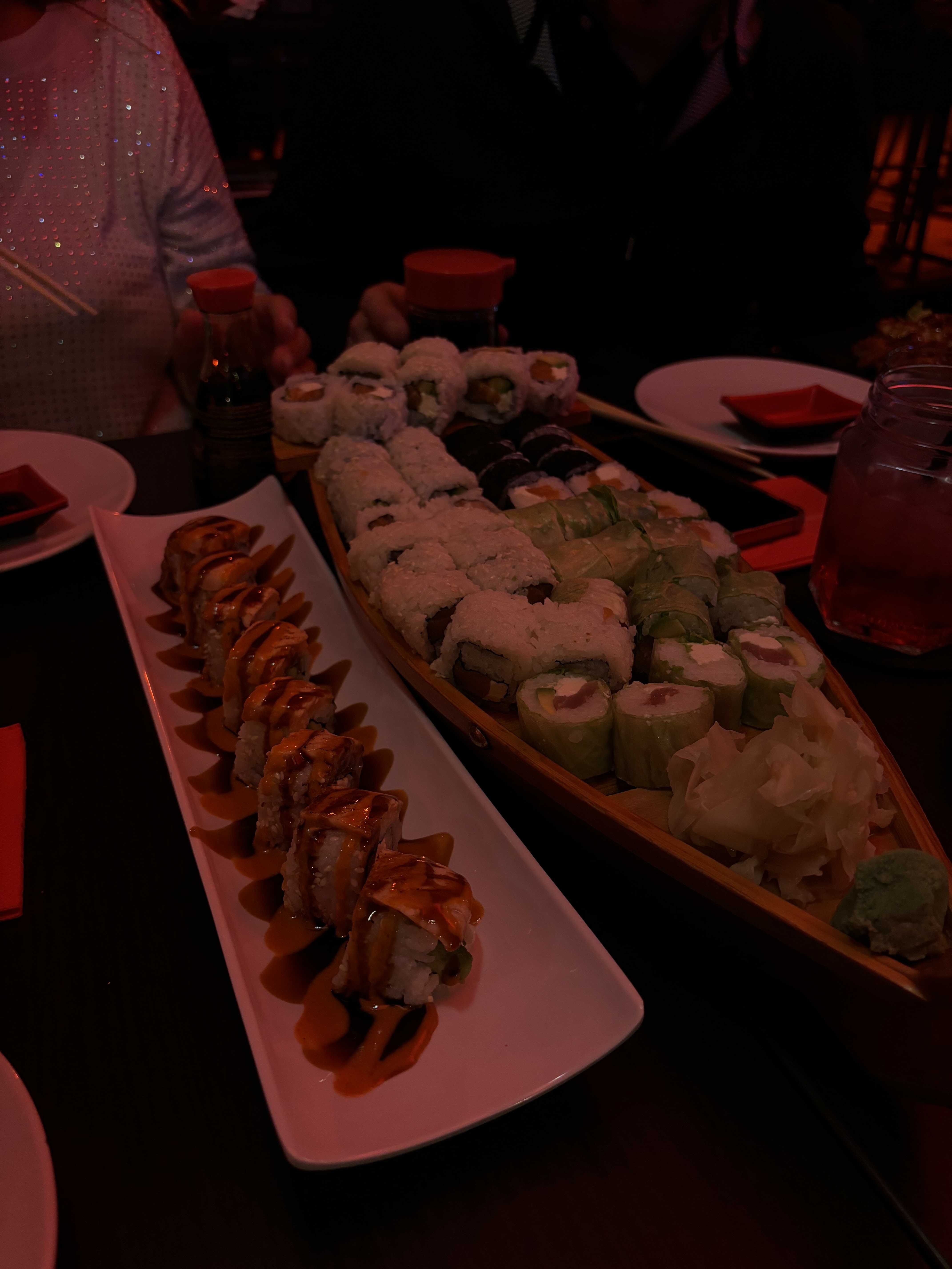 Excellents sushis, Service très agréable. On n´a juste pas trop aimé la lumière très rouge à l´extérieur.