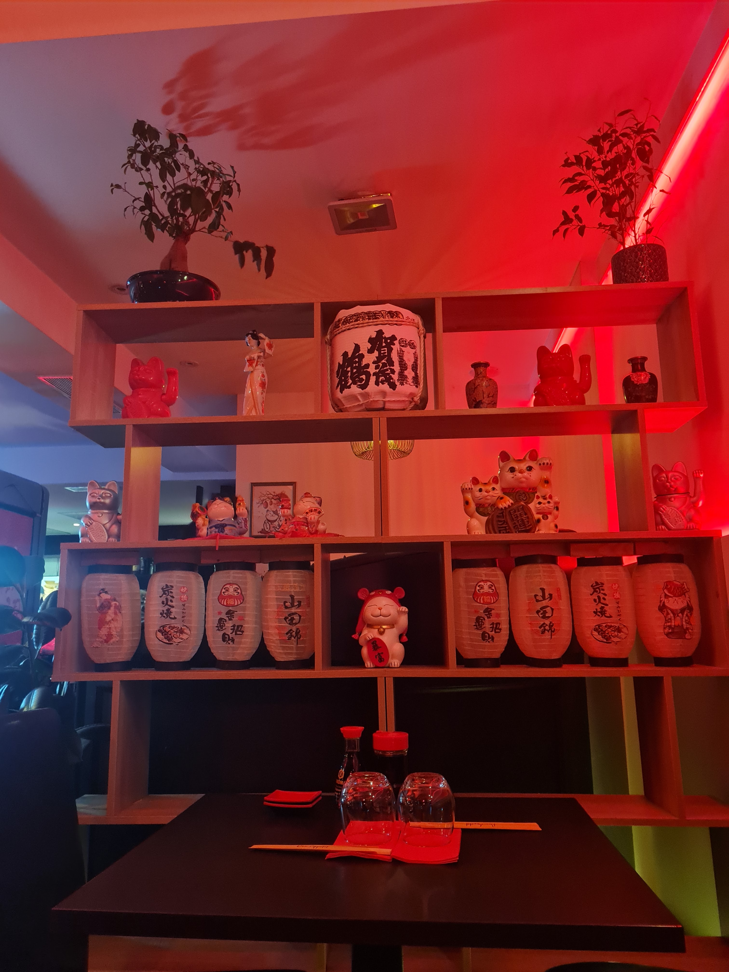 Restaurant familial et bien décoré. L'ambiance est chaleureuse et la décoration est simple et efficace avec une lumière rouge très intimiste. Le menu est varié, les prix sont un peu élevés mais les plats sont frais. Pensez a réserver car la salle n'est pas grande et les amateurs de sushi et sashimi sont nombreux. On y va très régulièrement car les propriétaires sont très sympas et souriants... L'accueil est au top. Je recommande a 200%