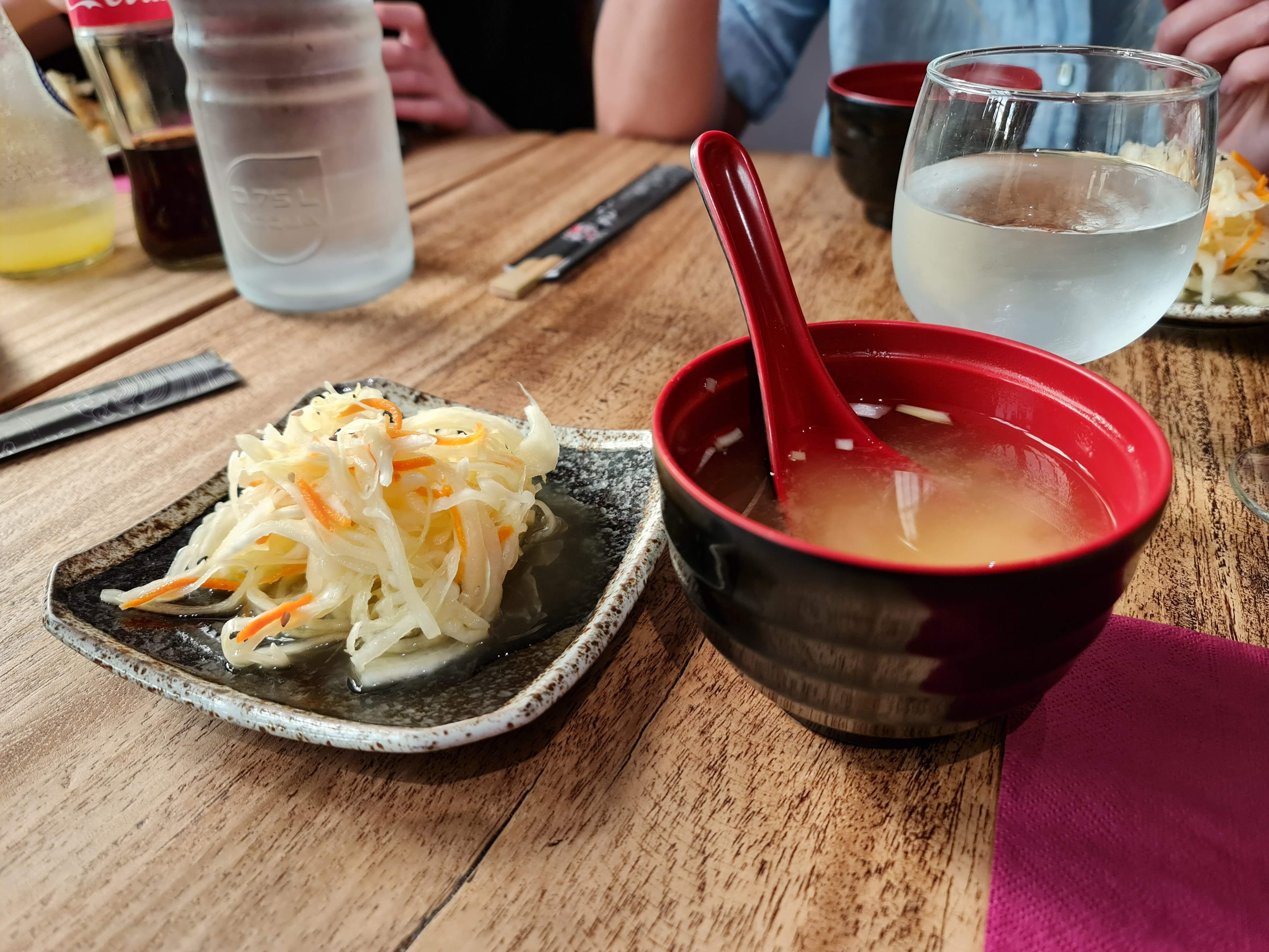 Super japonais. Les prix sont bien moins élevés lorsqu'on prend un menu. Meme si ce n'est pas très bien indiqué, celui-ci inclus une soupe miso, un bol de riz, et une salade de choux. On choisit ensuite ce que l'on ajoute. Les gyozas sont très bons. L'établissement et le service sont agréables.
