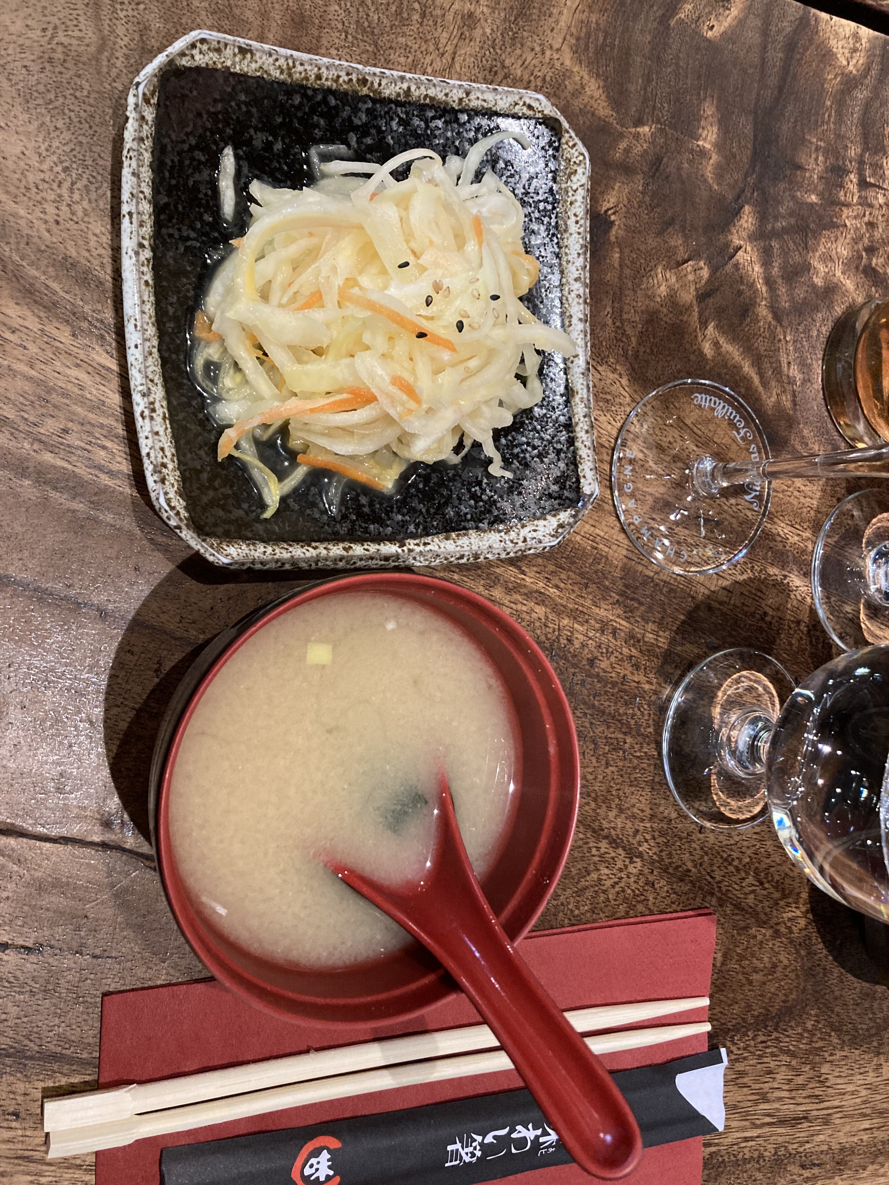 Resto Osaka a Palaiseau. Moi qui ne raffole pas de leur bouillon et salade en entrée, là je suis surpris (salade pas Trop Sucrée). Les gyosa frits, sashimi parfaits. Les yakitoris sentent bon des grillades. Au total, bon petit japonais de banlieue dans un cadre chaleureux avec un service attentif.