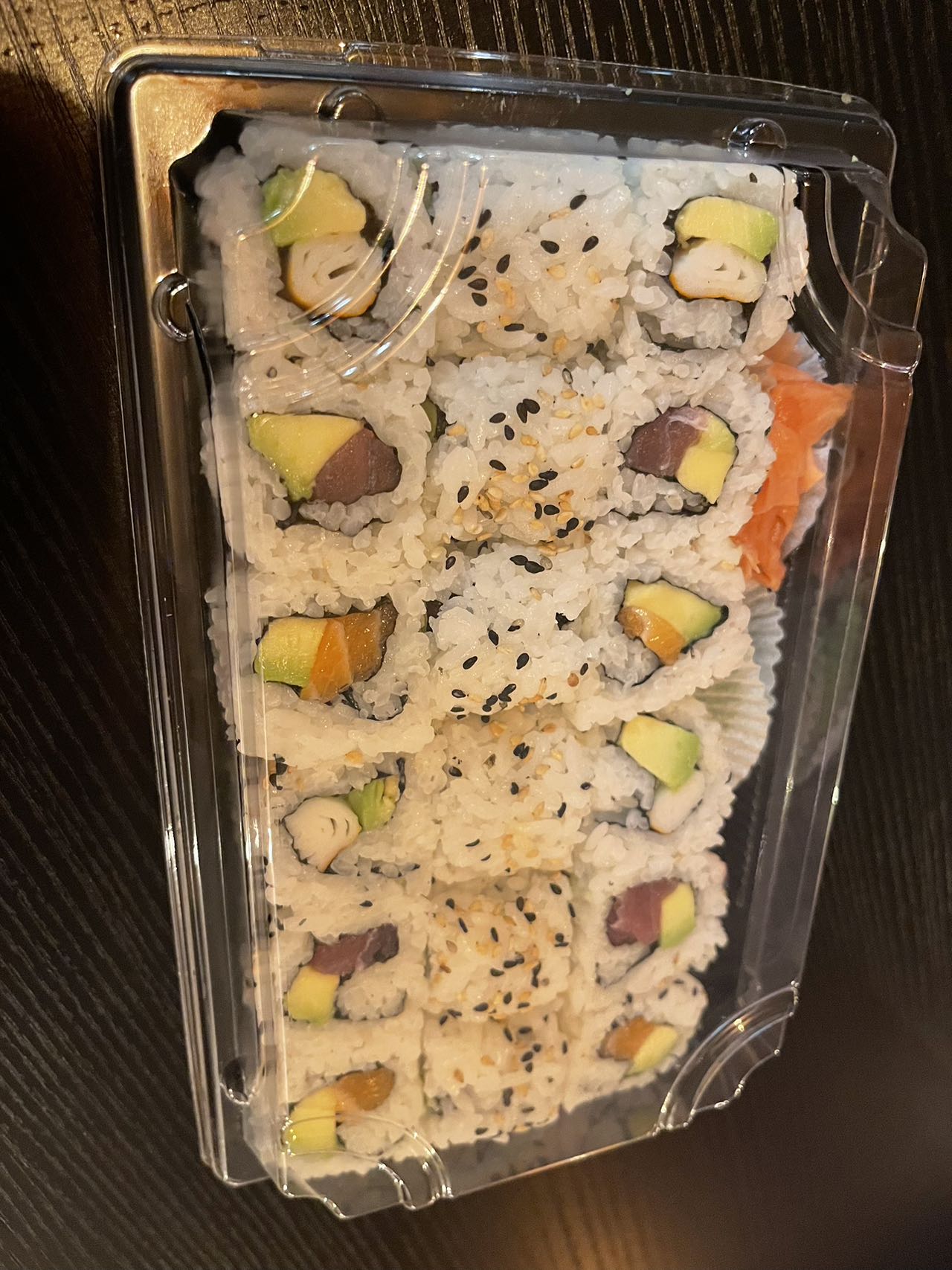 Rapidité de livraison avec Uber Eats, prix corrects. Bons california makis, le riz était fraichement cuit, et poisson frais!
