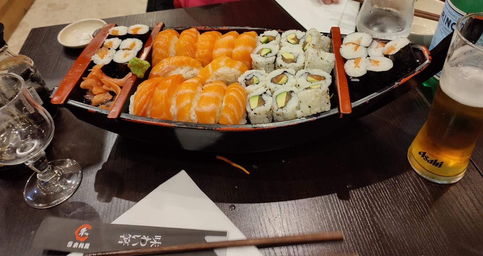 C'était un bon dîner avec un coupon de réduction. Une bière japonaise de 50 cl a été commandée séparément, ce qui était également agréable. Le repas était accompagné de soupe, de salade de germes et du bateau avec beaucoup de sushis. Bon service, bonne ambiance en terrasse. Se remplit rapidement.