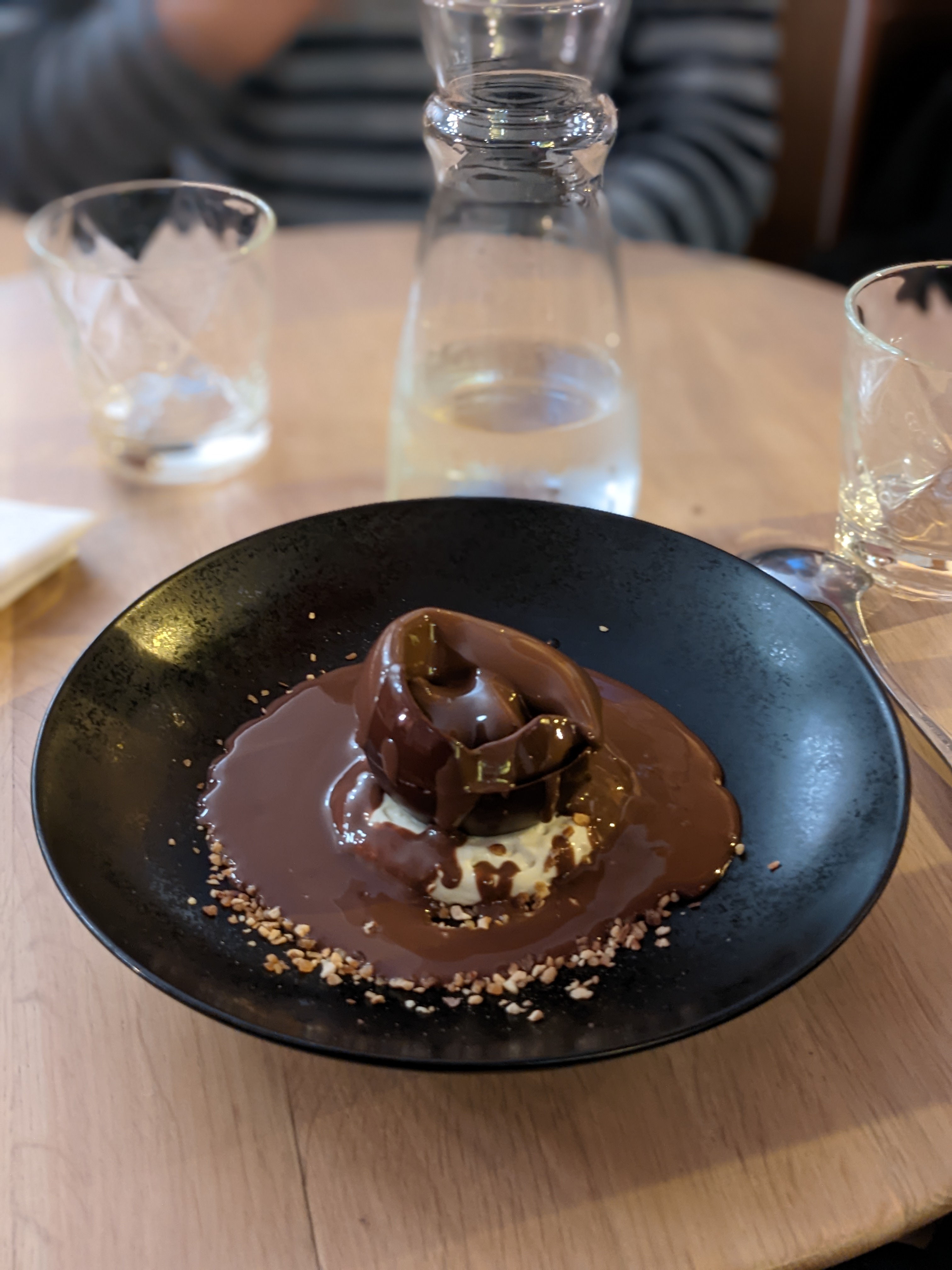 Très bon service, de belles assiettes et un cadre agréable et bien designer. Je commente rarement depuis le restaurant mais c’est un 10/10 vu le rapport qualité prix ✔️