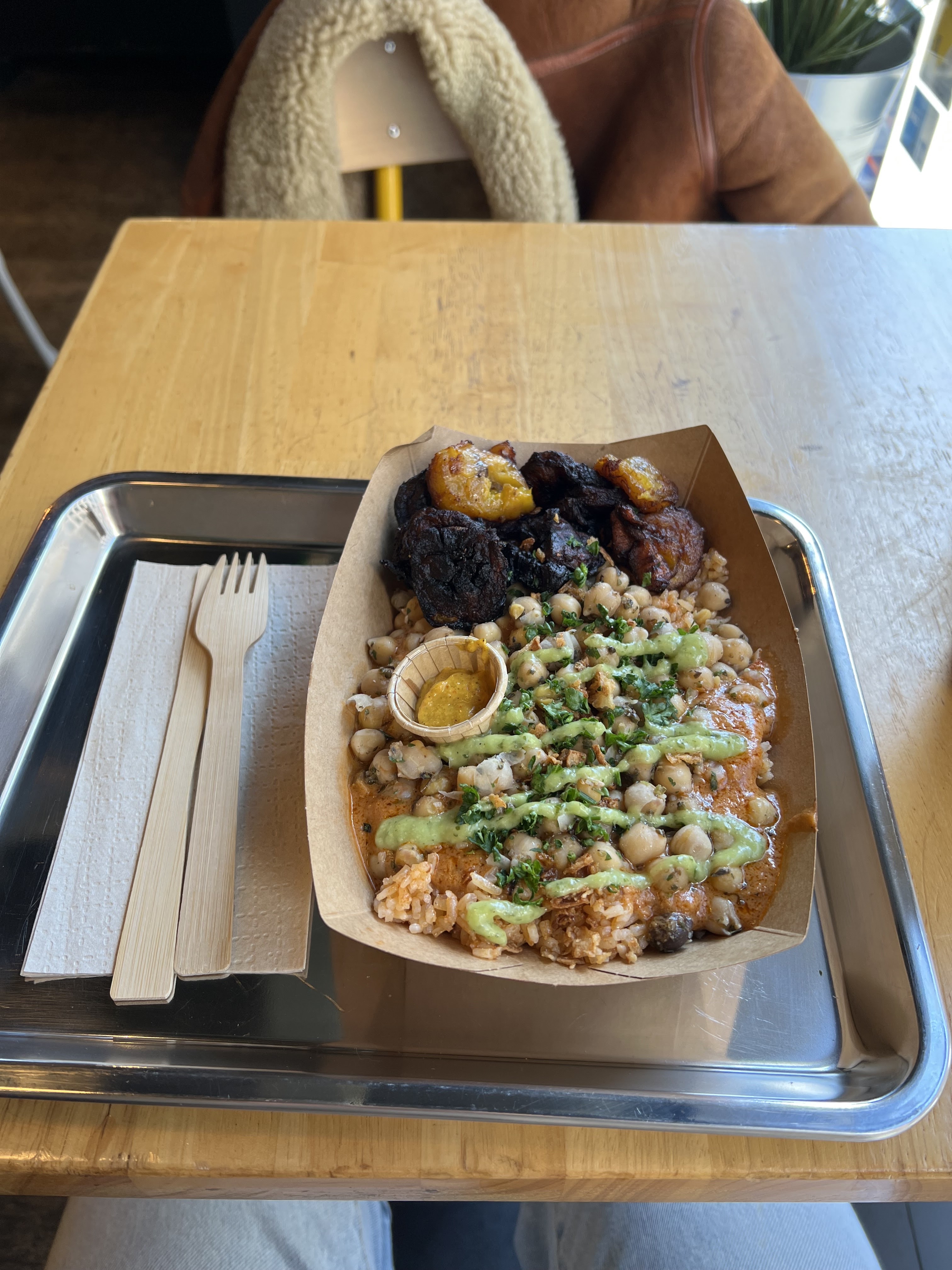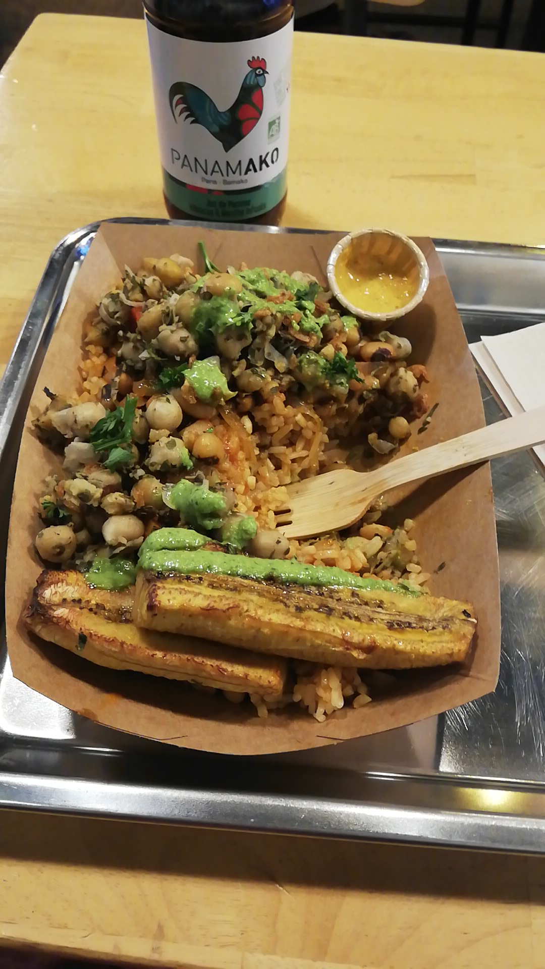 Conjuguer cuisine africaine et restauration rapide est un super concept ! Simple : Vous choisissez une taille de barquette (M, L ou XL, la L est déjà pas mal), une base (riz blanc, brun, jollof, ou du attieke, puis une sauce (j'aipris mafé c'est redoutable !), une viande (existant en version vegan), et un accompagnement ainsi qu'une petite sauce ail et persil... C'est juste parfait ! Be careful sur le piment (en option), il t'emmène sur Mars directement sans escale. Une adresse qui gagne à être connue !