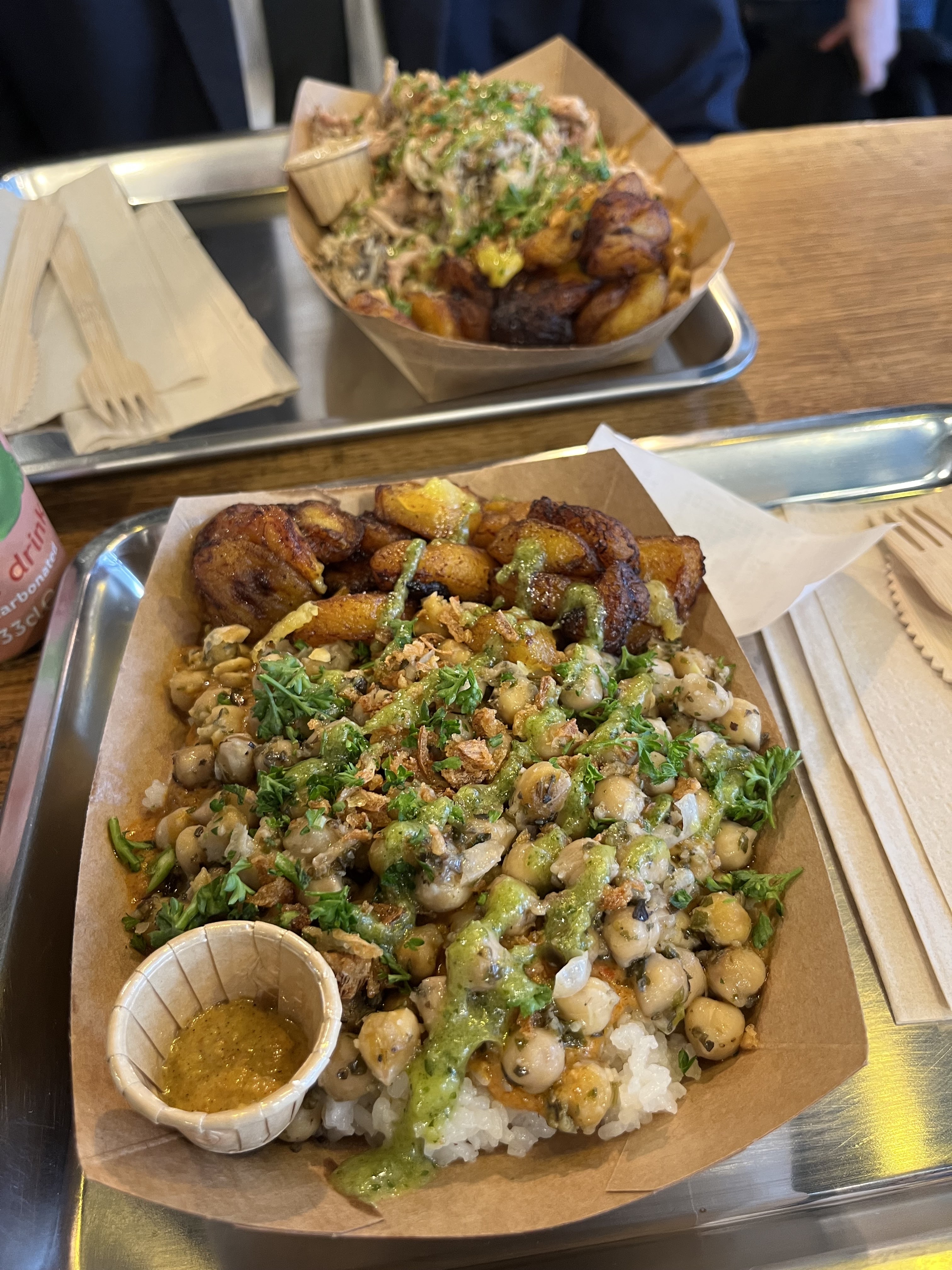Super bon. Je mange rarement de la nourriture africaine et la c'était très bon. J'ai pris le vegan et la personne qui m'a resservir de la sauce car elle m'a dit qu'avec les pois chiche c'était sec et je ne regrette pas. C'était parfait ! Et le piment, wouahhh. J'ai l'habitude d'en prendre des différents et celui là pique mais surtout il a du goût, je recommande mais si vous êtes pas habitué, trempé un peu la fourchette au début pour être sûr de supporter 😂 En terme de quantité on n'est pas dessus. Et si vous avez vraiment faim y a la taille L et XL pour gourmand 😉