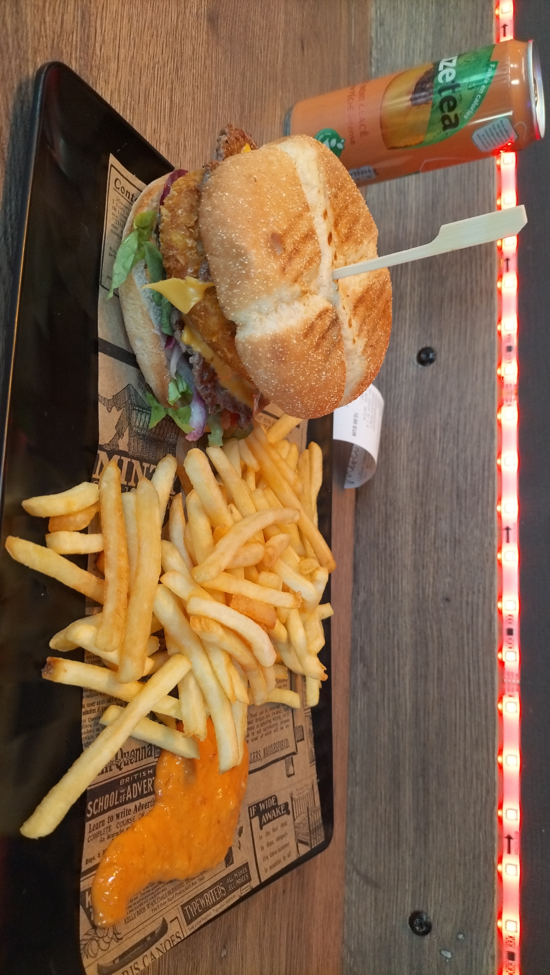 Franchement au top le serveur Mehmet à fond sur les commandes et sur la mise en place des clients ! J'ai pris un tacos 2 viandes le goût était juste top franchement pour un tacos à 1 heures du matin je m'attendais à un tacos normal. Mais la c'est vraiment un des meilleurs tacos que j'ai mangé. J'ai pris un cookie aussi et bon rien à dire. A essayer si vous passez par la vous ne serez pas dessus.