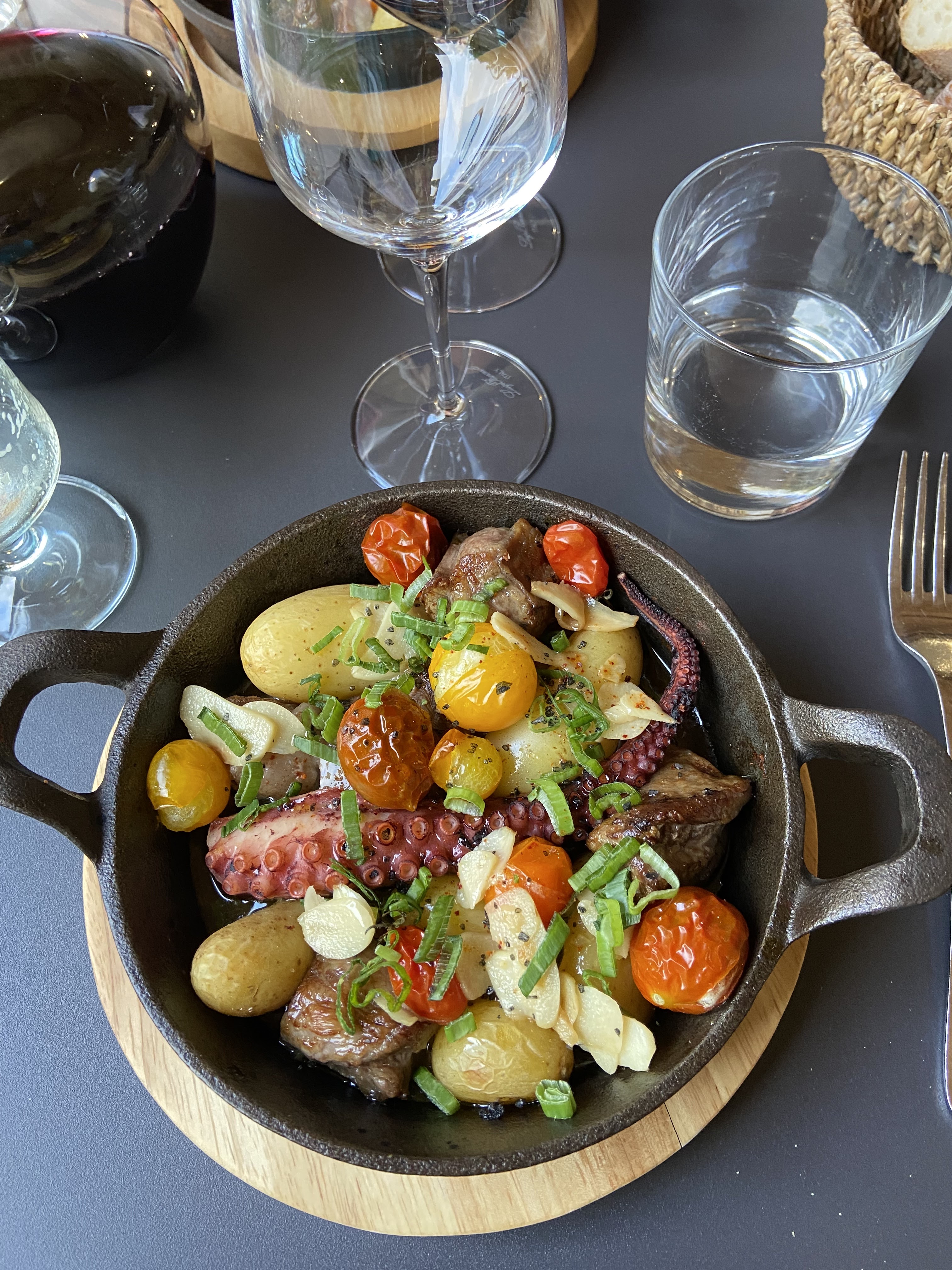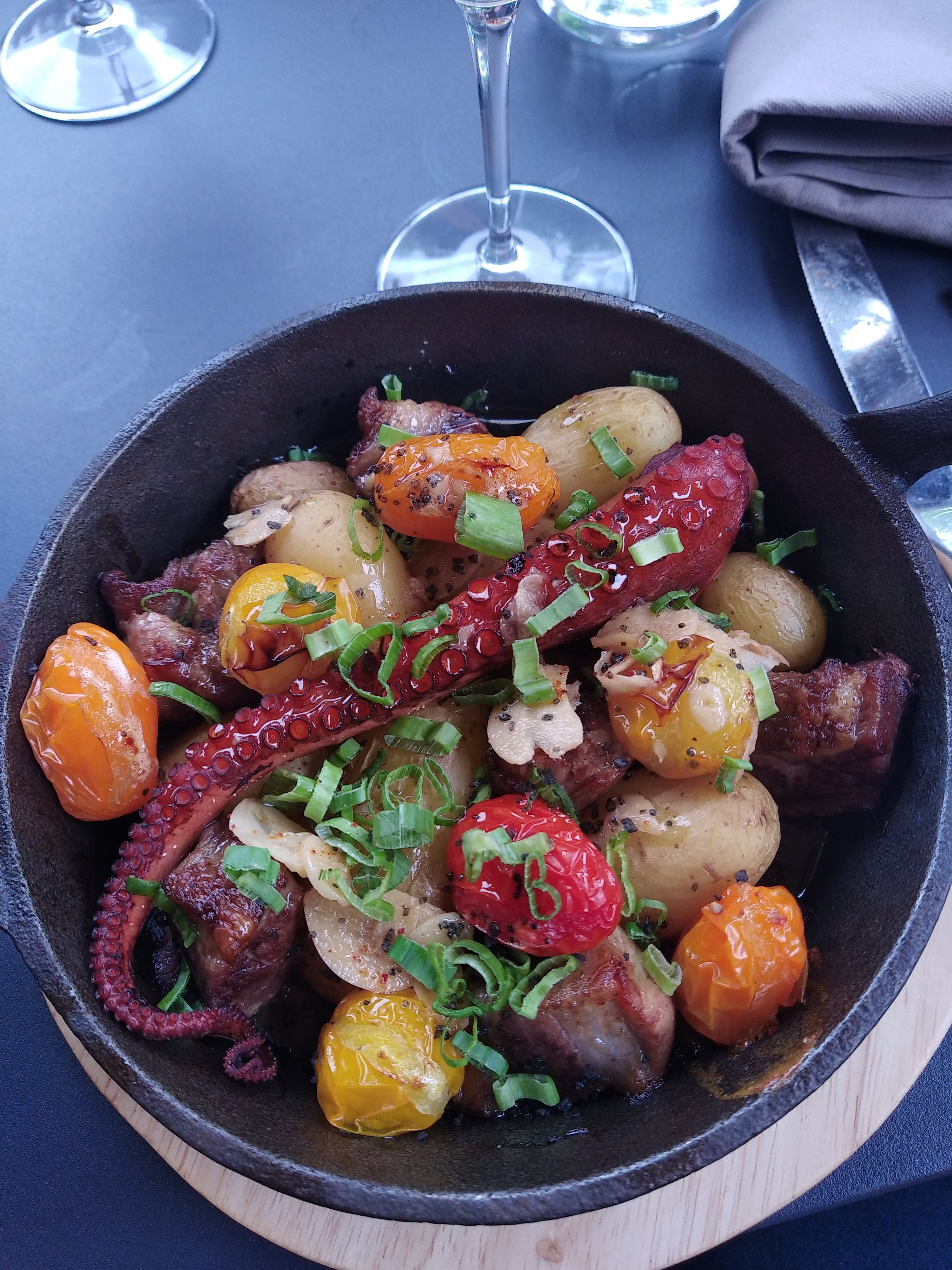 Une découverte plus qu 'agréable. De l'entrée au dessert un pur plaisir. Coup de coeur pour l'entrée a base de pied de cochon et le plat poulpe porc noir. Je recommande le lieu a tous les amoureux du goût et des produits frais.