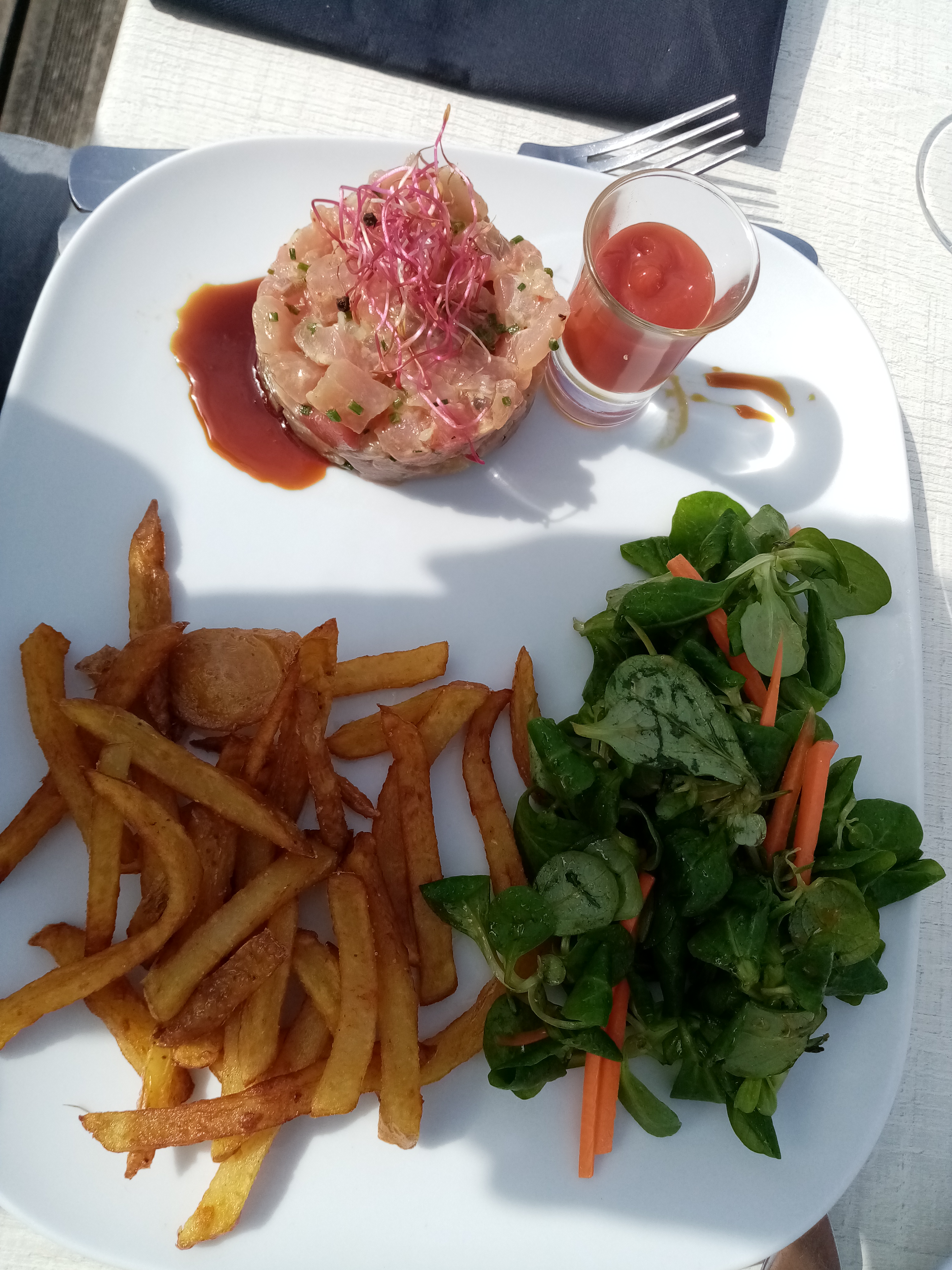 très bon restau avec produits frais et bien maitrisés, service sympathique et efficace, terrasse avec vue superbe et prix fairs = bon moment passé. A recommander
