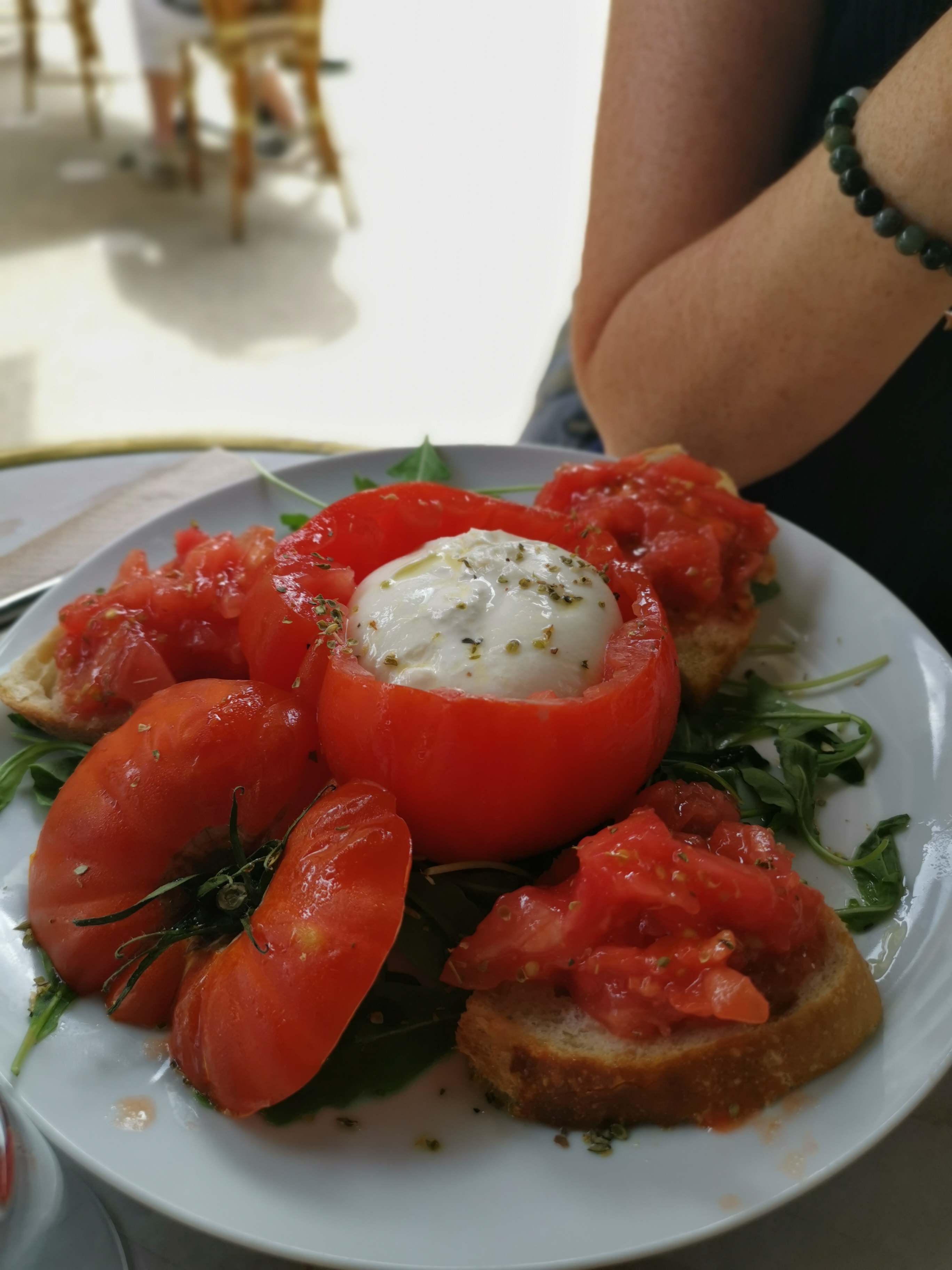 Nous avons très bien mangé bruschetta en entrée, ensuite les rigatoni crème de ricotta et des orechiette alla spezzatino ! Je recommande vivement cet osteria ! La déco est chouette à l'intérieur et la terrasse est très sympa sous le soleil.