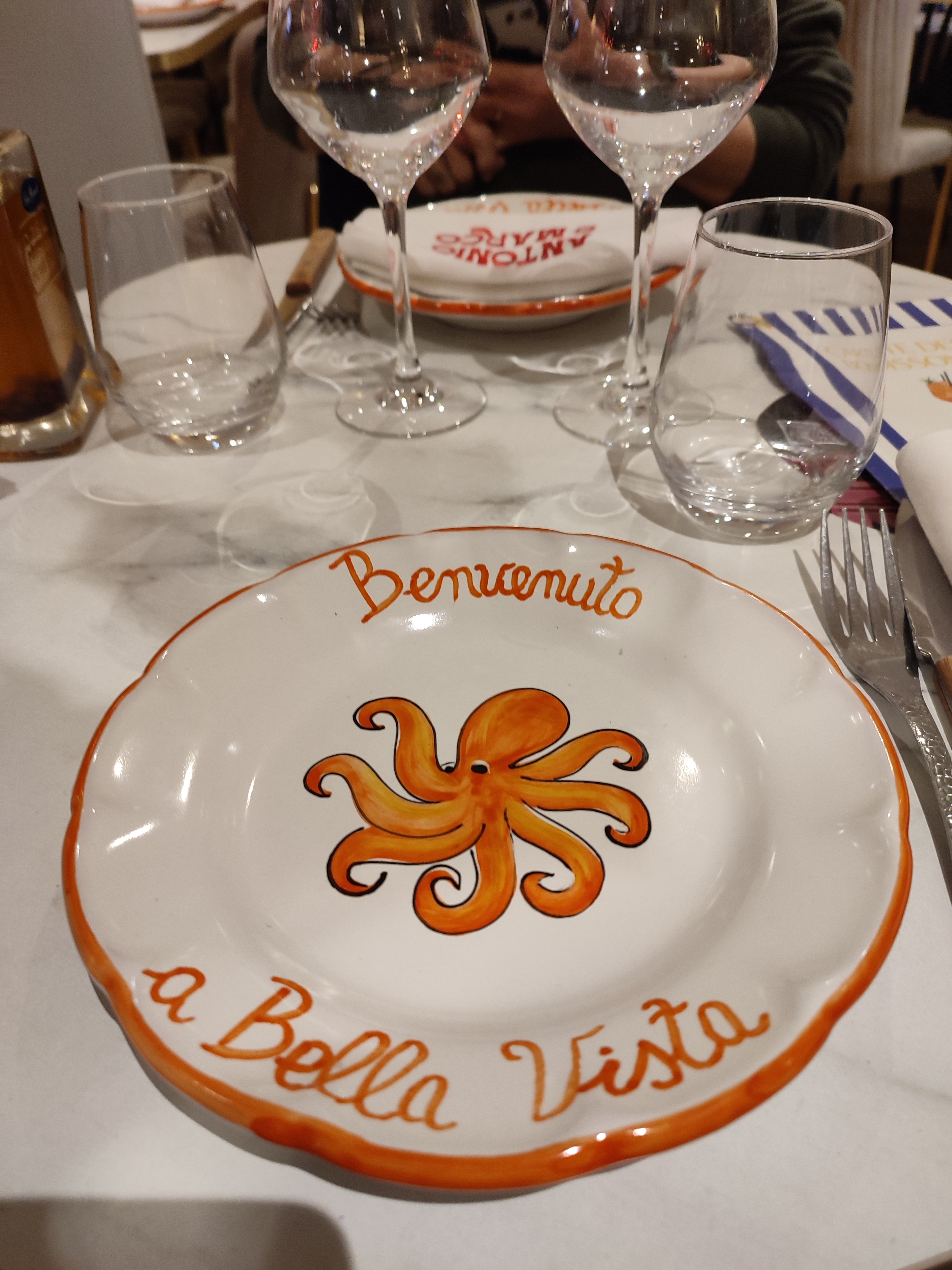 Un endroit où l'on se sent bien tout de suite , la cuisine est délicieuse ,authentique et copieuse. Les serviettes en tissu, la vaisselle peinte à la main, le décor bord de mer, c'est un voyage direct en Italie. Service impeccable,merci à Iliana ! A recommander.