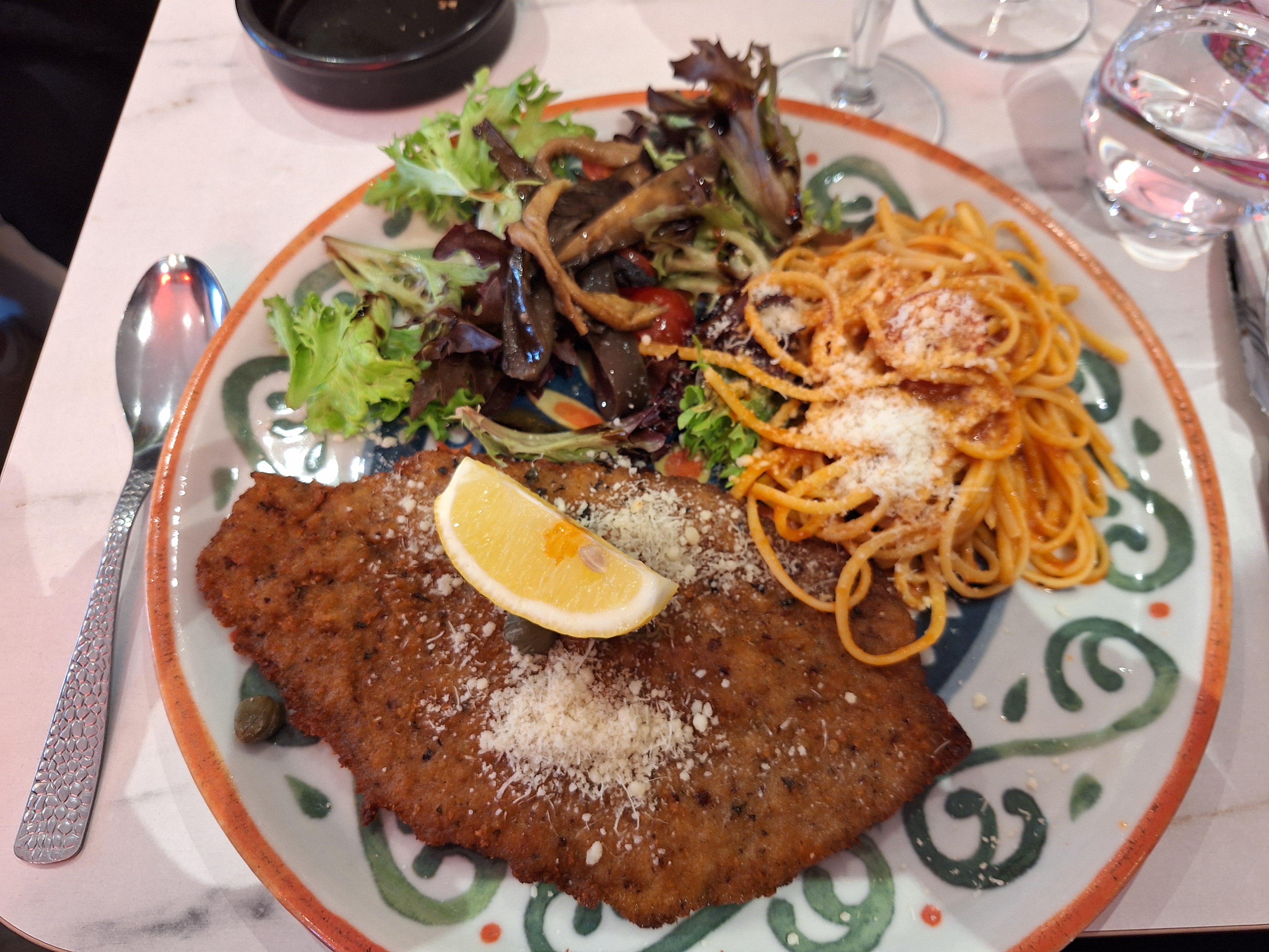 Restaurant italien très sympa, ambiance conviviale, plats copieux (l'escalope de veau à la Milanaise est juste énorme ^^), produits frais ( risotto alla pescatore, un délice de coquilles St Jacques), desserts au top....Nous étions 8 ( 5 adultes et 3 enfants). Et tout le monde a hâte d'y retourner !!