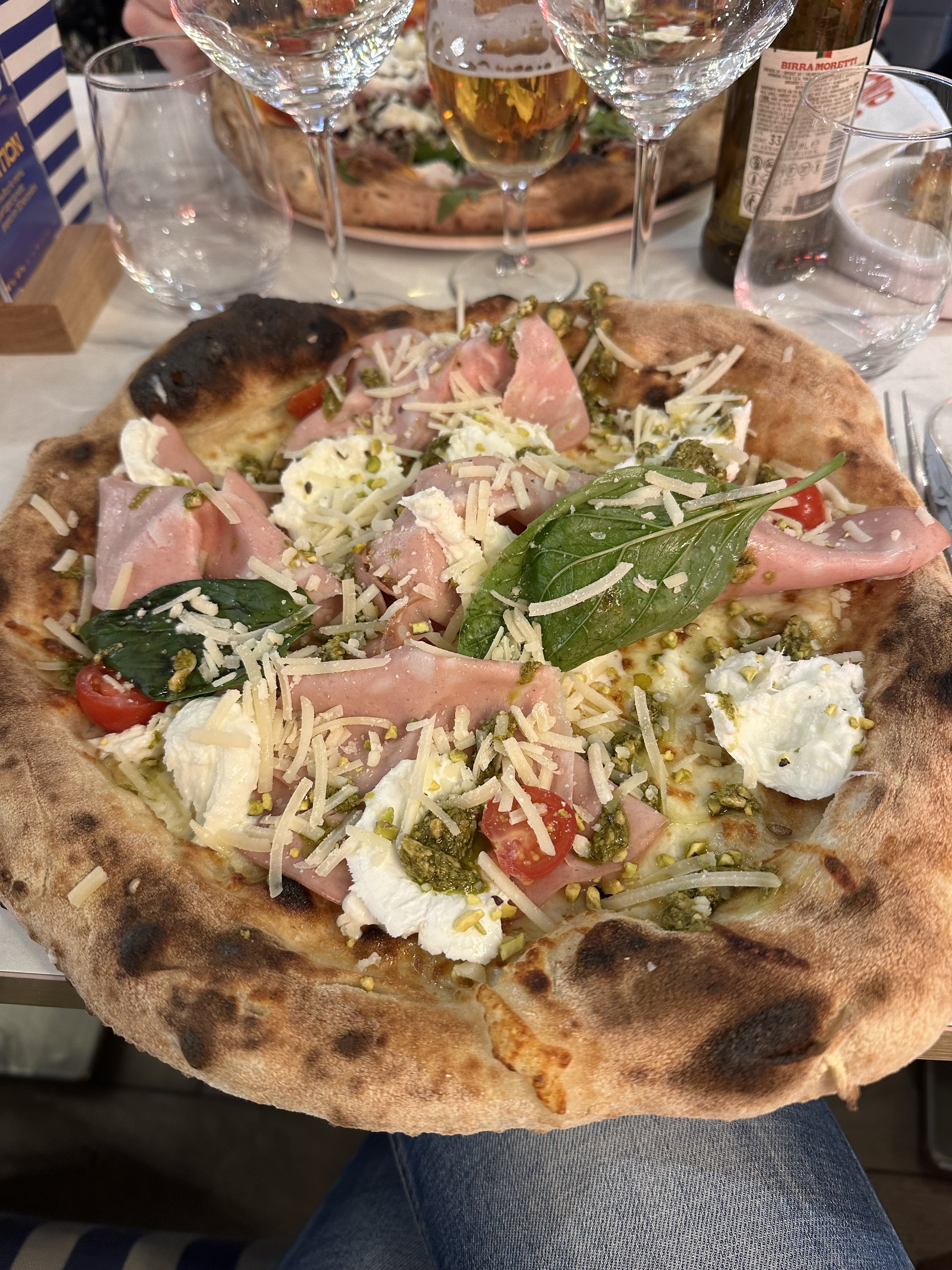 Nous avons été installés sur la jolie terrasse; le temps d'apprécier la vue, la décoration colorée et l'amabilité des serveurs et hop on est passé aux choses sérieuses, la dégustation. Les plats étaient fort généreux, les pizzas bien garnies et savoureuses, en salé et en sucré (à la crème de pistache notamment !) On a eu du mal à finir mais pour les bonnes raisons ! Une bonne adresse !
