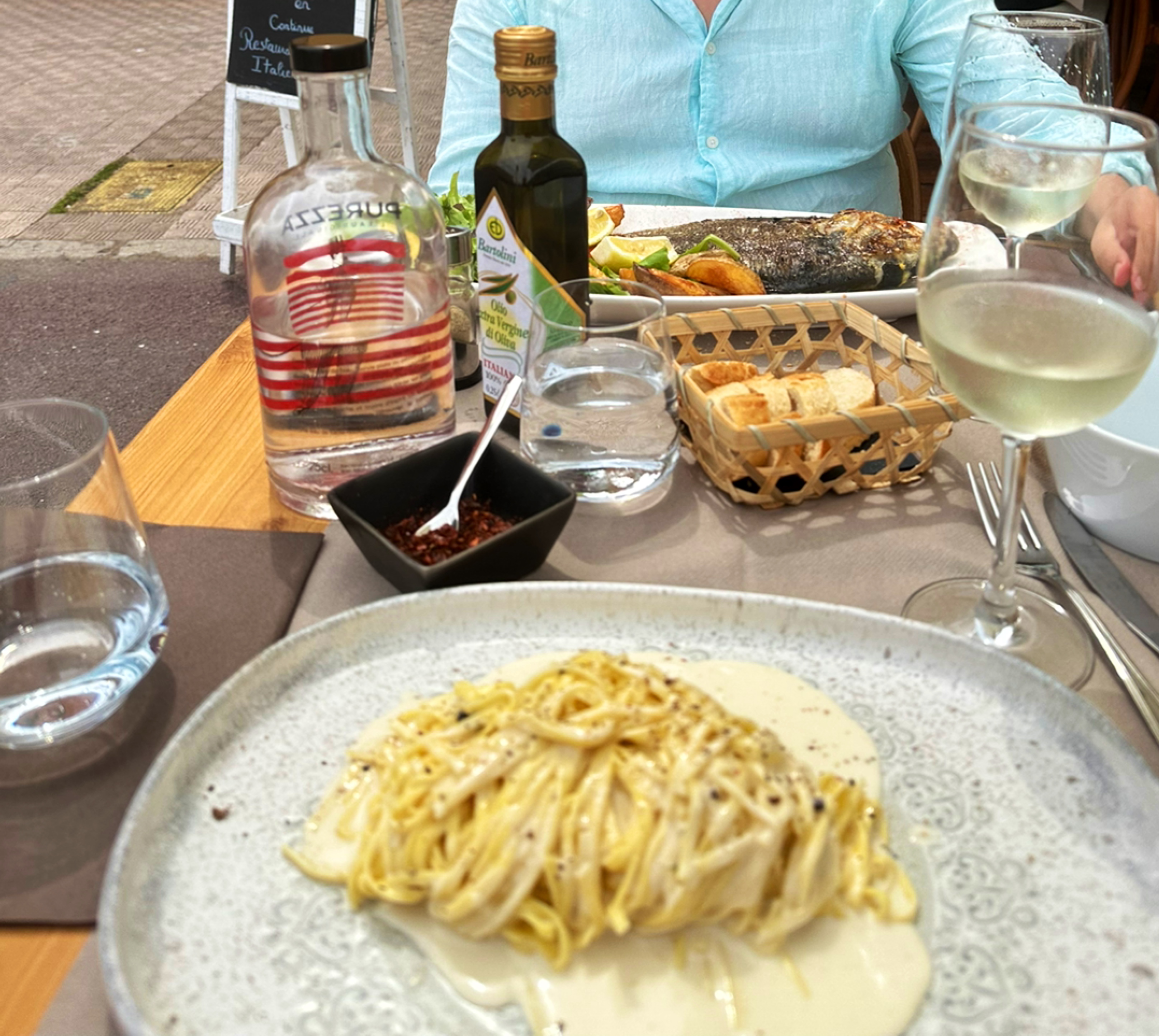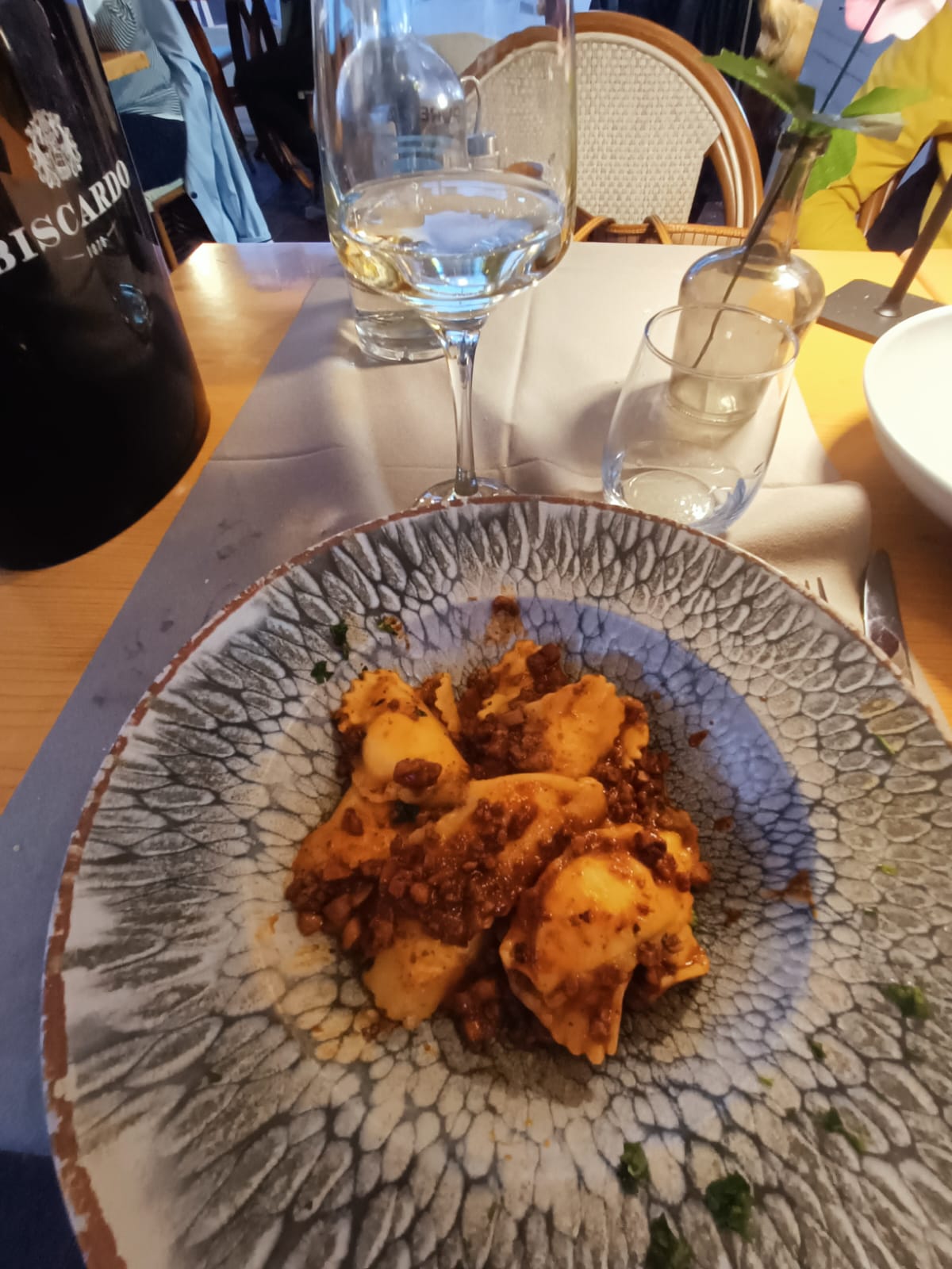 Du prosecco proposé à l'apéritif jusqu'au dessert final, tout était parfait, je recommande la calamarata vraiment sublime du chef Carlo. Une vraie découverte dans Liar, nous reviendrons