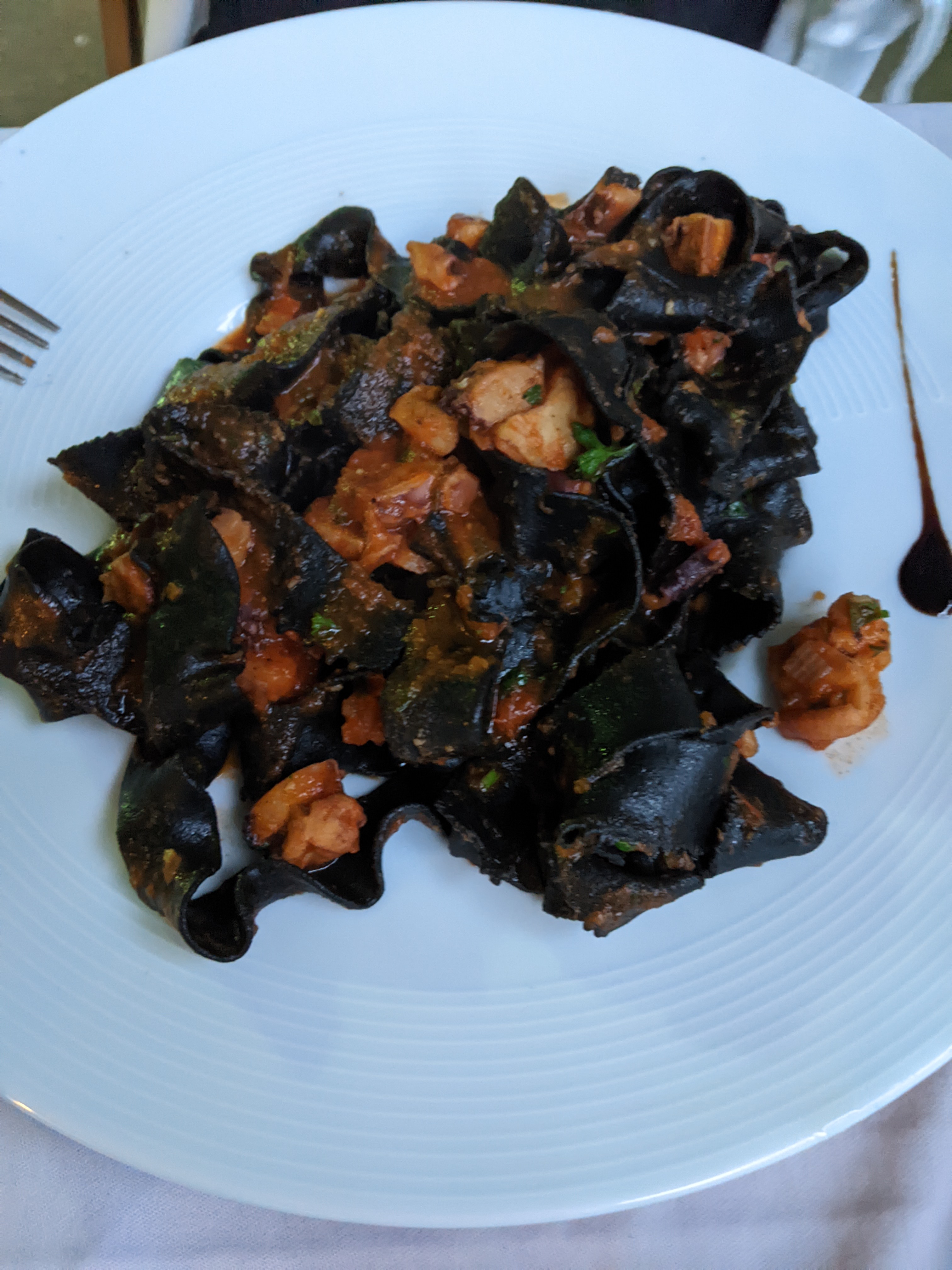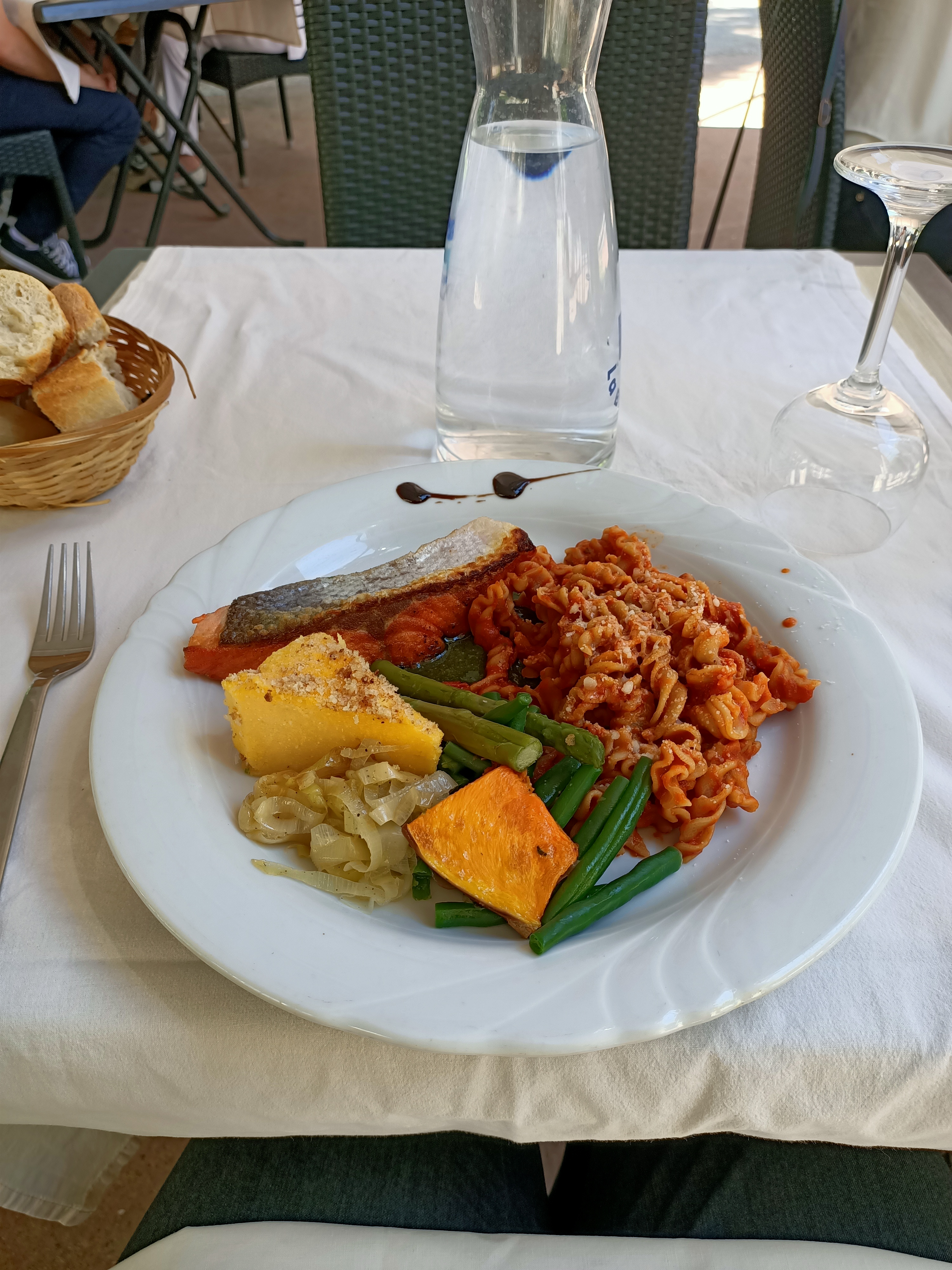 Des pâtes faites maison (sauf les linguine), enfin du goût, comparé au Vesontio. Une pause bien méritée au calme à cette terrasse ombragée et excentrée, loin de la foule. On y vient surtout pour les pâtes. Je n'ai pas testé les poissons. Je reviendrai...