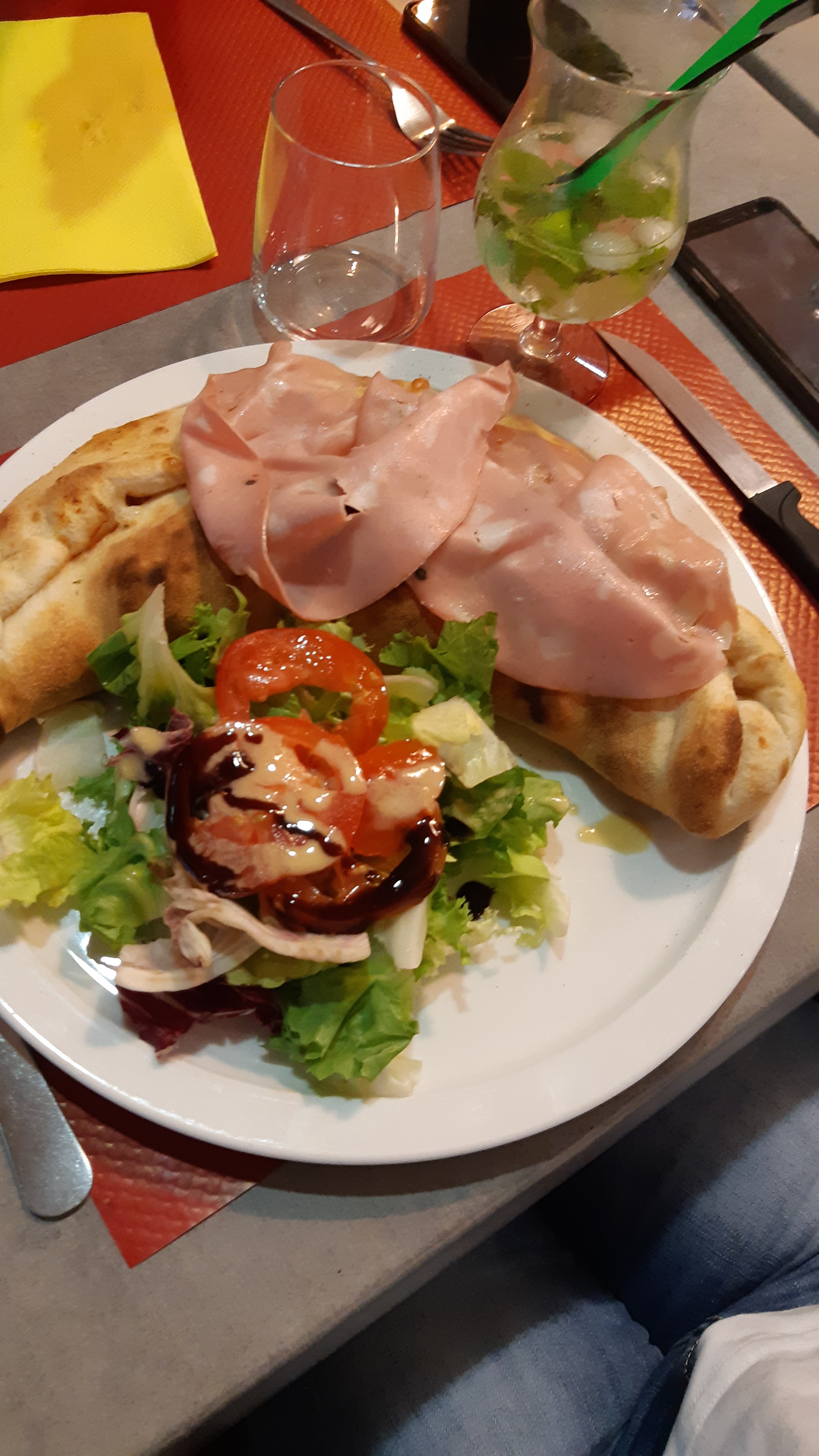 De 1er abord, on se demande où on est. Mais le restaurant est très sympa. Une grande terrasse et un espace intérieur conséquent. Les serveurs sont adorables, et les pizzas excellentes ! Produit frais +++ J'ai beaucoup apprécié la glace maison ! Nous avons choisi ce restaurant par hasard et je ne suis pas déçue.