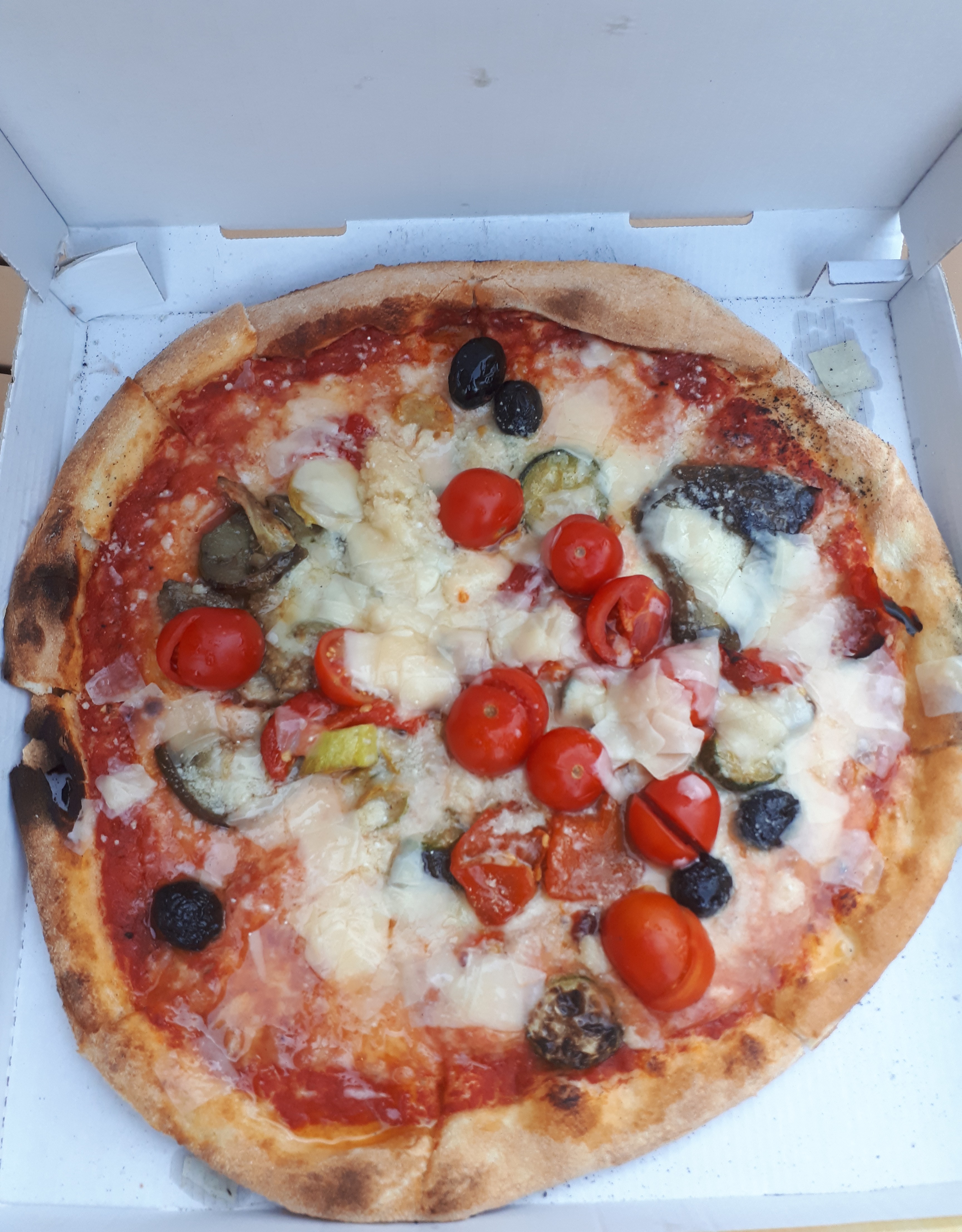 Enfin une bonne pizza étant d origine napolitaine je suis difficile on s est régalé et les parts super généreuse. On a enfin notre bonne pizza pas loin