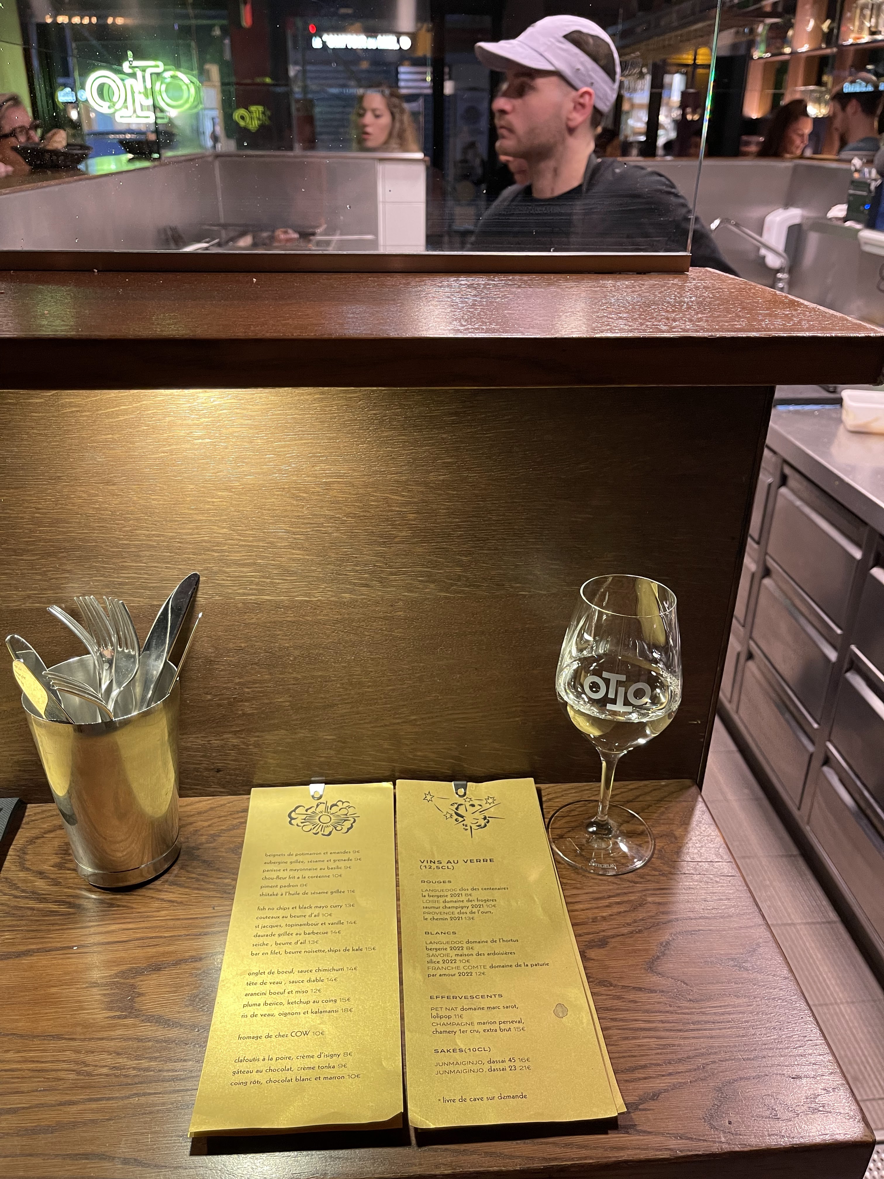 Une bonne expérience chez Otto. L’établissement étant petit, mieux vaut arriver tôt pour être certain d’avoir de la place. Concept original avec des tables installées en hauteur tout autour de la cuisine, qui permet donc de voir le personnel cuisiner et de vérifier que les produits sont de qualité (ce qui était le cas). La salle étant petite, il est fréquent d’être bousculé par les serveurs et les clients, mais je ne pense pas que ce lieu soit réputé pour le confort. Le service a été très rapide. Quant aux plats, le chou-fleur frit à la coréenne était excellent, les fish no chips décevants notamment en raison d’une mayonnaise noire originale au visuel mais sans goût et trop liquide. L’onglet de bœuf était trop cuit et la viande assez dure (dommage pour un restaurant au Michelin). Les desserts, et notamment le coing, étaient très bons et bien présentés, bien que le clafoutis soit un peu sec. Nous avons payé 76€ pour 1 entrée, 1 poisson, 2 viandes et 2 desserts au total, ce qui rend les prix un peu élevés pour la quantité servie et l’originalité des plats. Le tout reste très correct.
