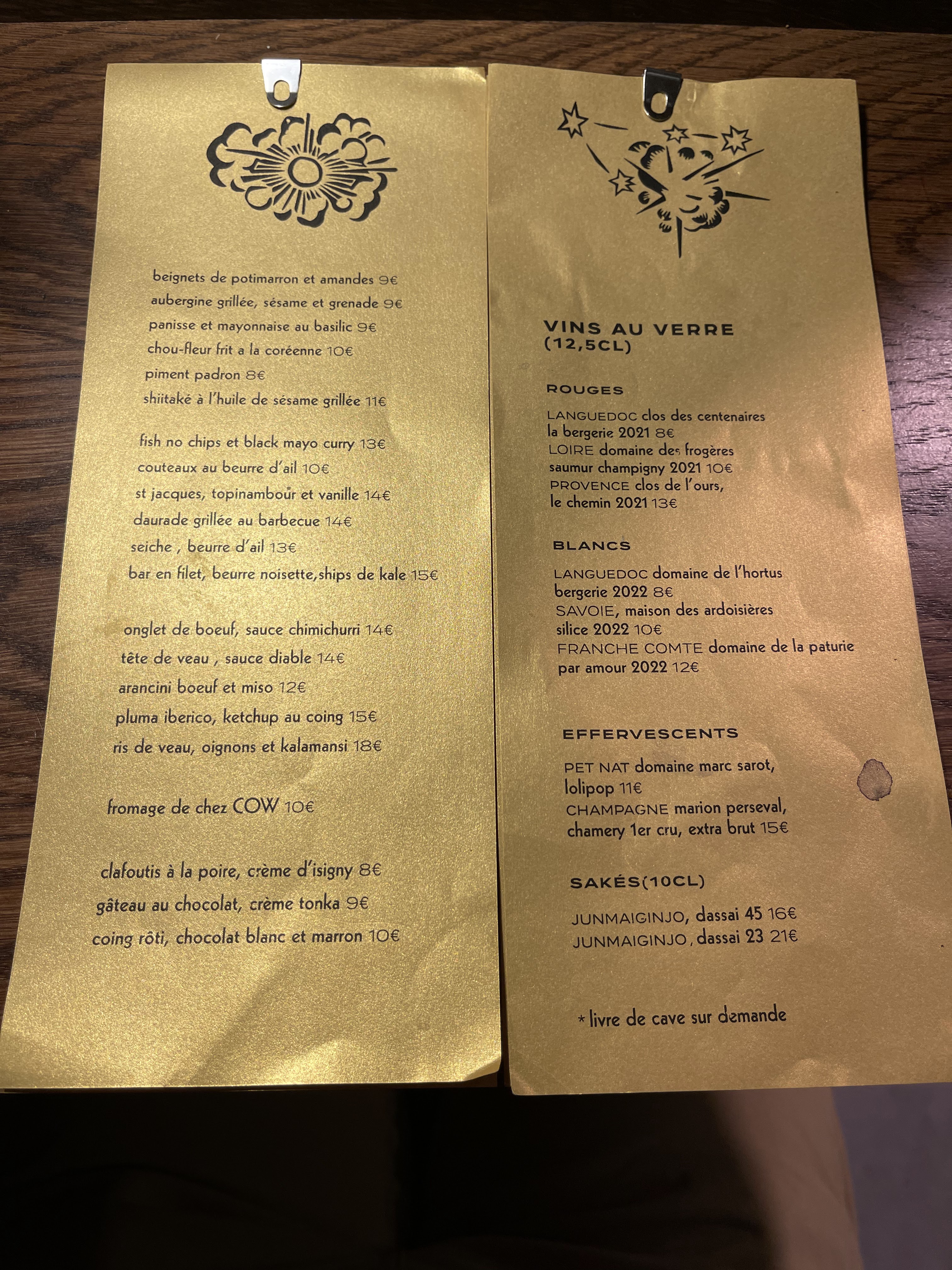 Chouette ambiance et petites assiettes de compétition (couteaux à la plancha miam !) Du saké et des vins bien choisis, dont quelques pépites natures.
