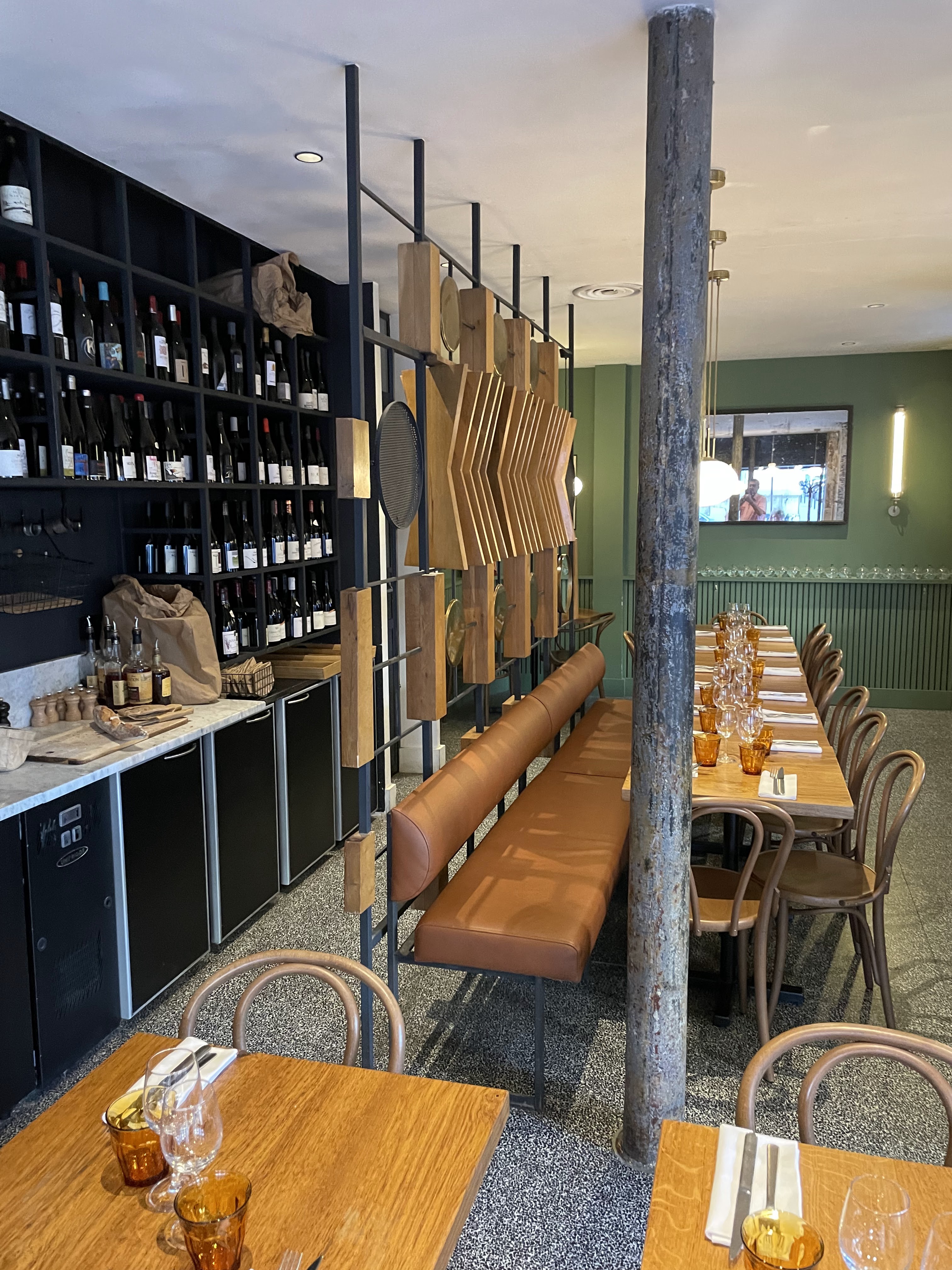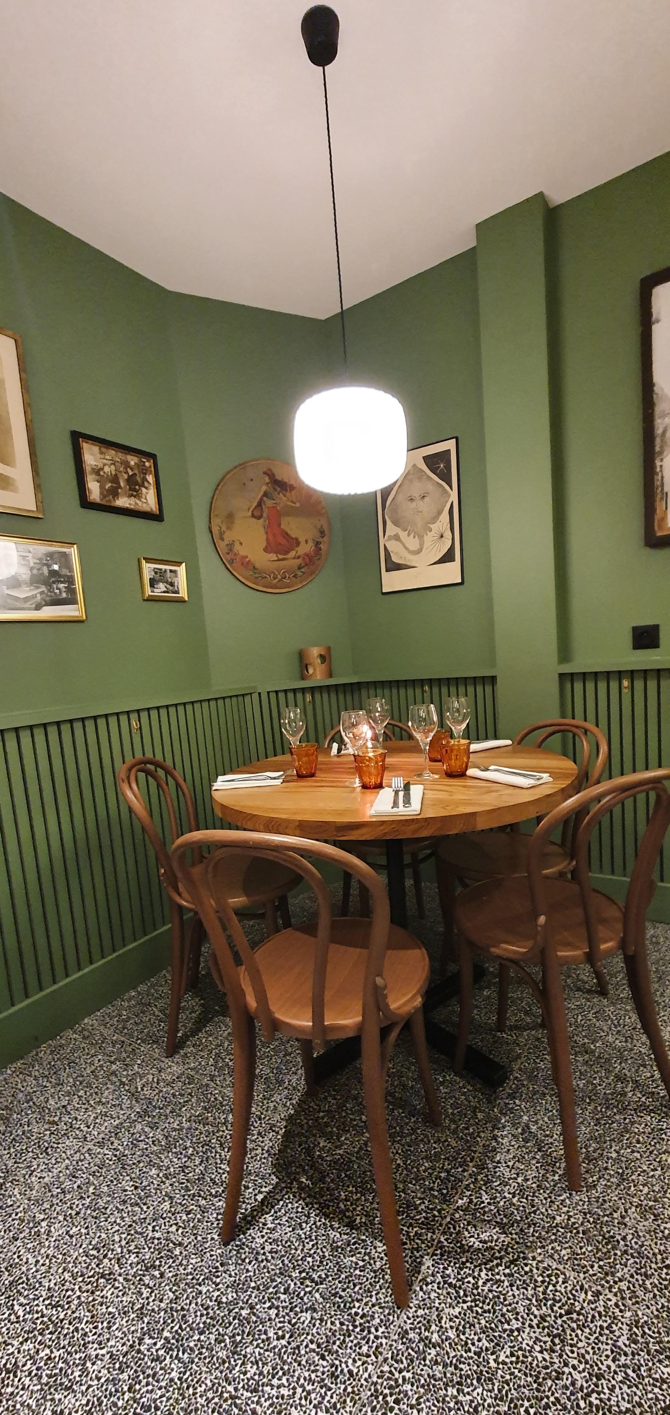 J’y ai dîner 2 fois. Bistrot, chaise en bois, pas de nappe. Ambiance chaleureuse de bistrot. Parisien. Tous les plats étaient excellents!! bien meilleurs que de nombreux gastros. Et le choix de vin est incroyable!